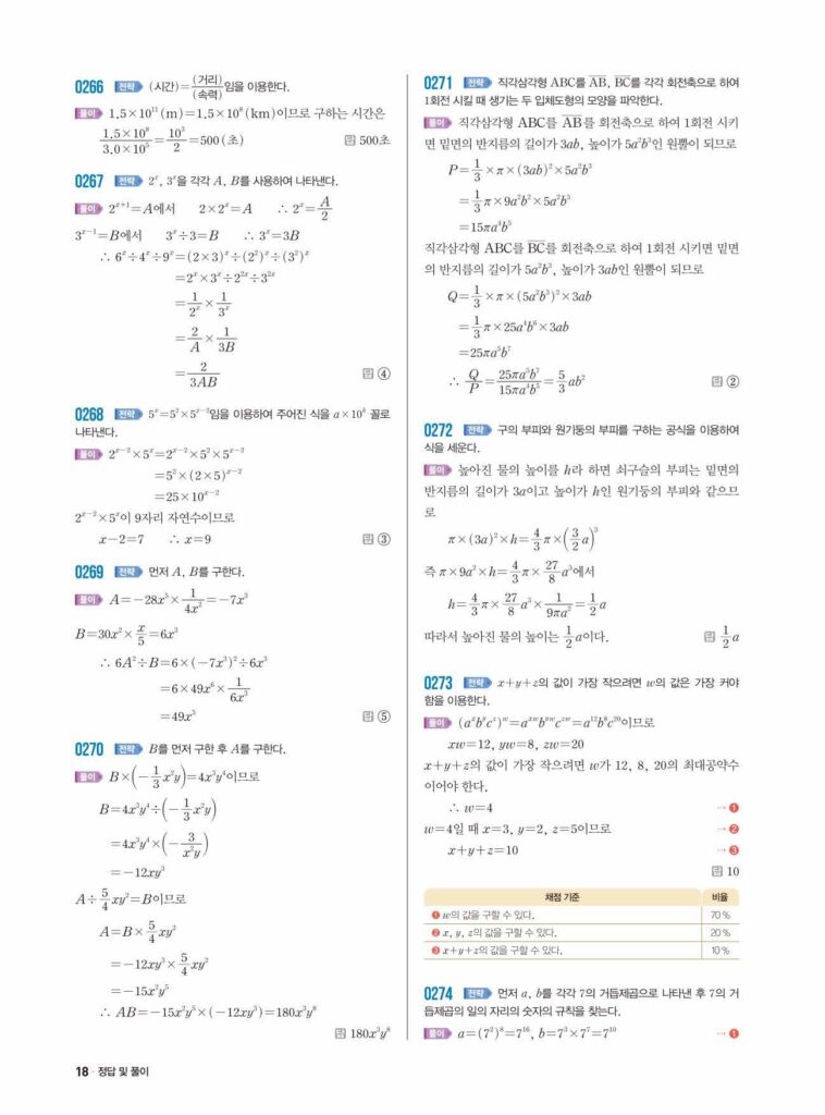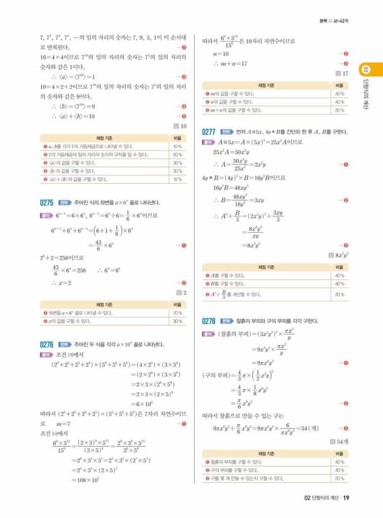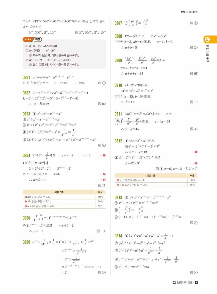 안녕하세요. 쎈 중2-1 02단원 단항식의 계산 정답 및 해설입니다.