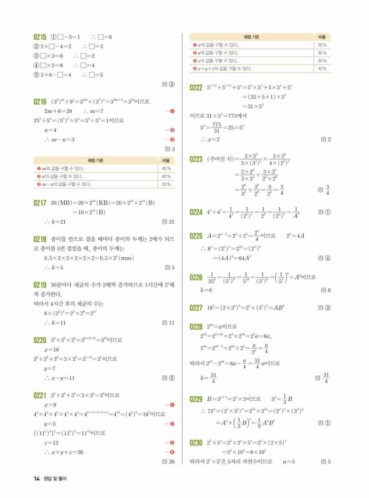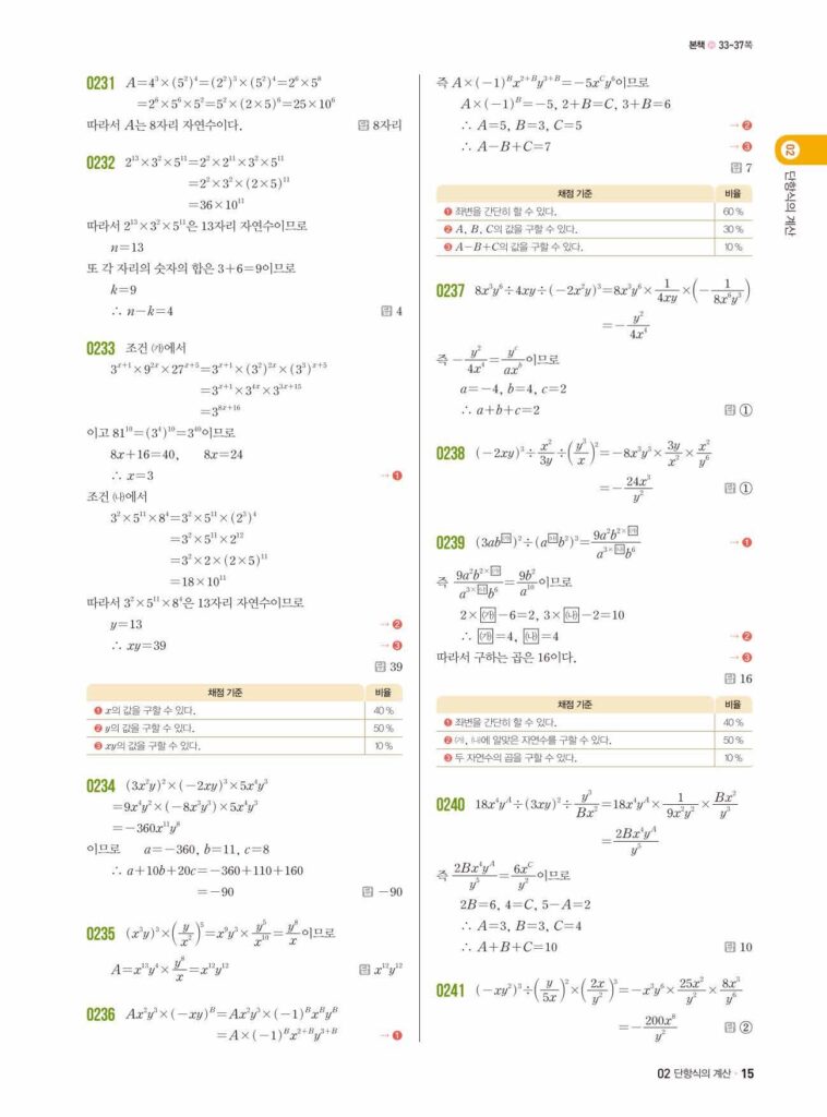 쎈 중2-1 02.단항식의 계산 답지