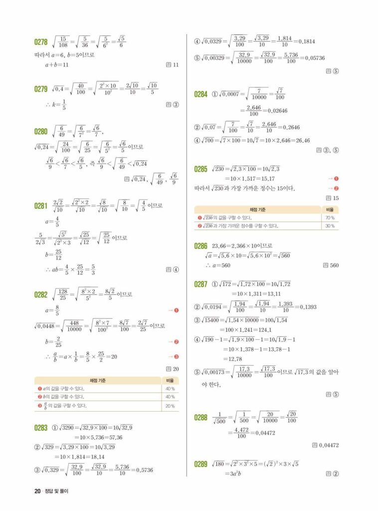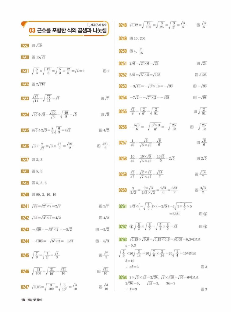 쎈중3-1 03 근호를 포함한 식의 곱셈과 나눗셈