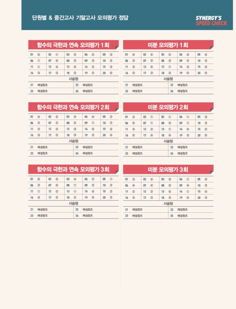 1. 마플시너지 수학2 빠른정답 (Speed Answer)