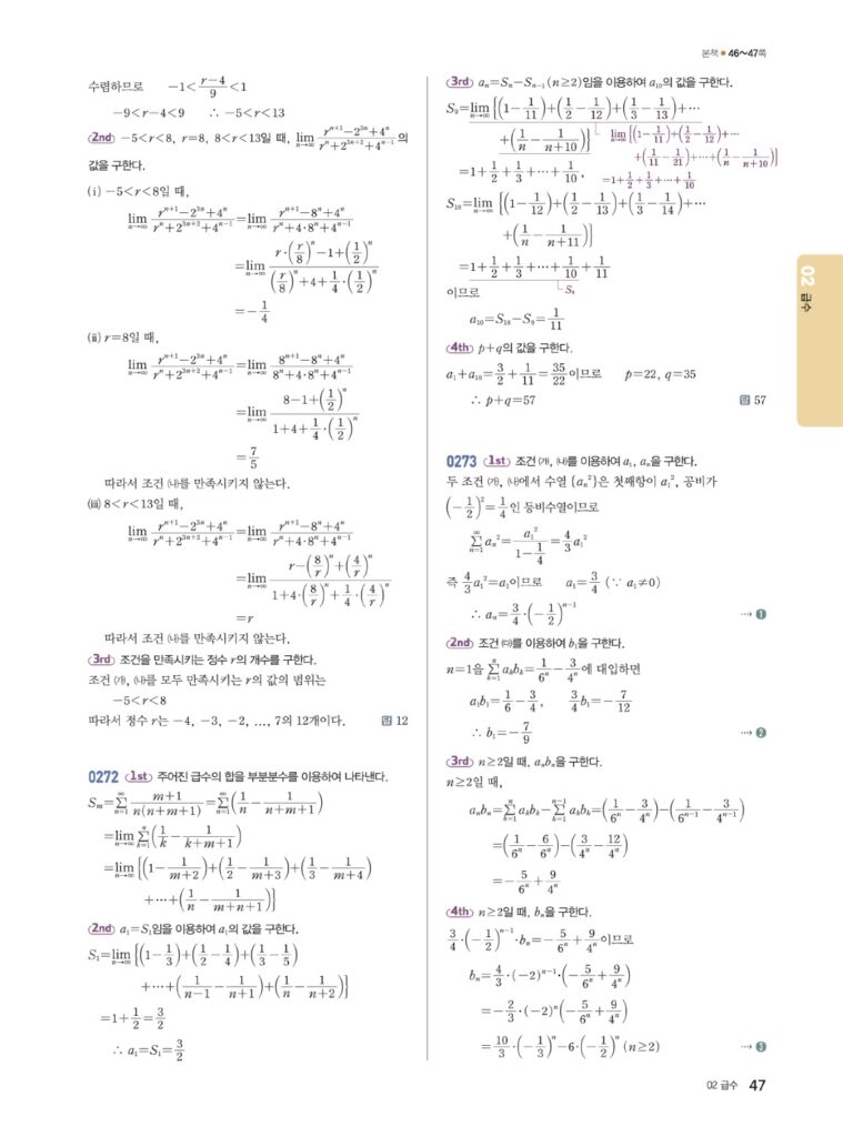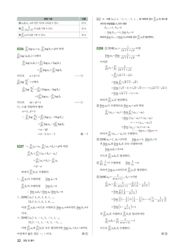 안녕하세요. **쎈 미적분2** **02단원 급수** 정답 및 해설입니다.