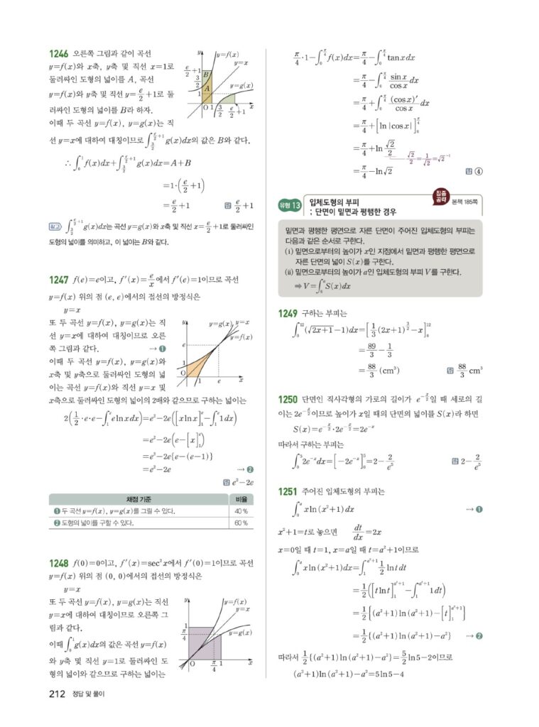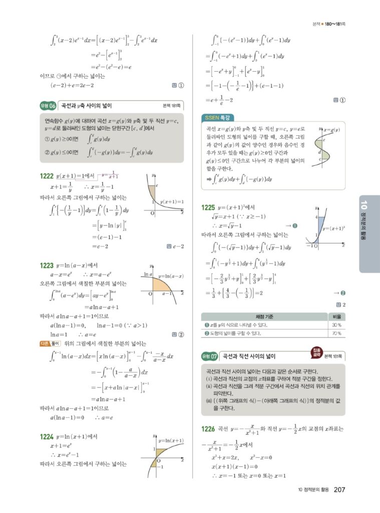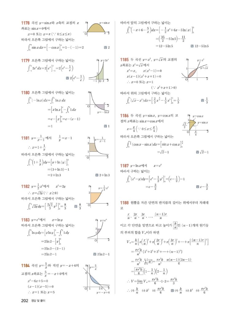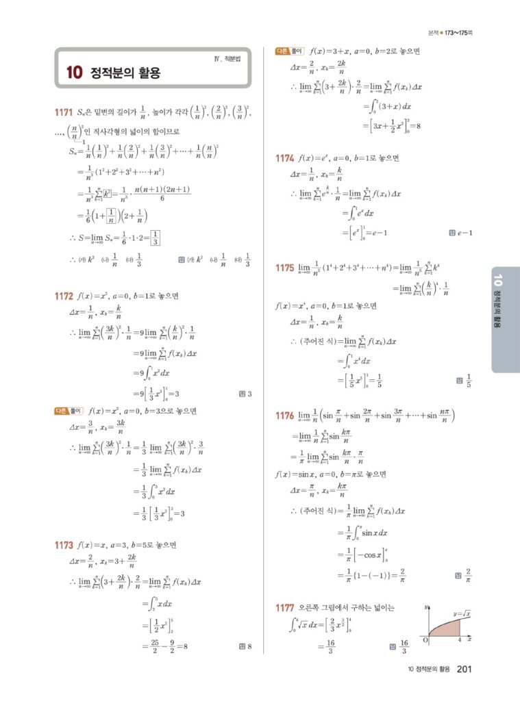 쎈 미적분2 10단원 정적분의 활용 답지 (넓이, 부피, 곡선 길이)
