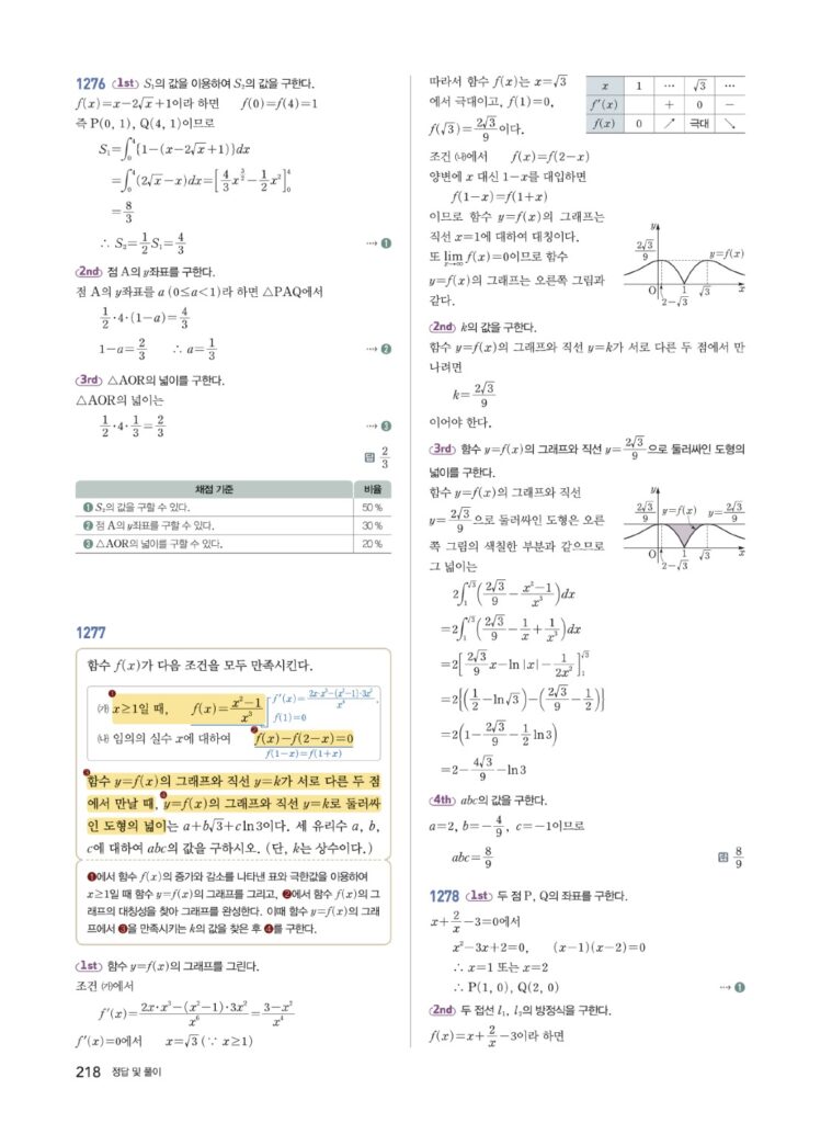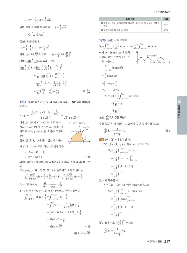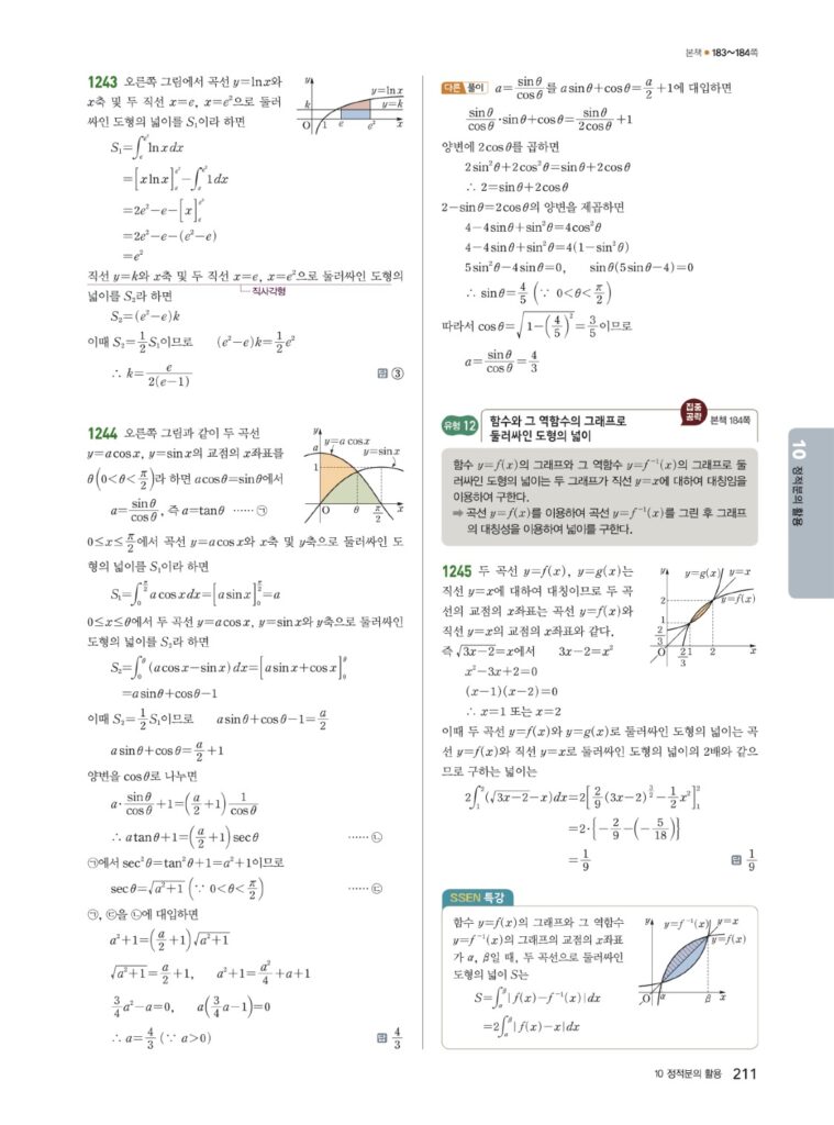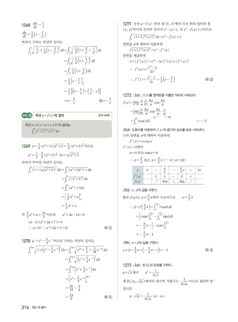쎈 미적분2 10단원 정적분의 활용 답지 (넓이, 부피, 곡선 길이)