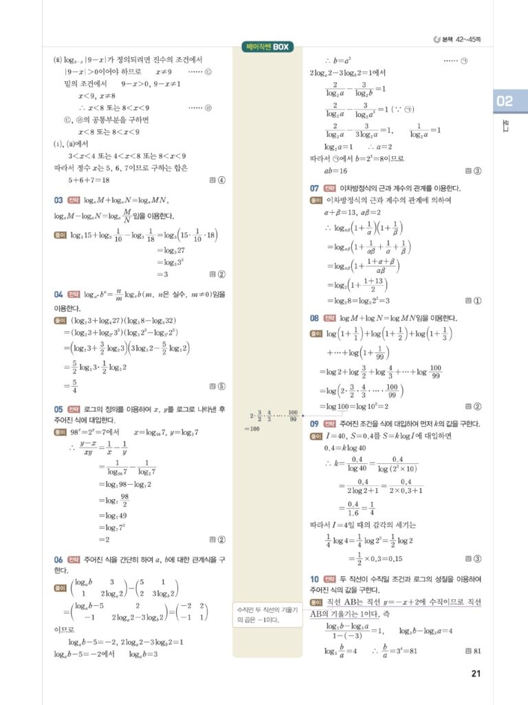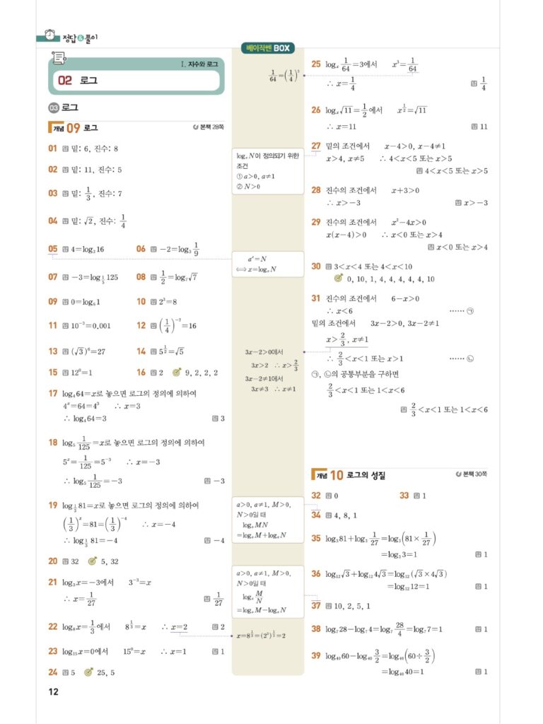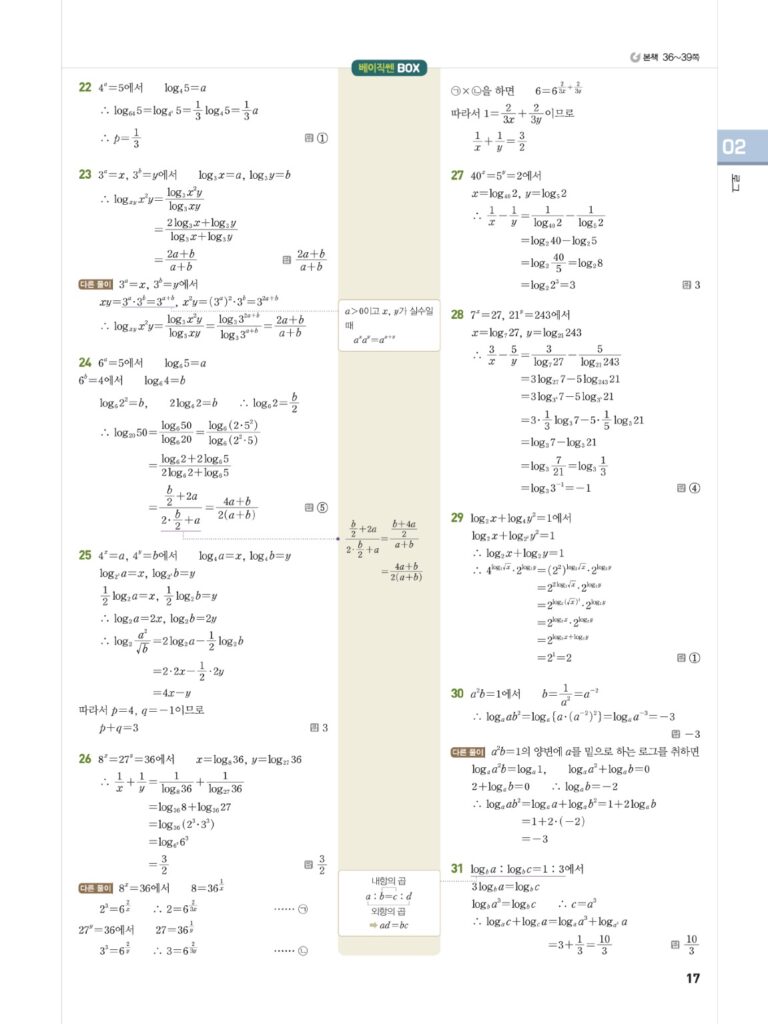 베이직쎈대수답지02로그