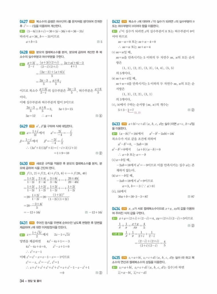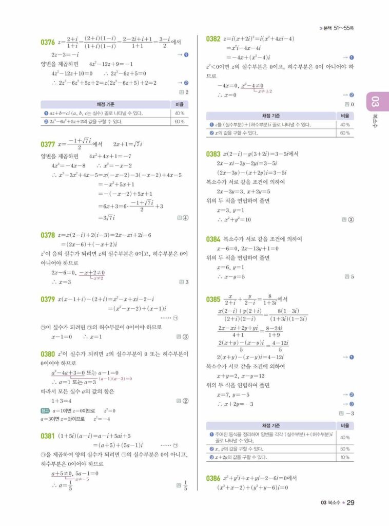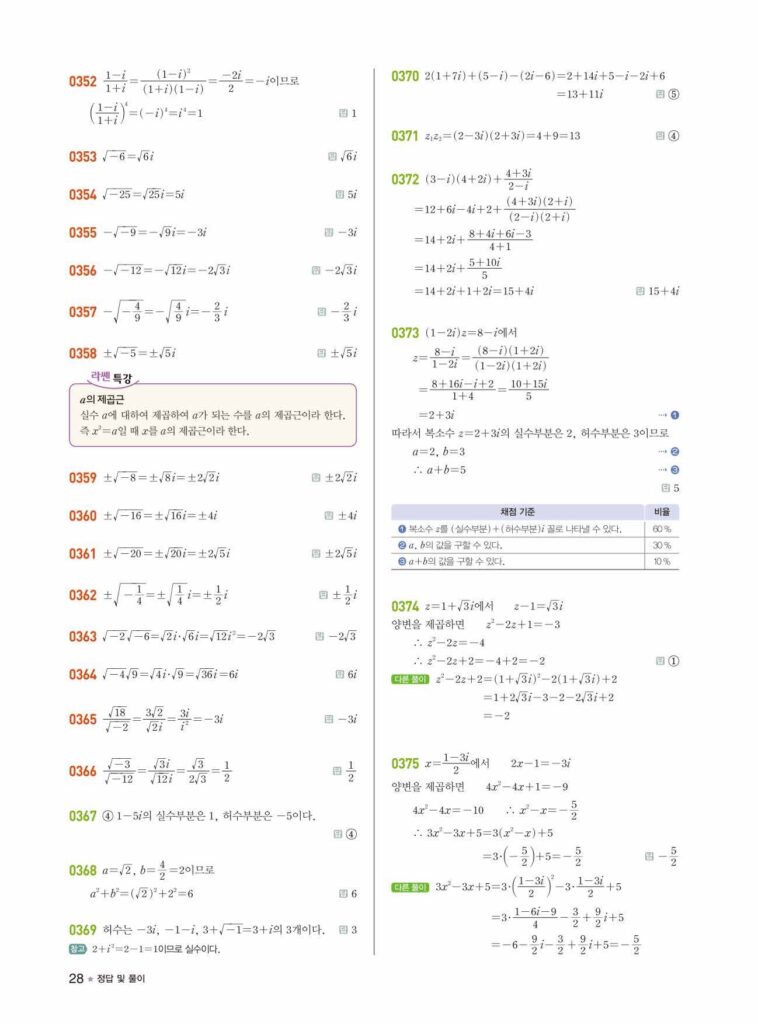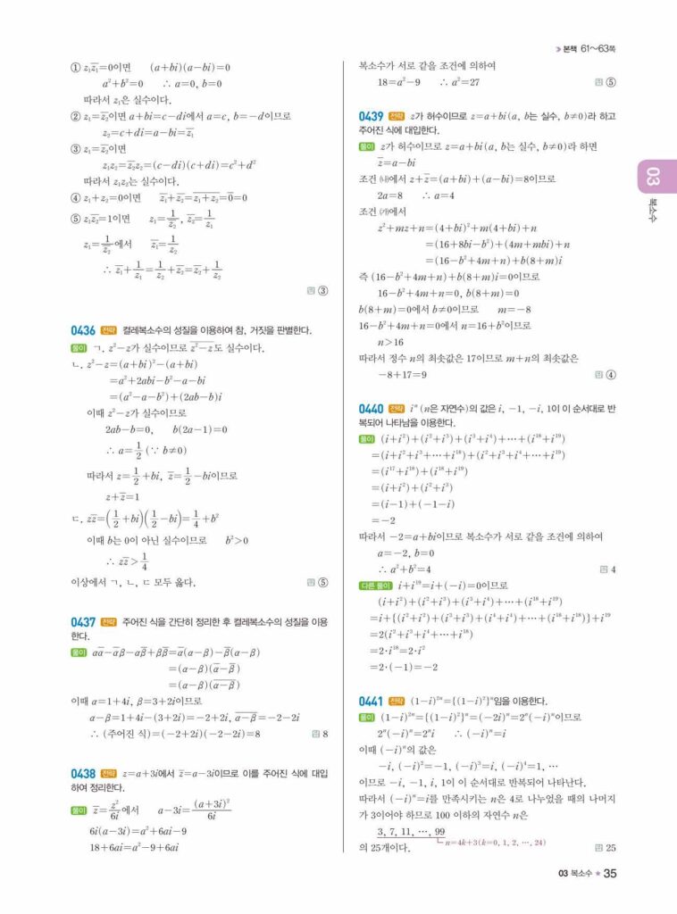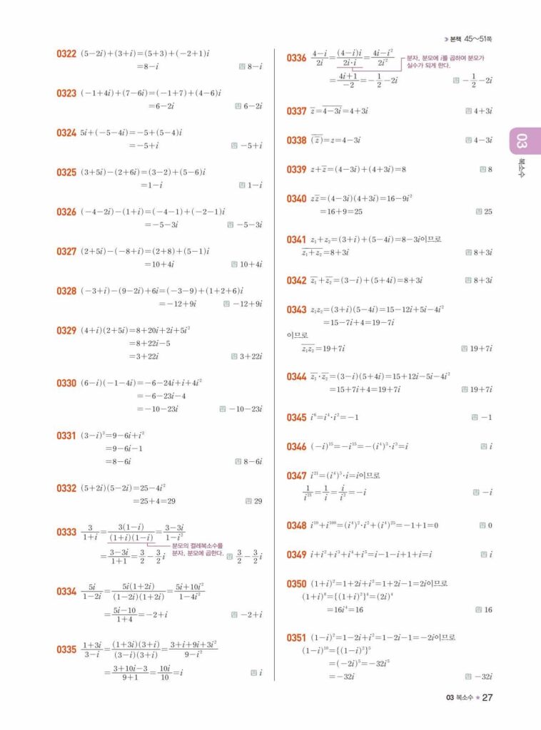 안녕하세요. **라이트쎈 공통수학1** **03단원 복소수** 정답 및 해설입니다.