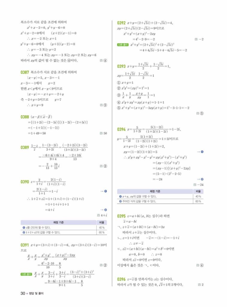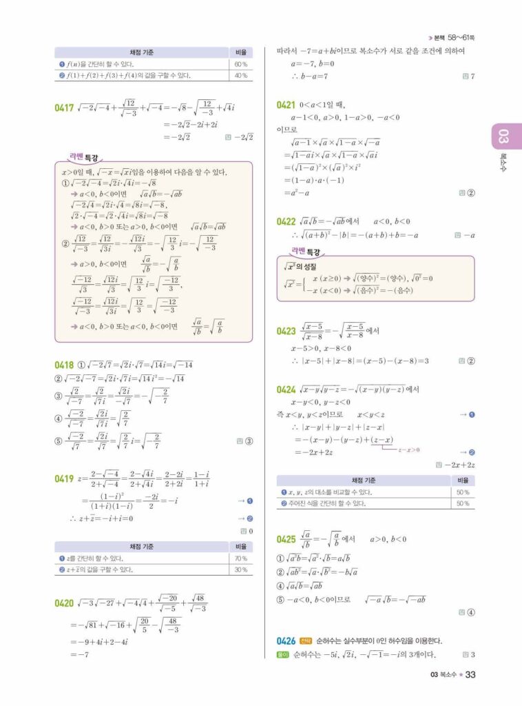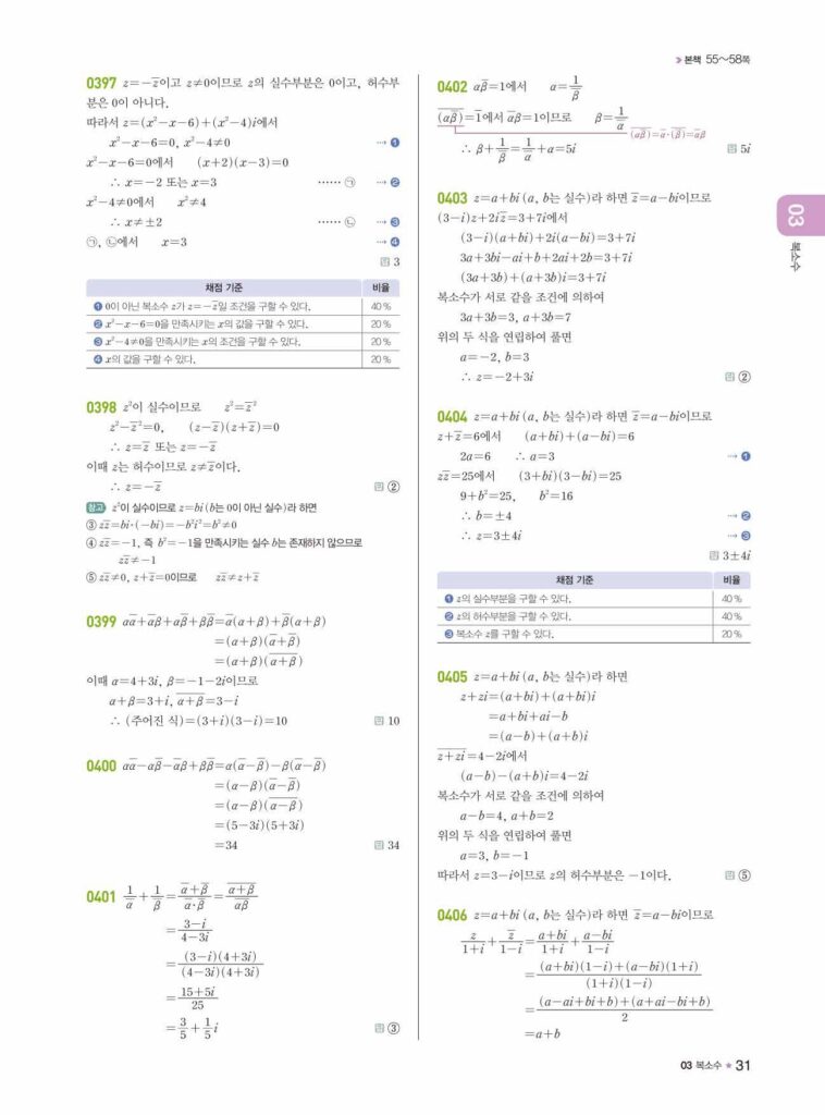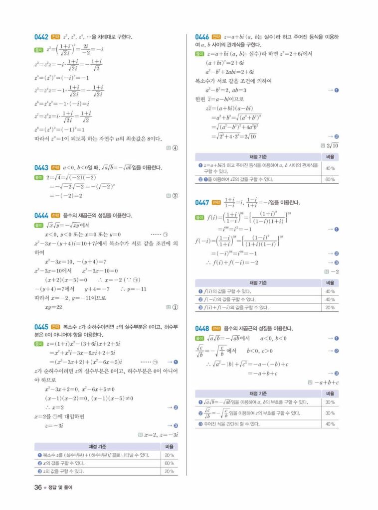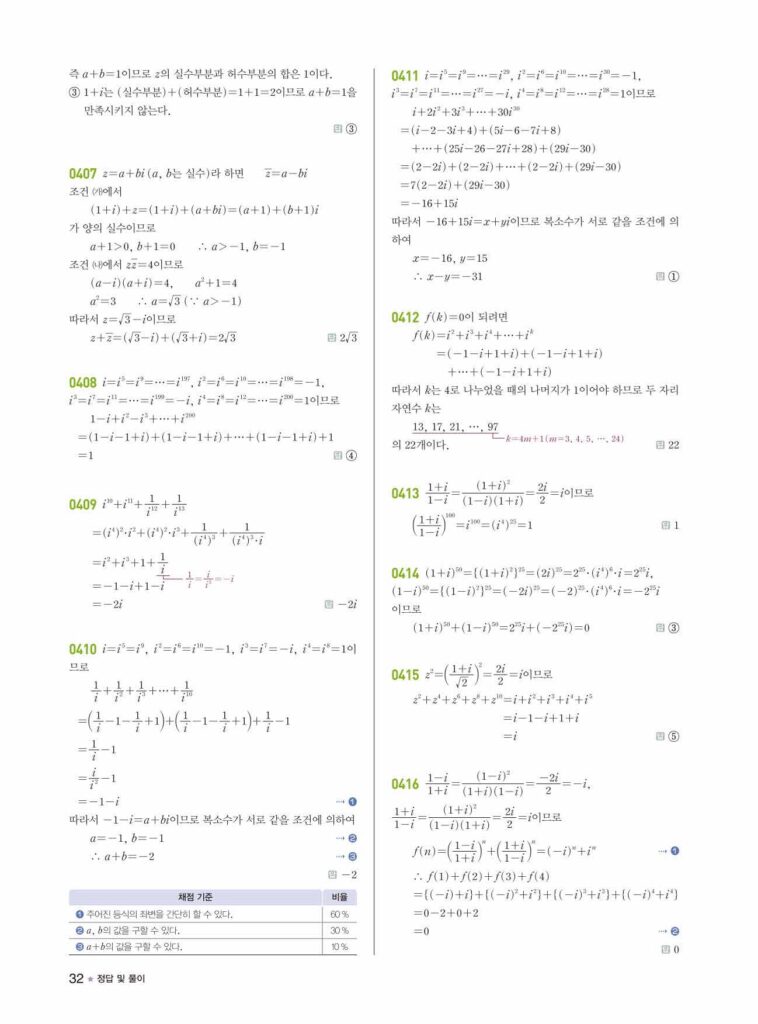 안녕하세요. **라이트쎈 공통수학1** **03단원 복소수** 정답 및 해설입니다.