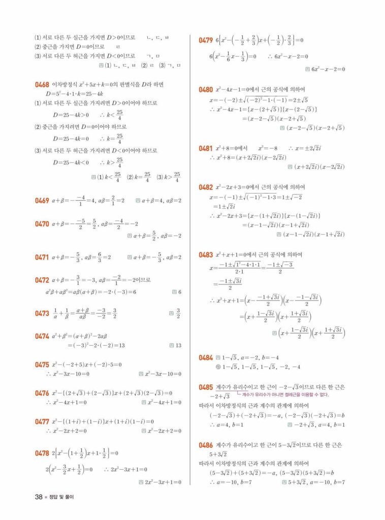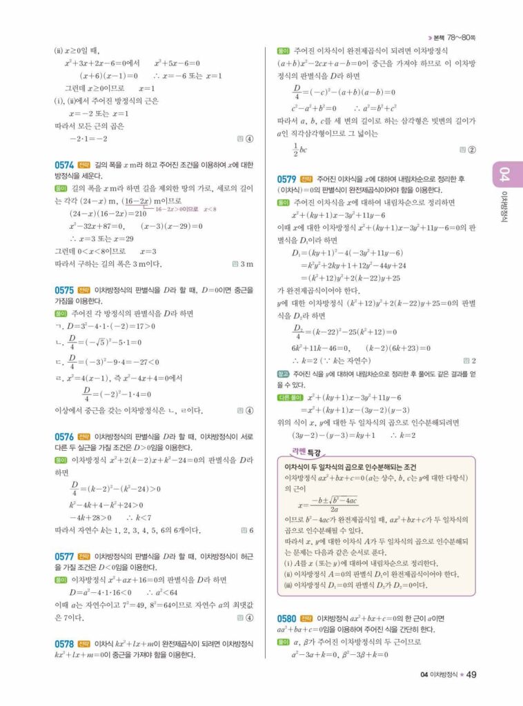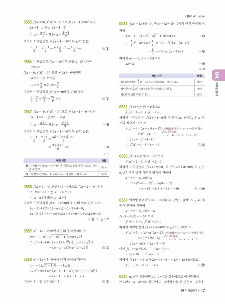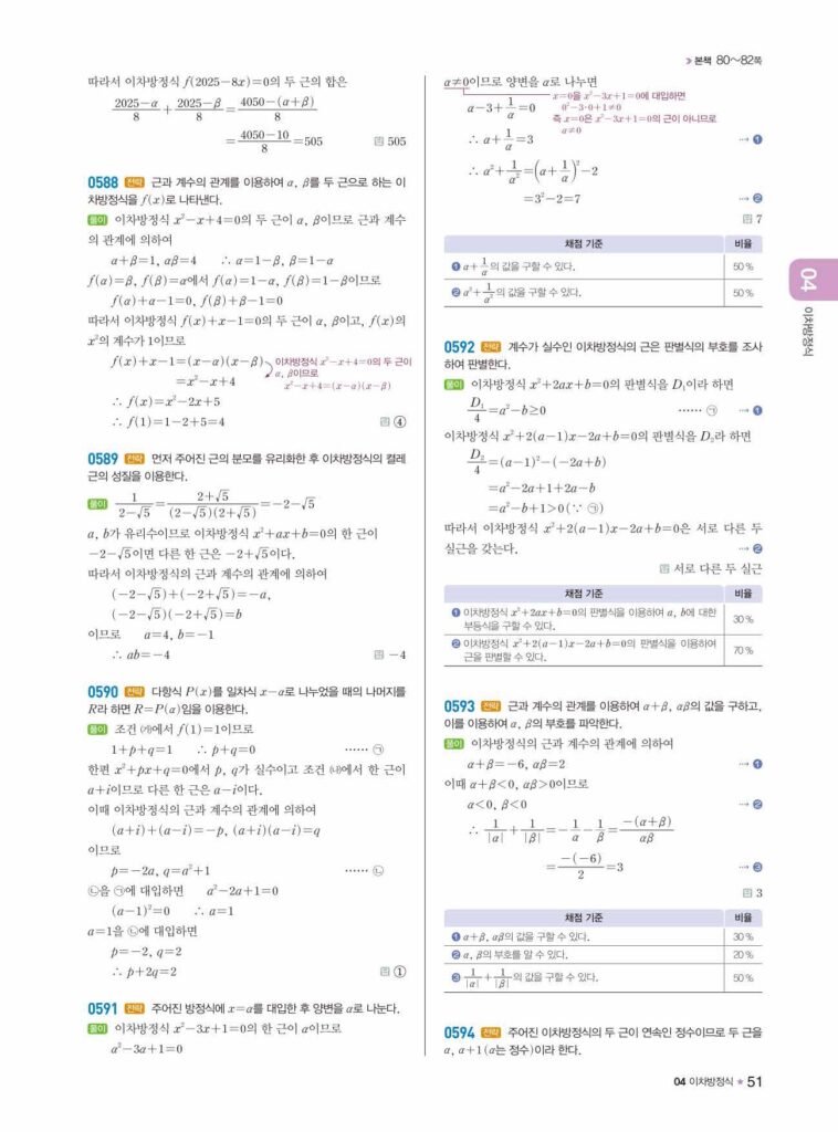 안녕하세요. **라이트쎈 공통수학1** **04단원 이차방정식** 정답 및 해설입니다.
