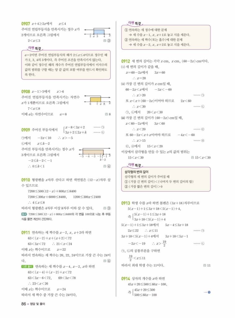 라이트쎈 수학 연립일차부등식의 해 구하기 해설