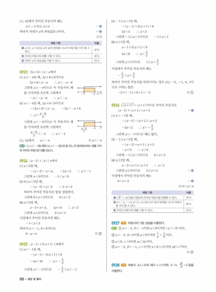 라이트쎈 공통수학1 07단원 일차부등식 답지 (부등호 방향, 수직선 해법)