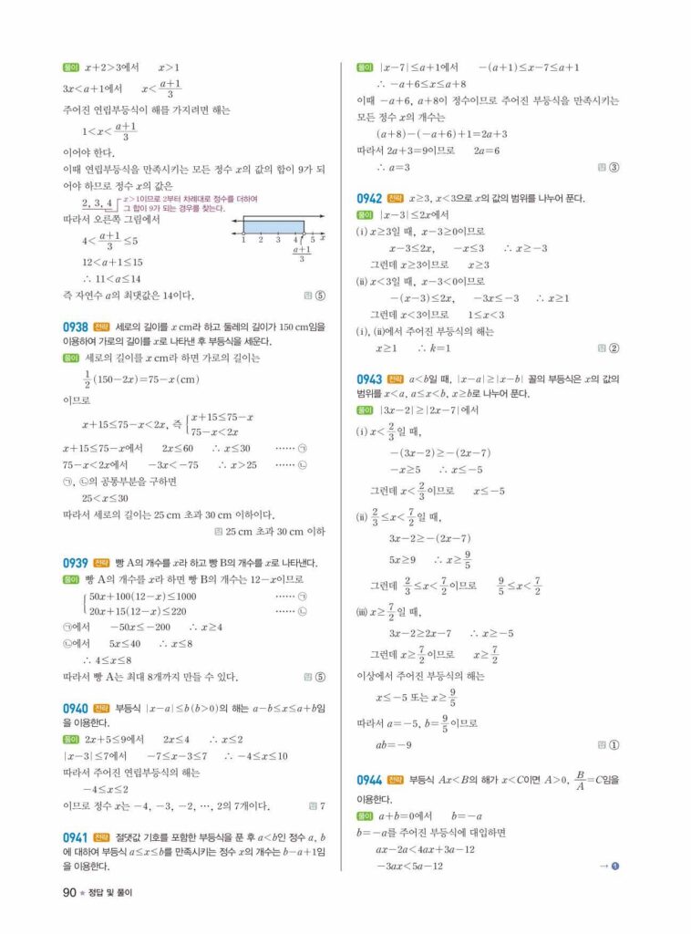 라이트쎈 공통수학1 일차부등식의 풀이와 수직선 문제