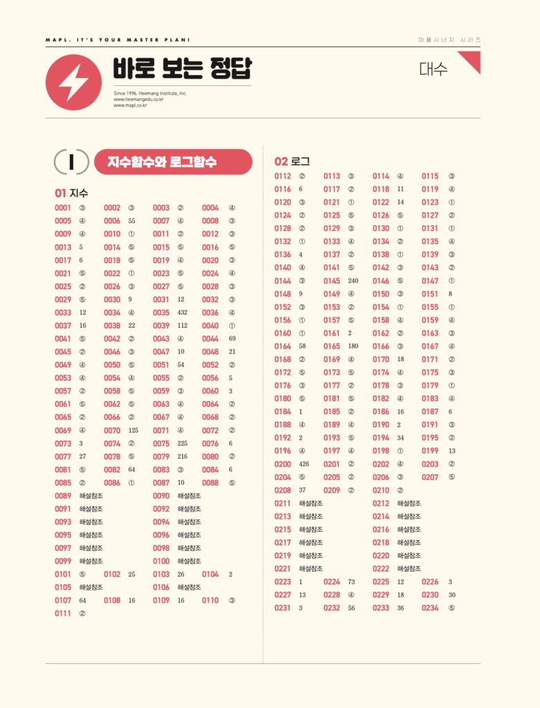 1. 마플시너지 대수 빠른정답 & 전체 해설지 PDF