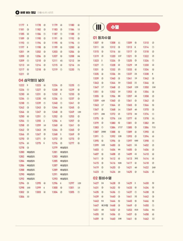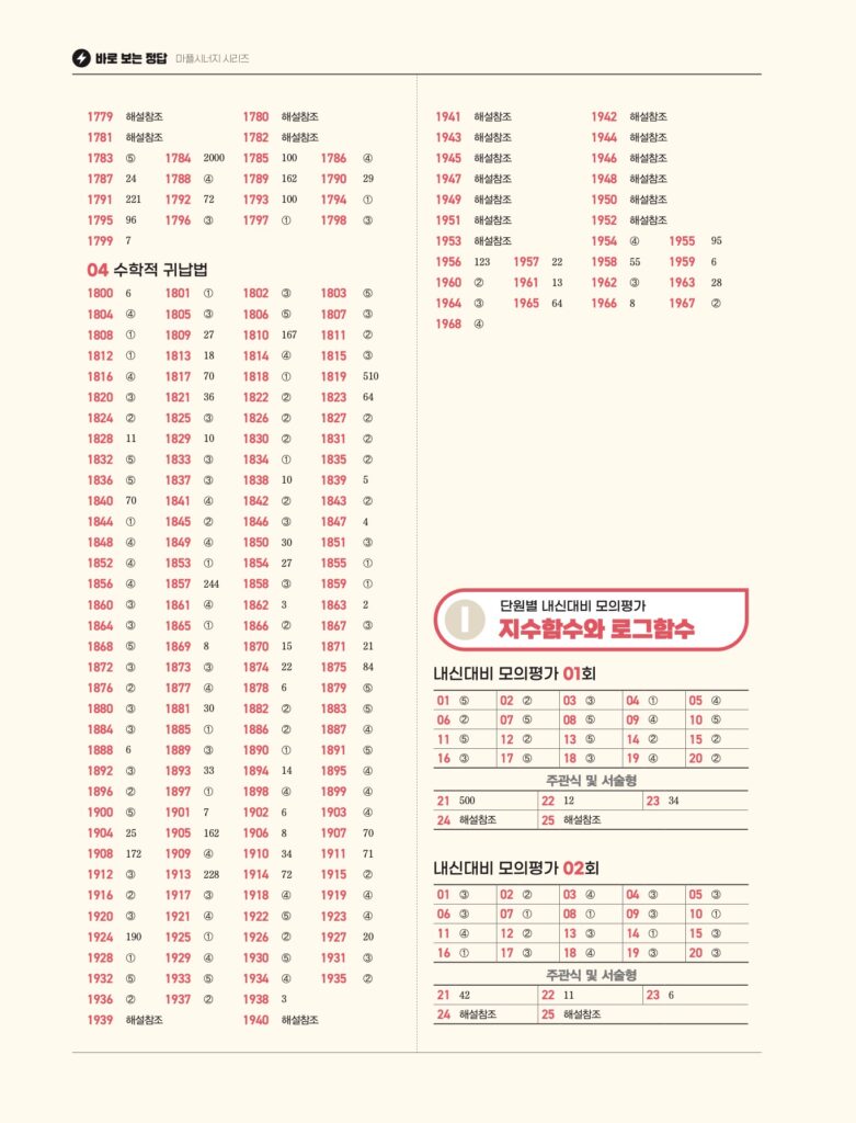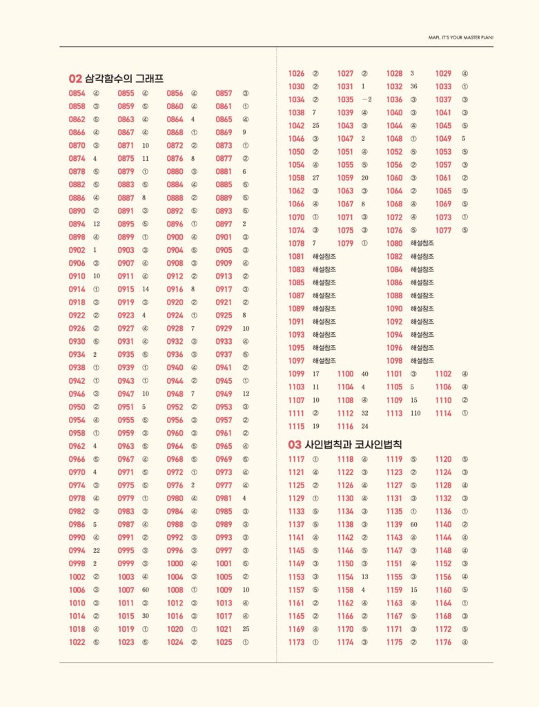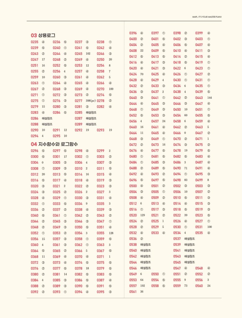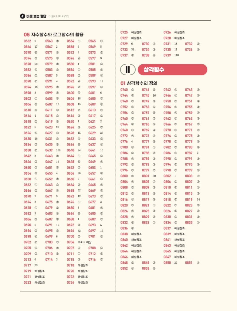 마플시너지는 **문제량**과 **유형 분석**이 탁월한 교재입니다. **지수/로그 함수**, **삼각함수**, **수열**까지 방대한 내용을 커버하므로, 아래에서 **빠른 정답**과 **단원별 킬러 문항 해설**을 확인하고 효율적으로 학습하세요.