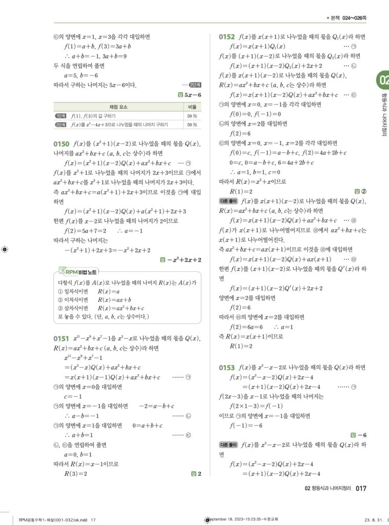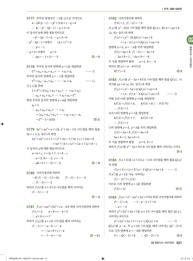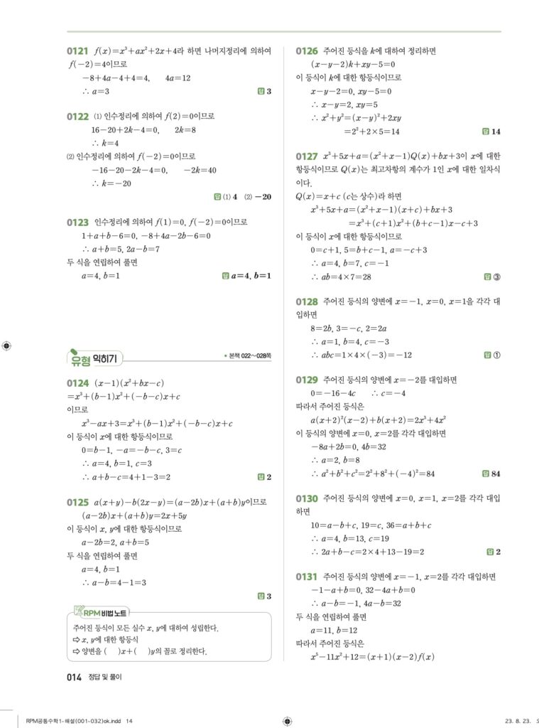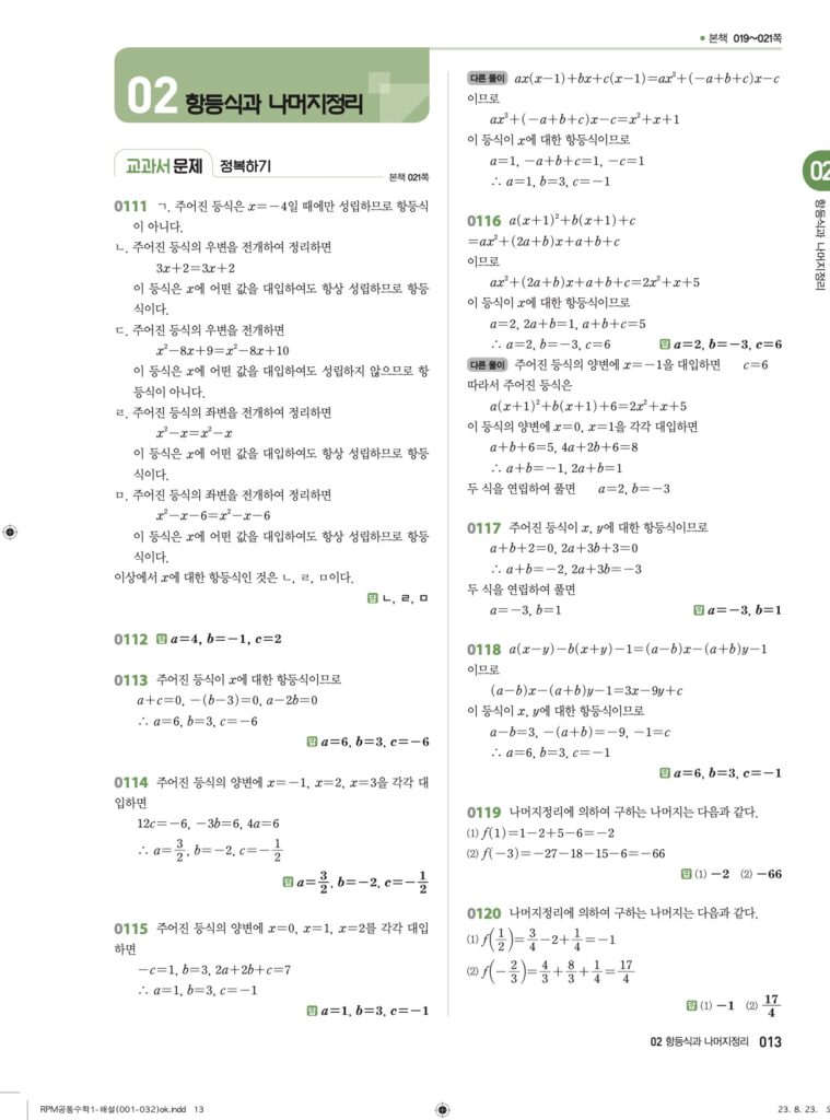 RPM 공통수학1 02. 항등식과 나머지정리 답지