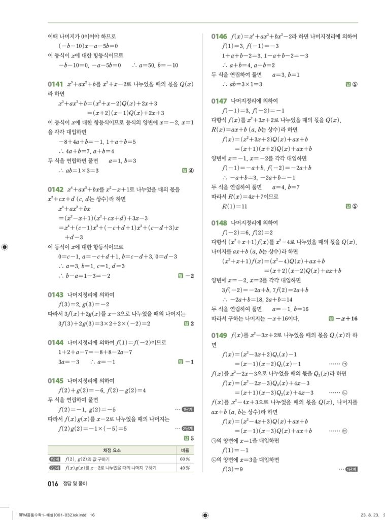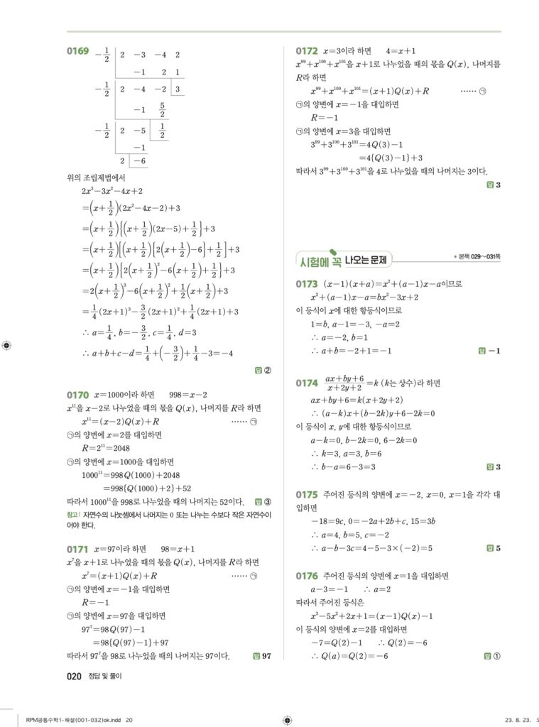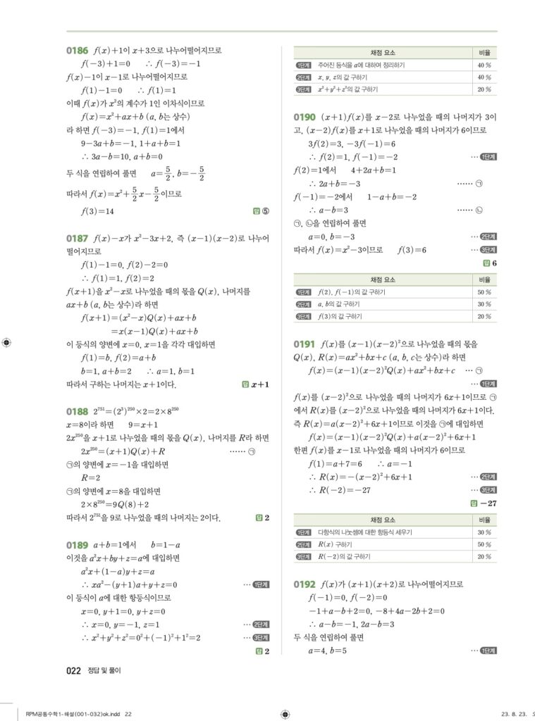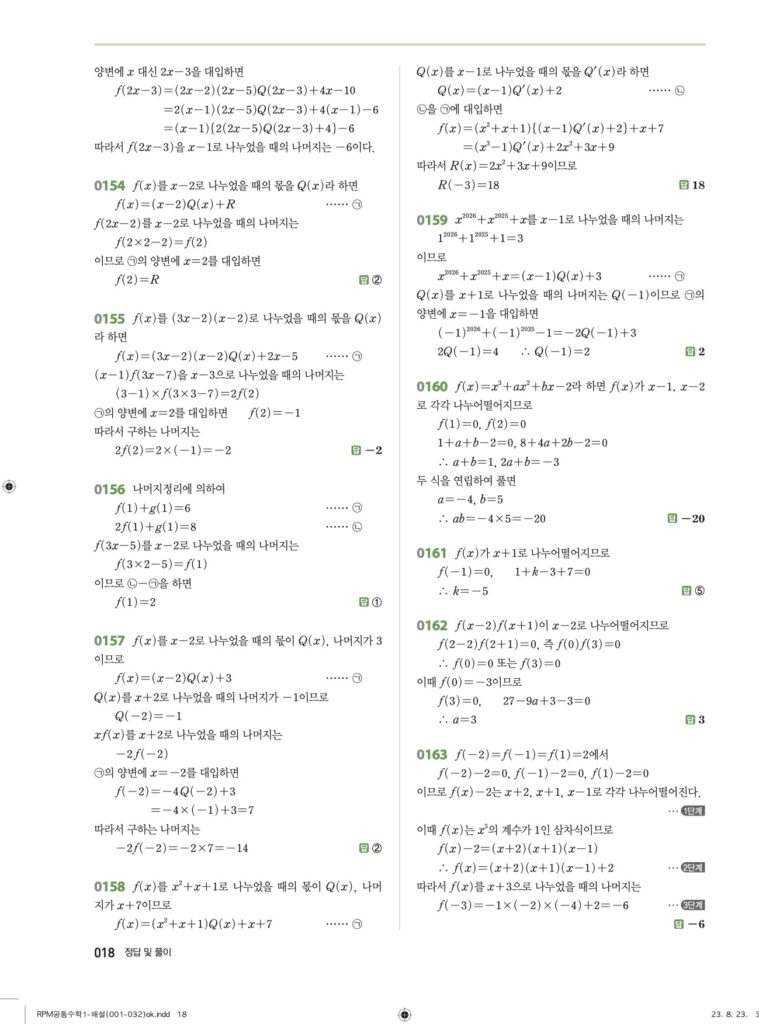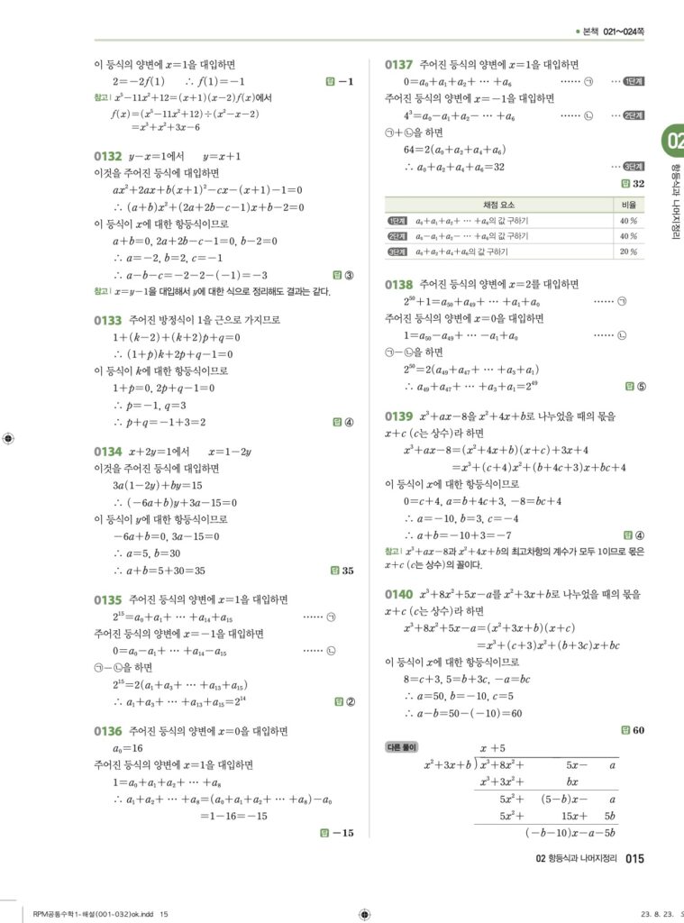RPM 공통수학1 02. 항등식과 나머지정리 답지