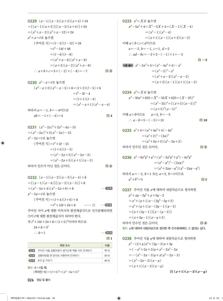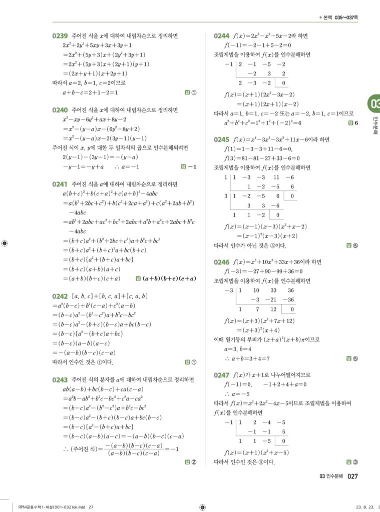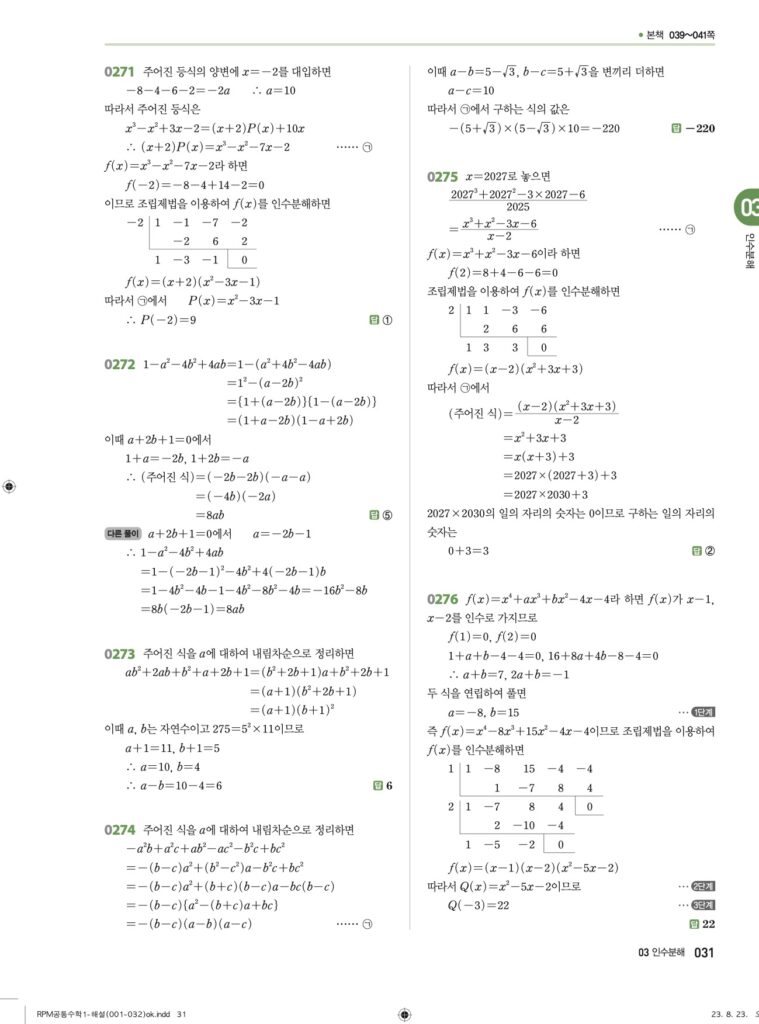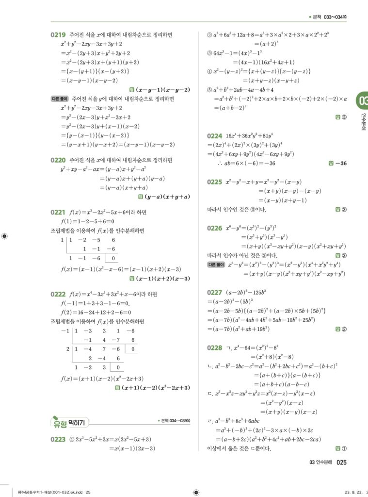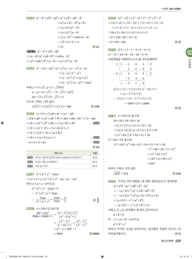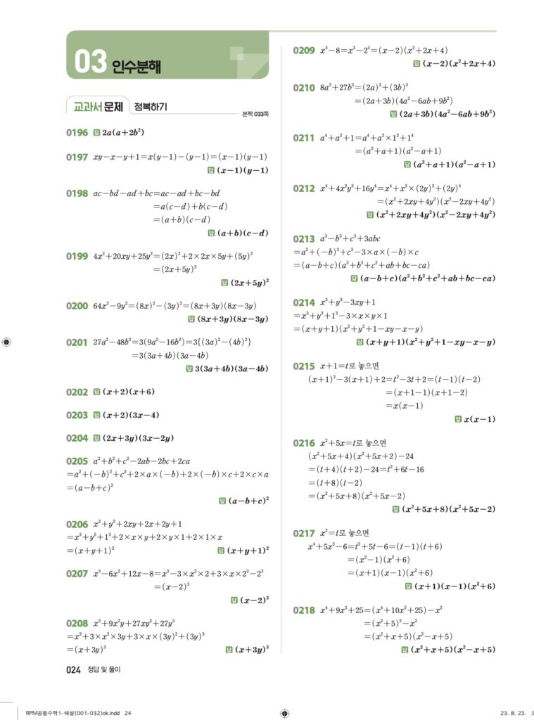 RPM 공통수학1 03. 인수분해 답지
