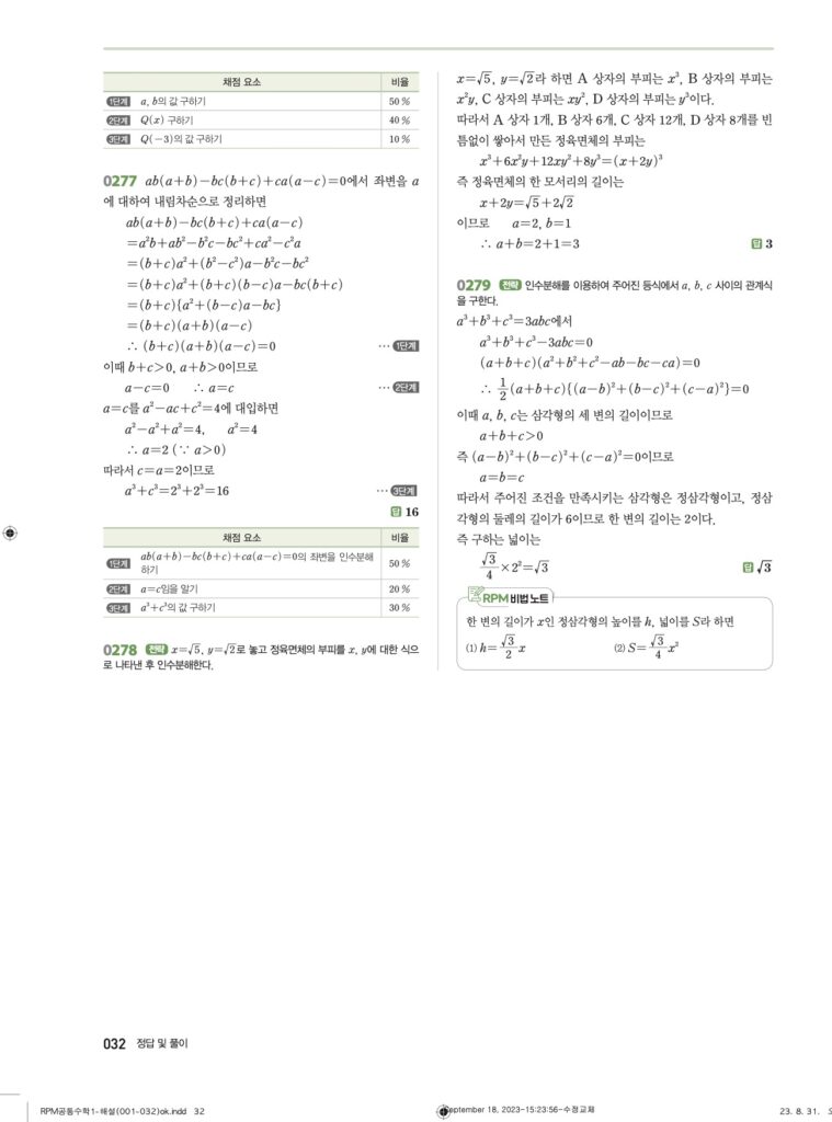 안녕하세요. **RPM 공통수학1** **03단원 인수분해** 정답 및 해설입니다.