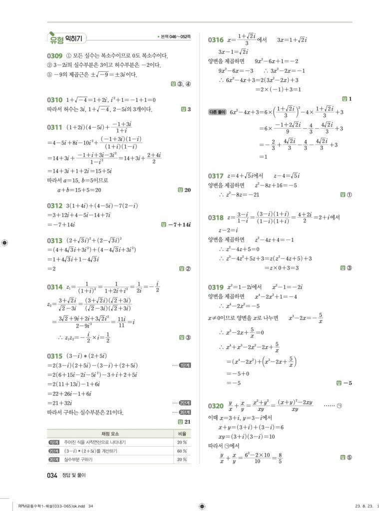 RPM 공통수학1 04. 복소수 답지
