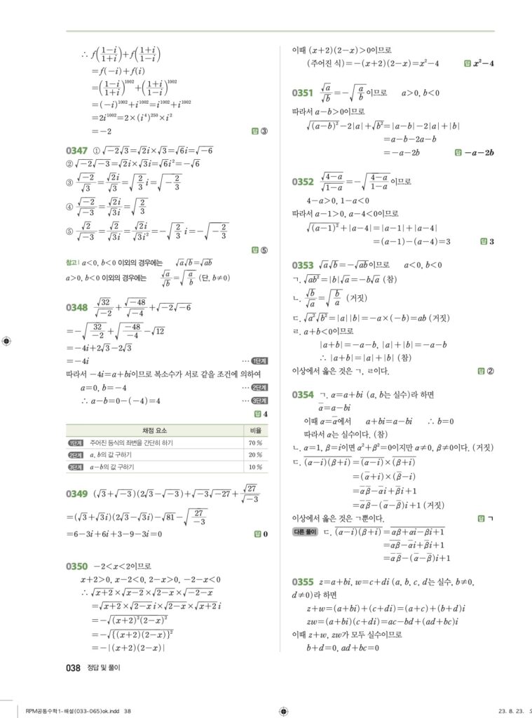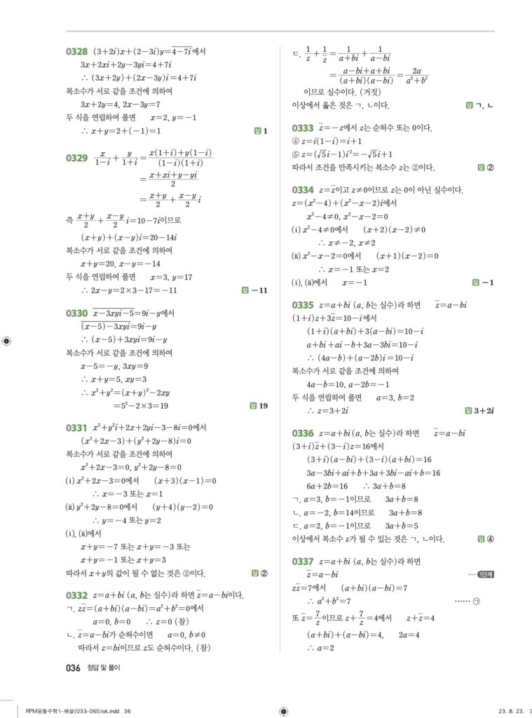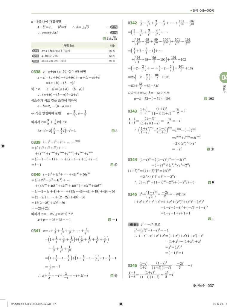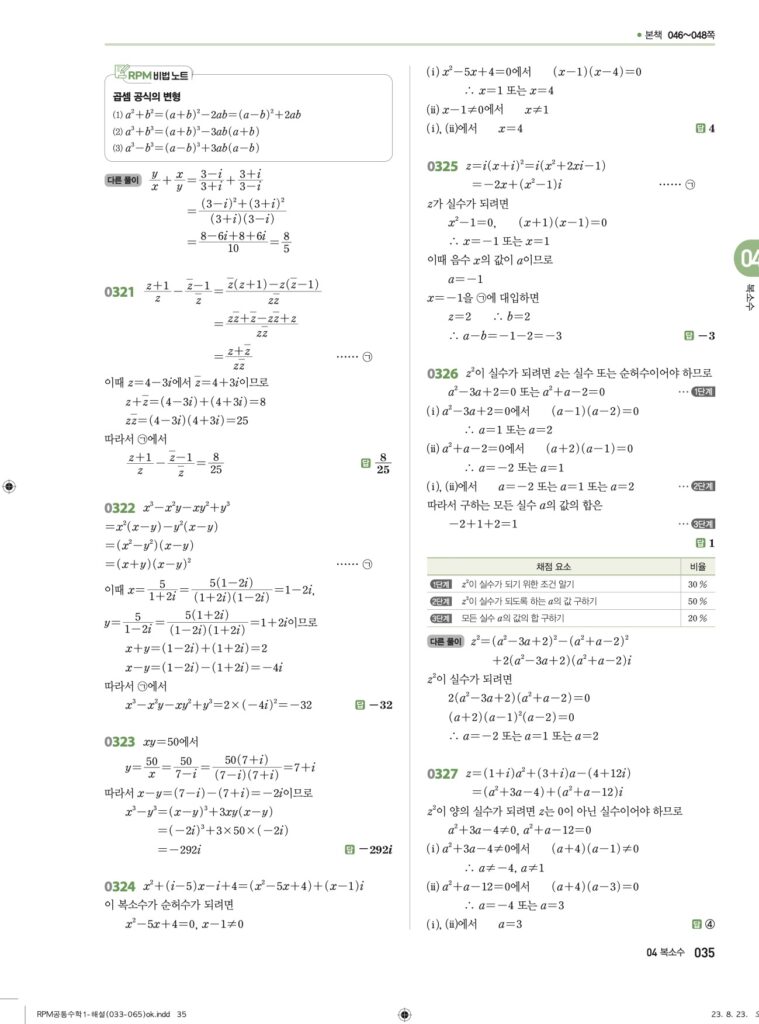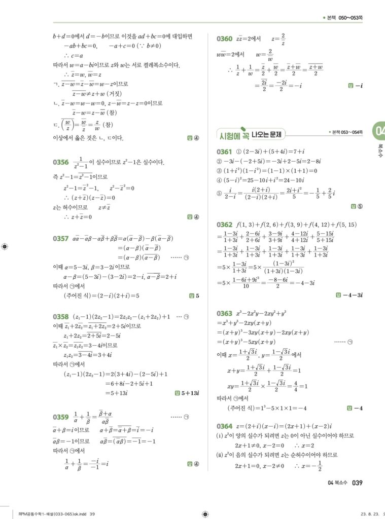 안녕하세요. **RPM 공통수학1** **04단원 복소수** 정답 및 해설입니다.