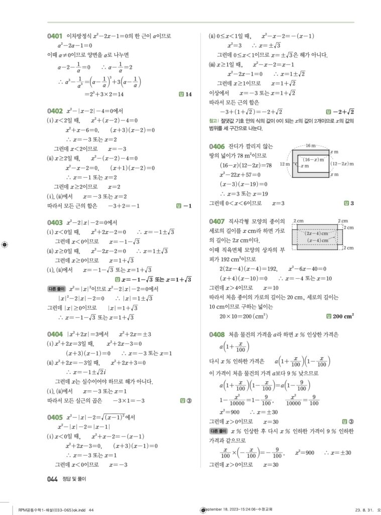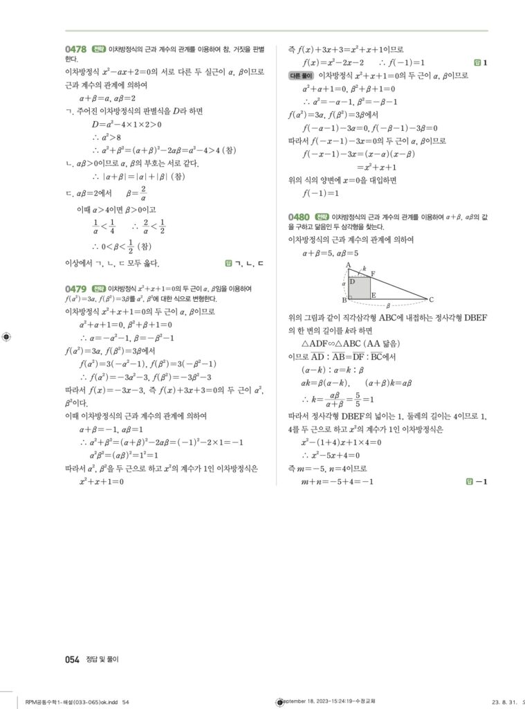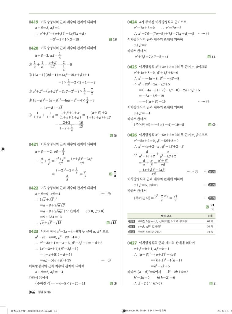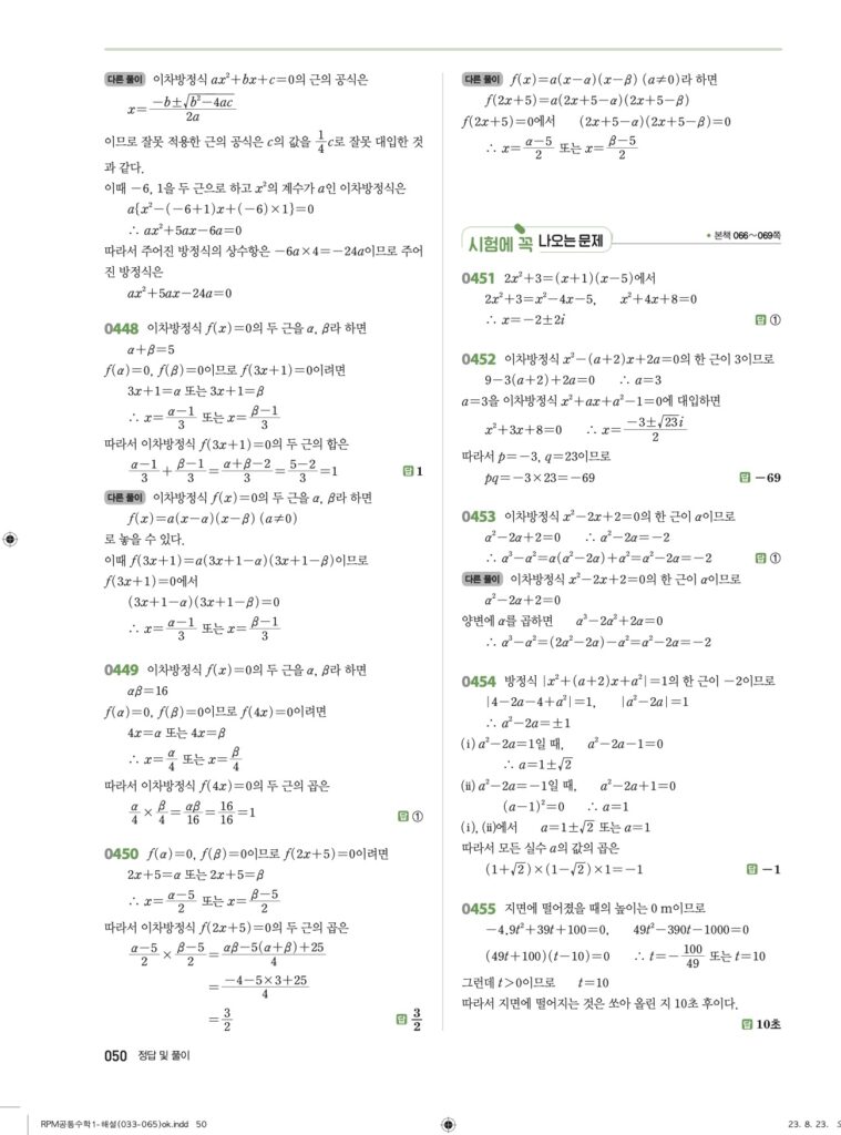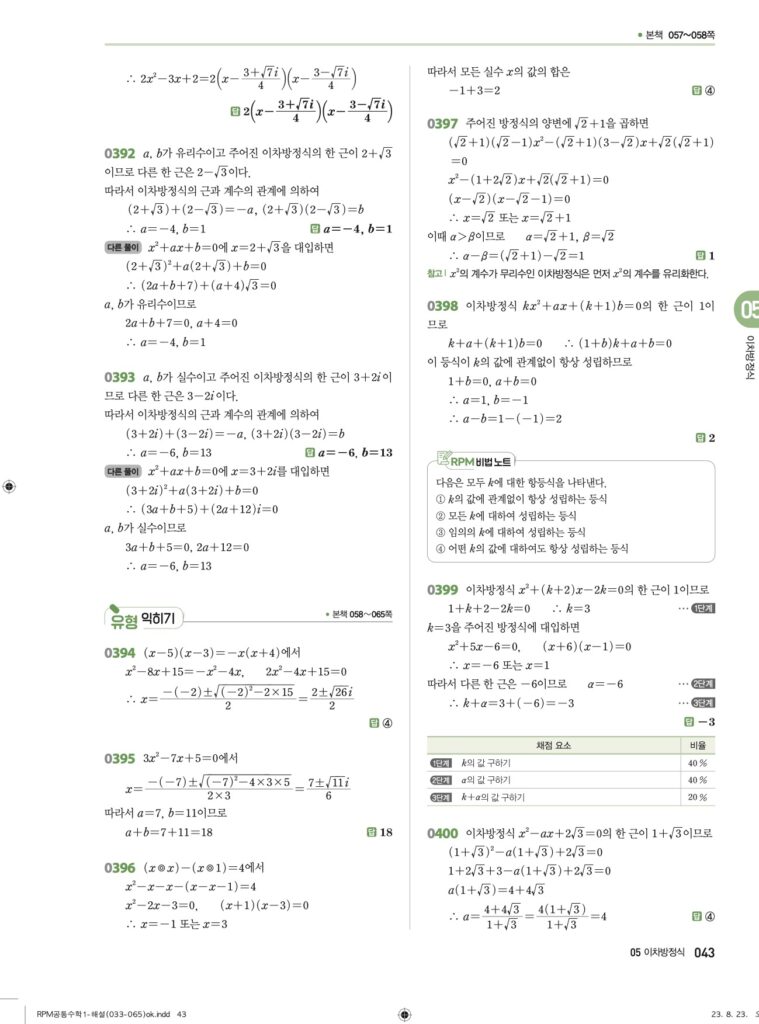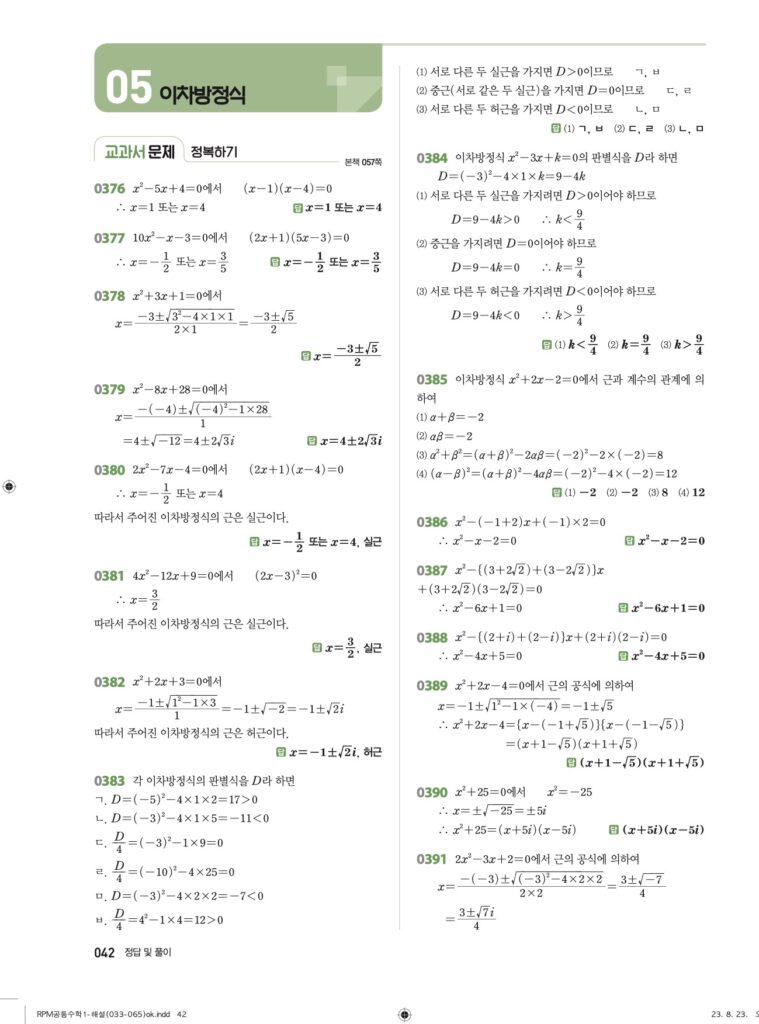 📂 RPM 공통수학1 답지 전체 모음 & 근의 공식 특강 (클릭)