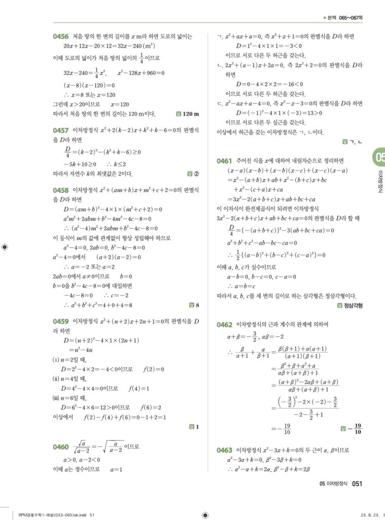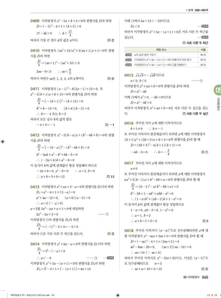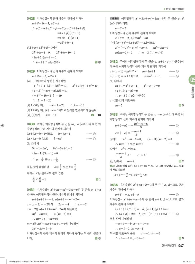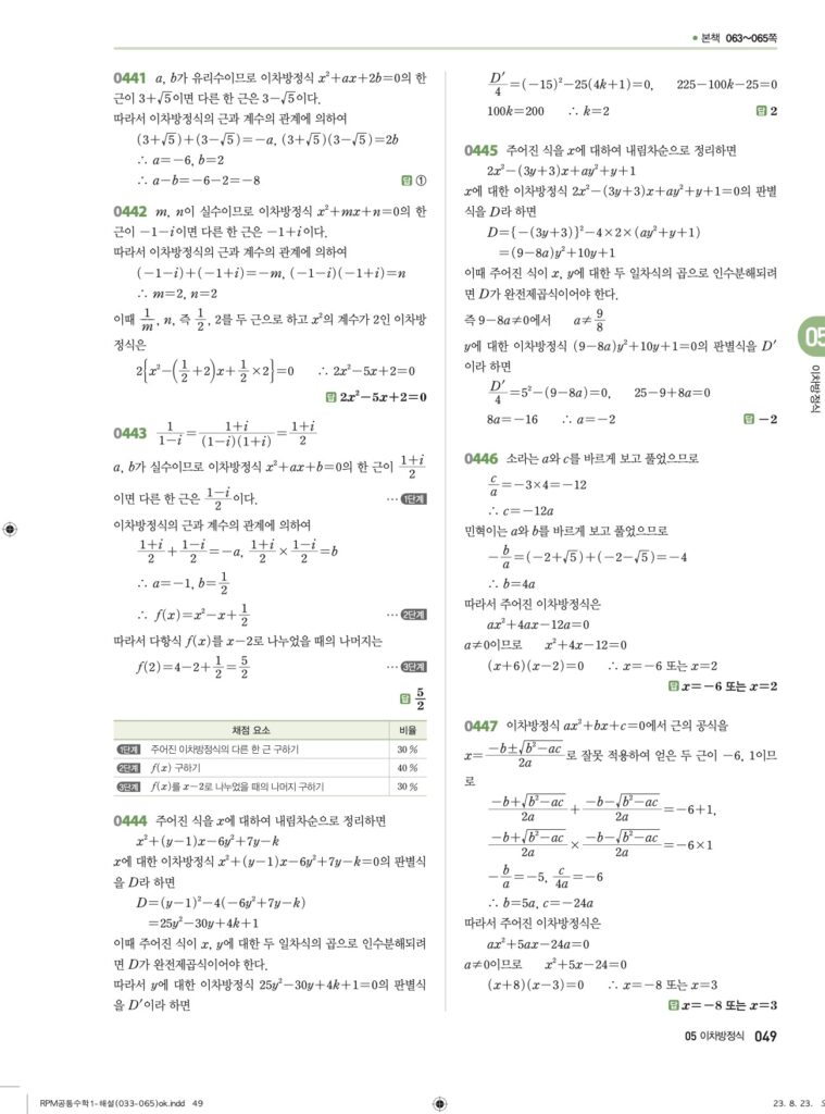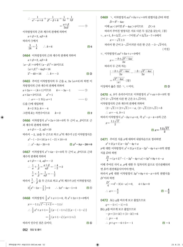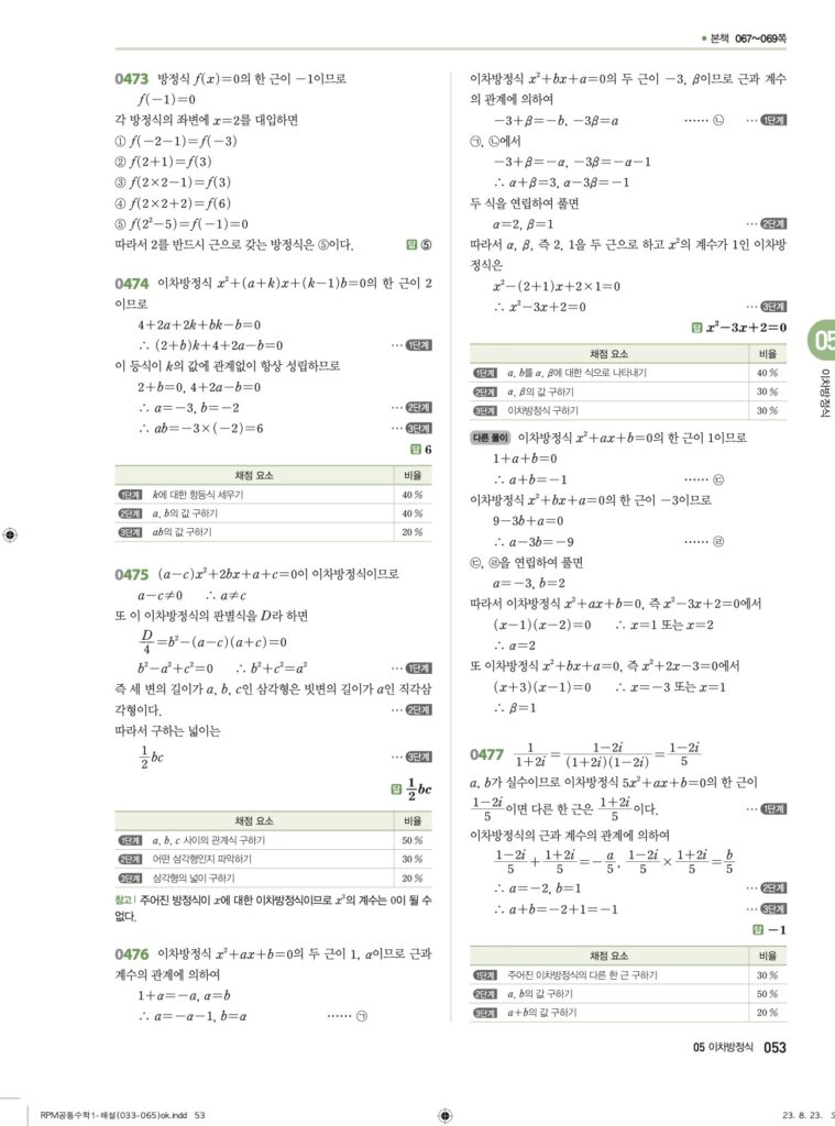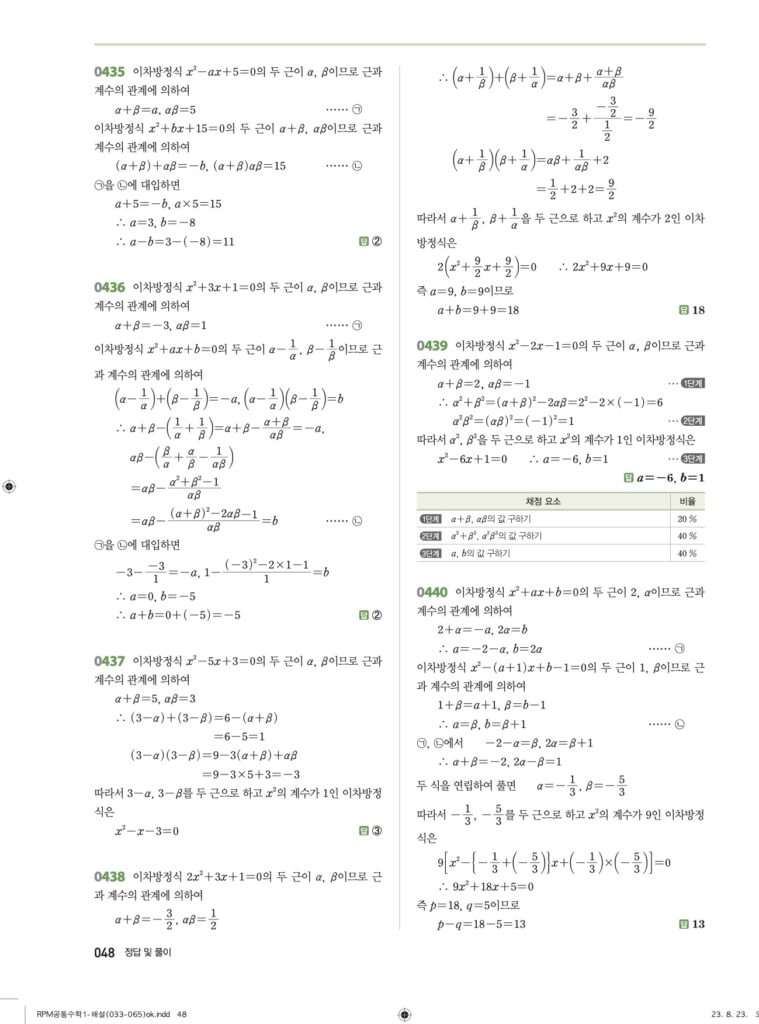 안녕하세요. **RPM 공통수학1** **05단원 이차방정식** 정답 및 해설입니다.