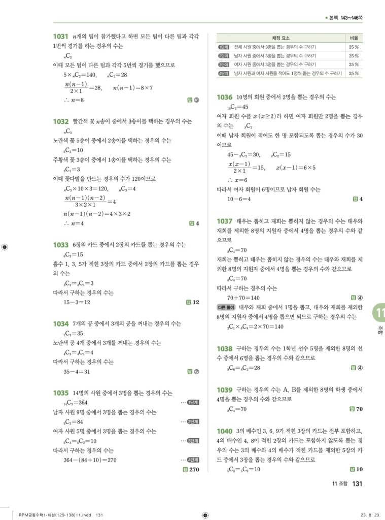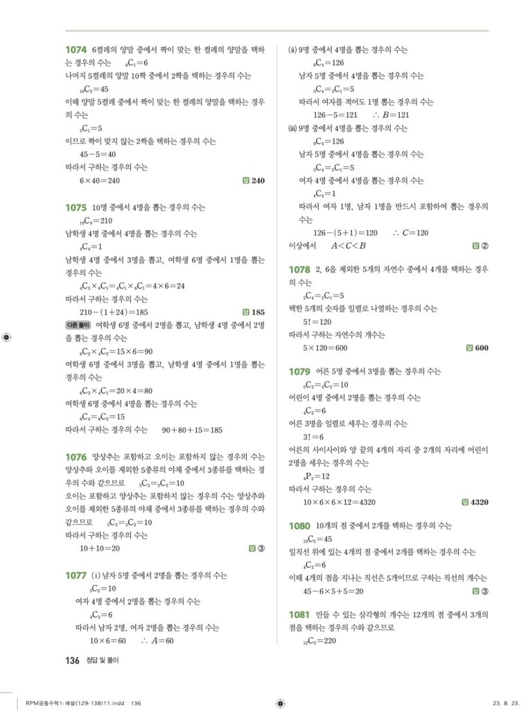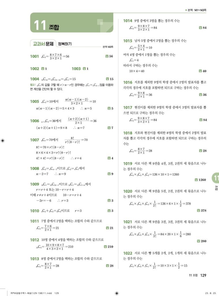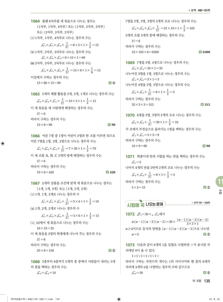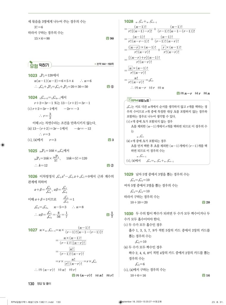 안녕하세요. **RPM 공통수학1** **11단원 조합** 정답 및 해설입니다.