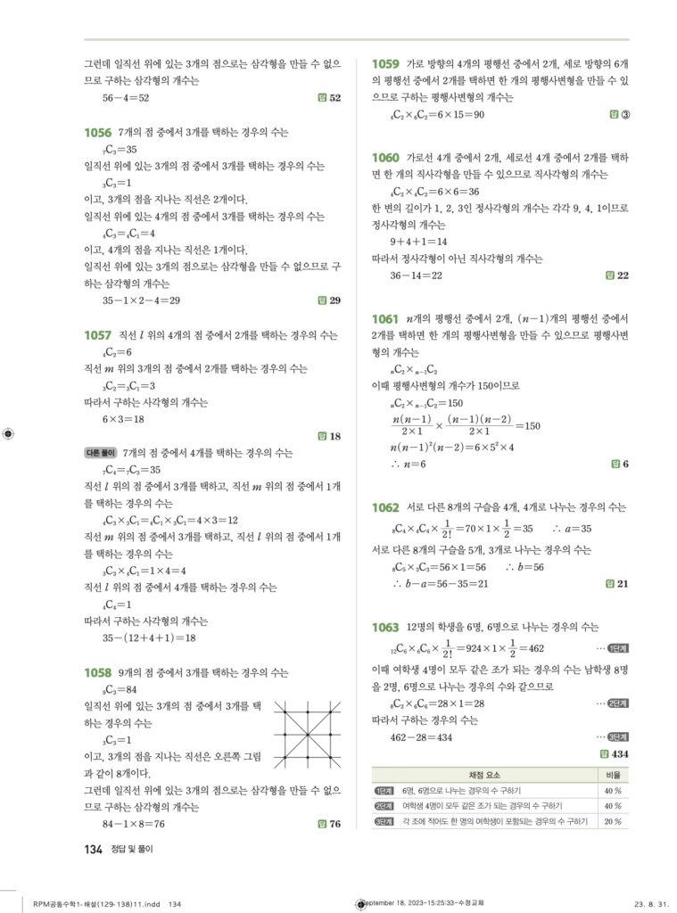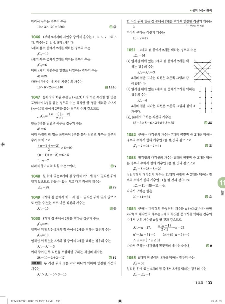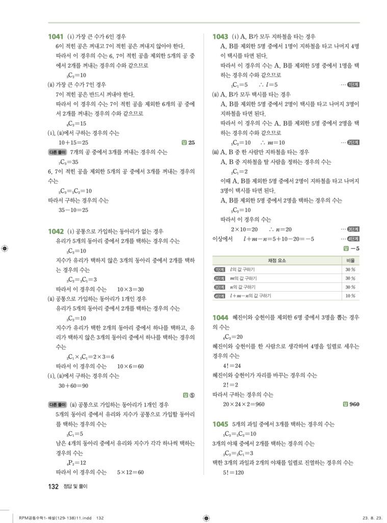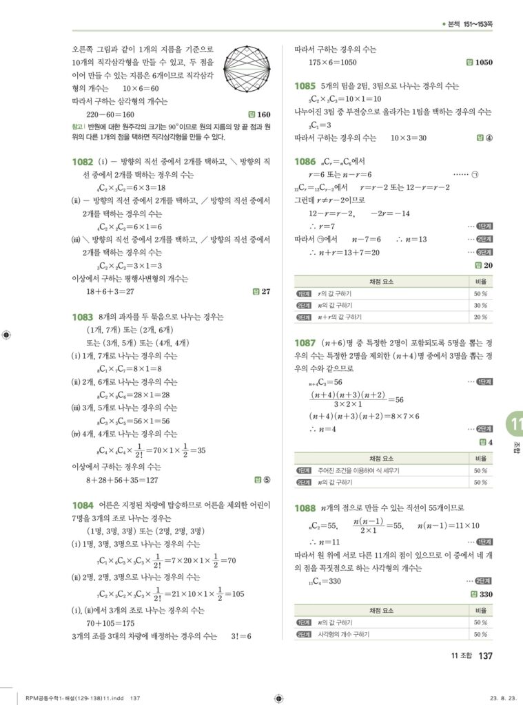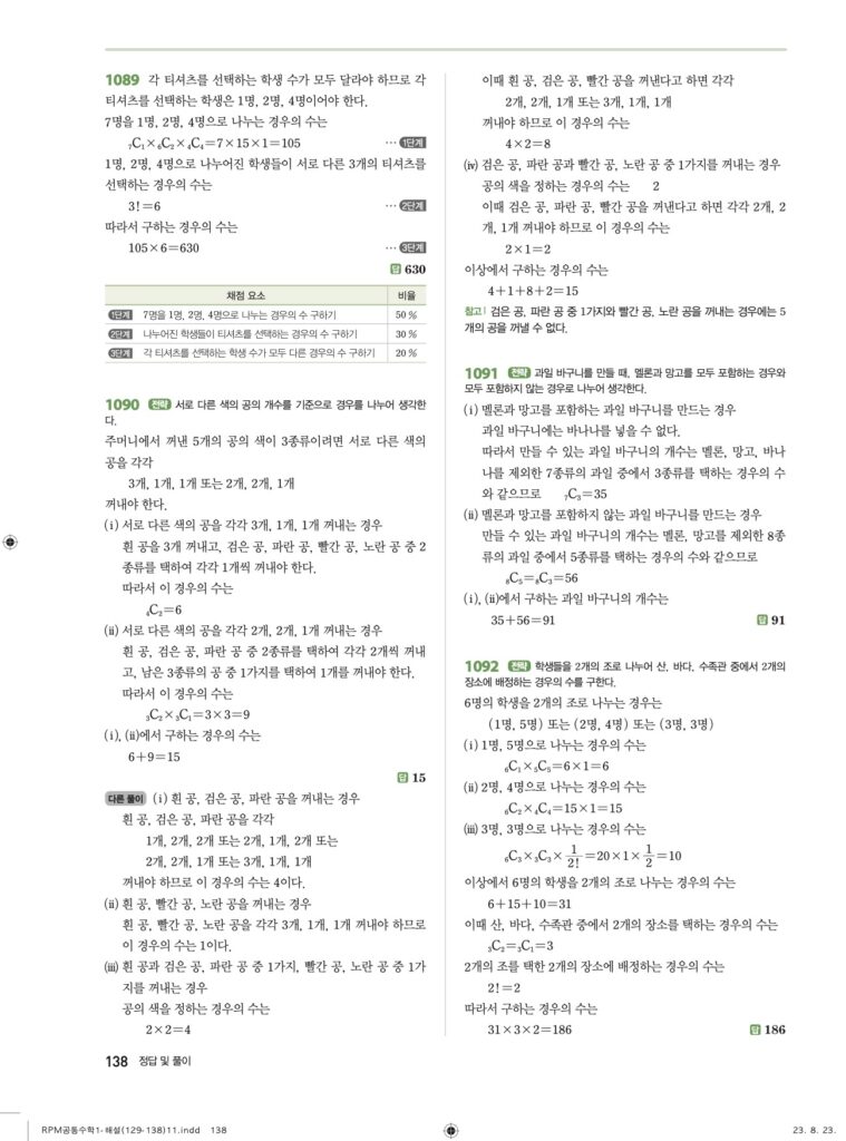 안녕하세요. **RPM 공통수학1** **11단원 조합** 정답 및 해설입니다.