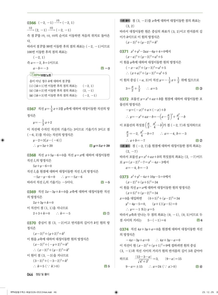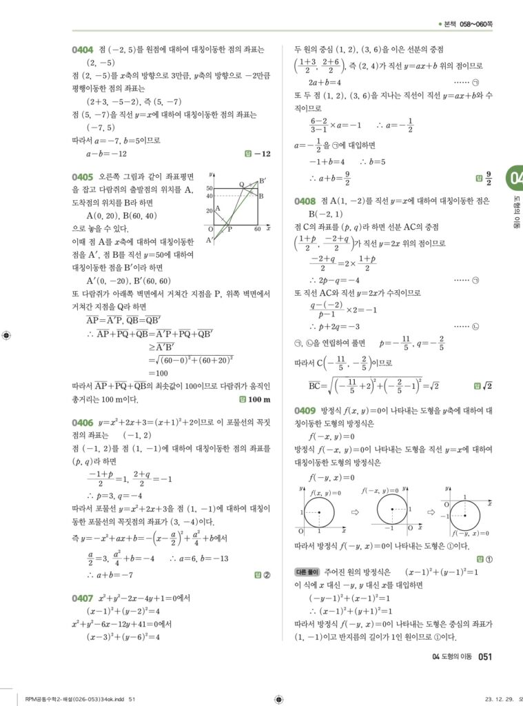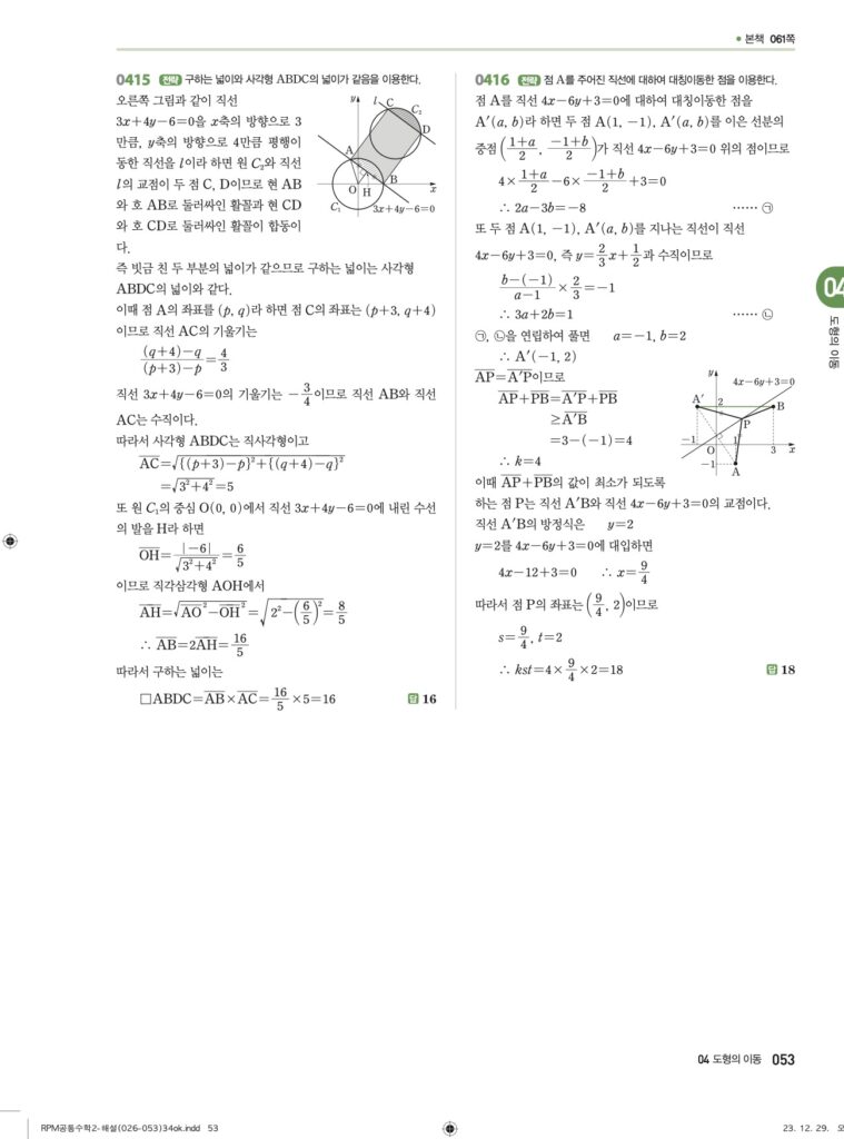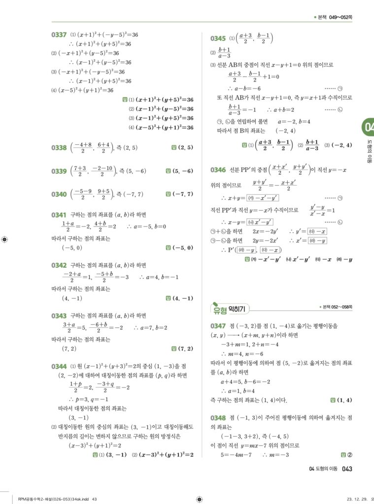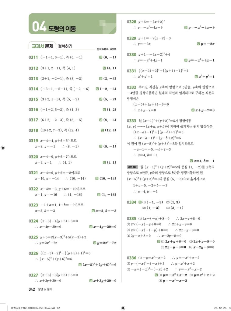 안녕하세요. **RPM 공통수학2** **04단원 도형의 이동** 정답 및 해설입니다.