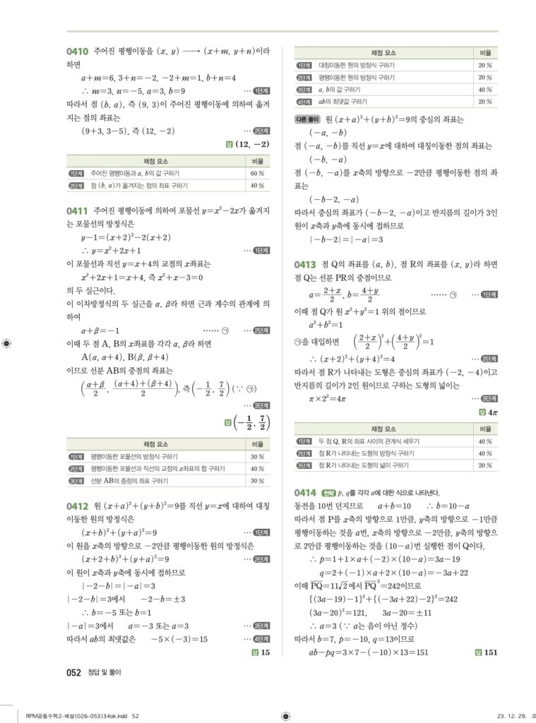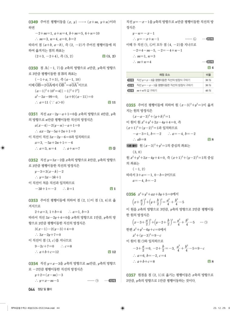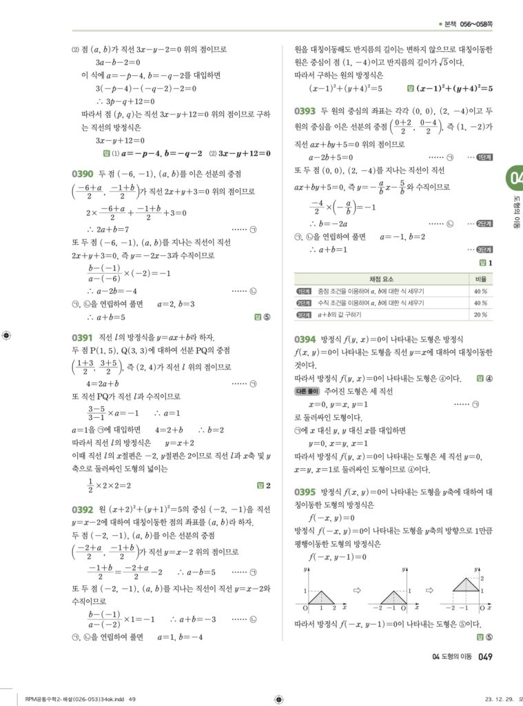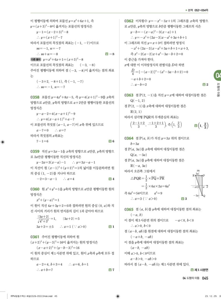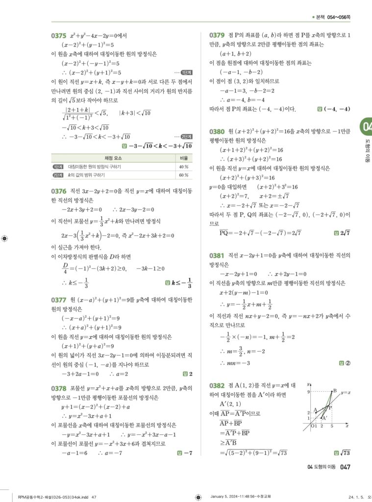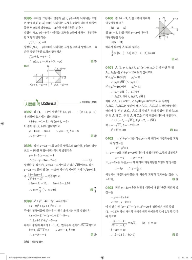 안녕하세요. **RPM 공통수학2** **04단원 도형의 이동** 정답 및 해설입니다.