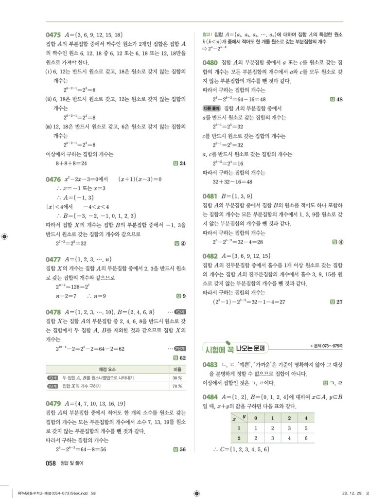 📂 RPM 공통수학2 답지 전체 모음 & 집합 개념 특강 (클릭)