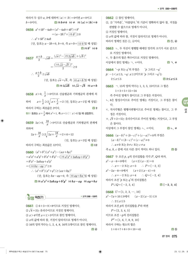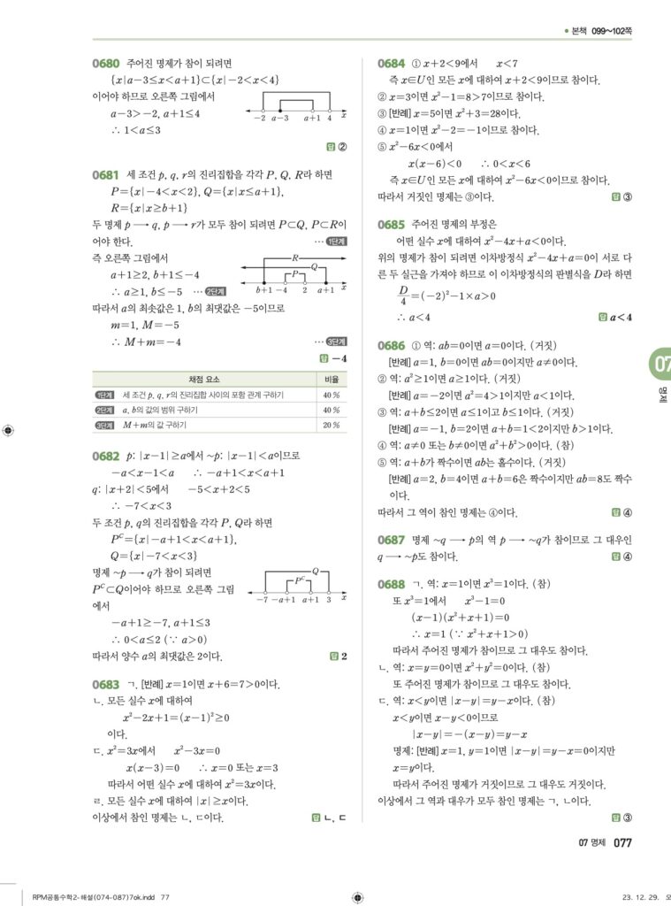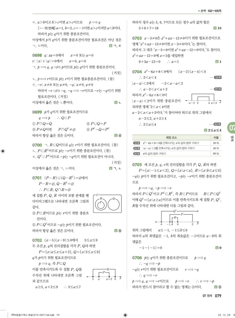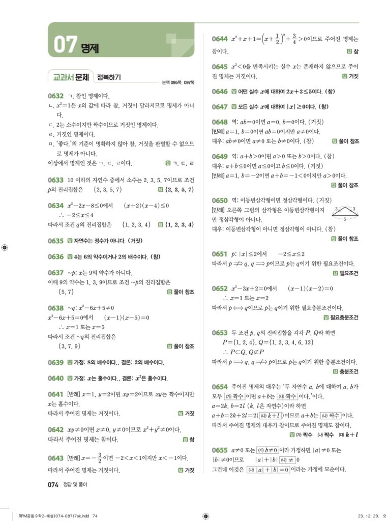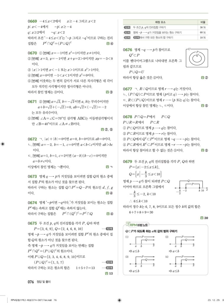 안녕하세요. **RPM 공통수학2** **07단원 명제** 정답 및 해설입니다.