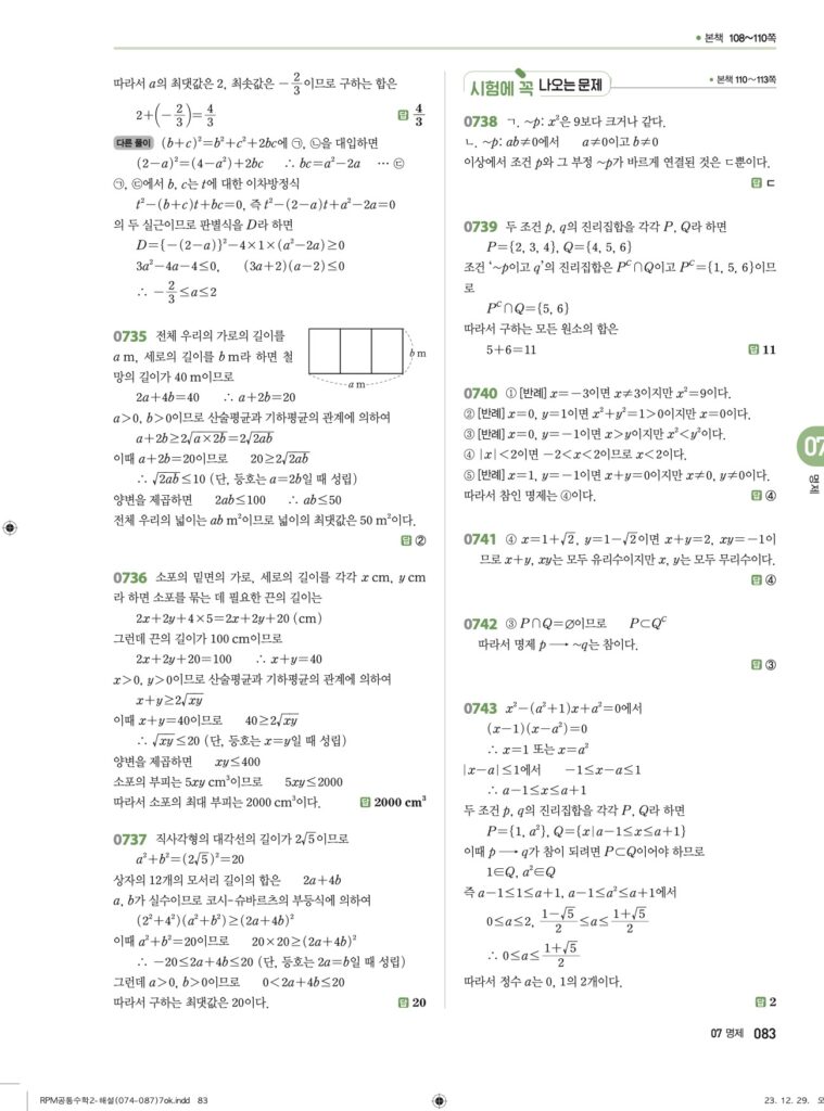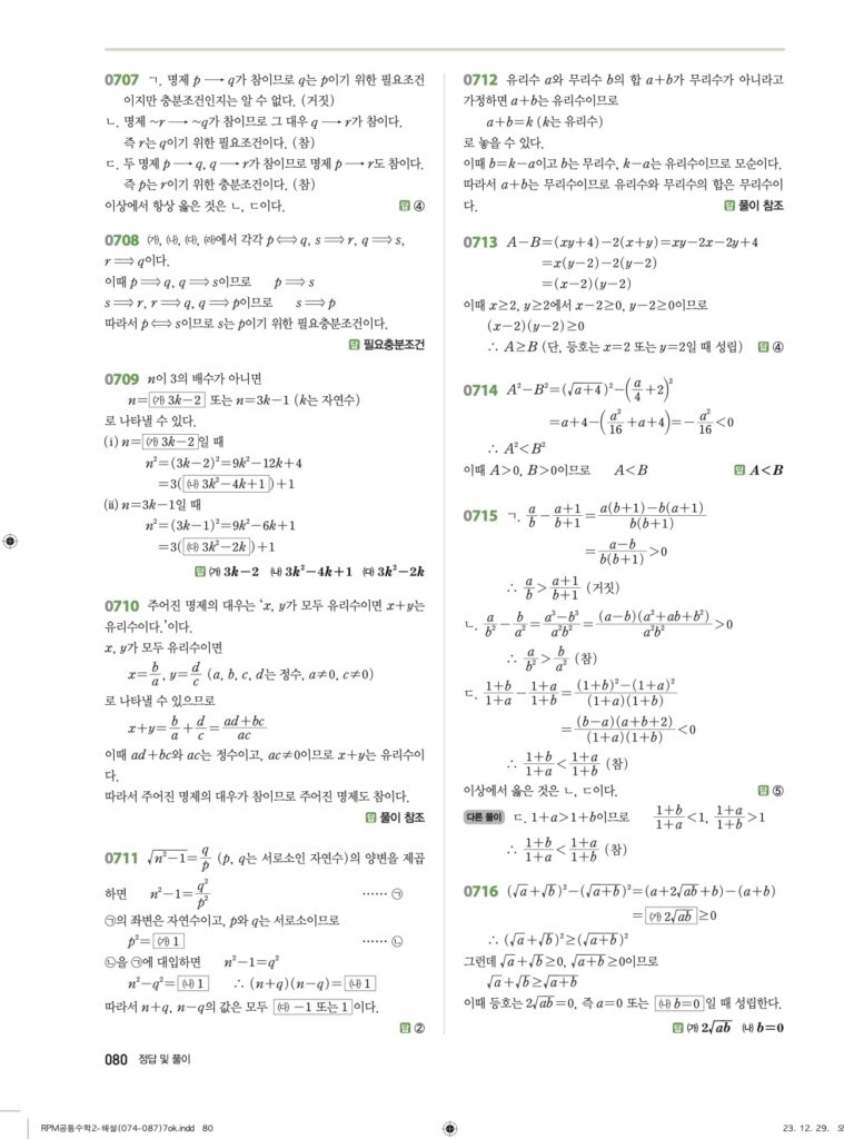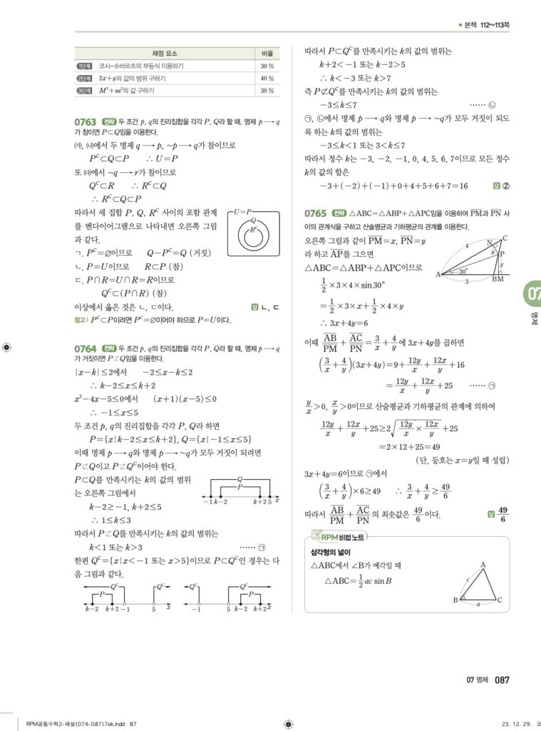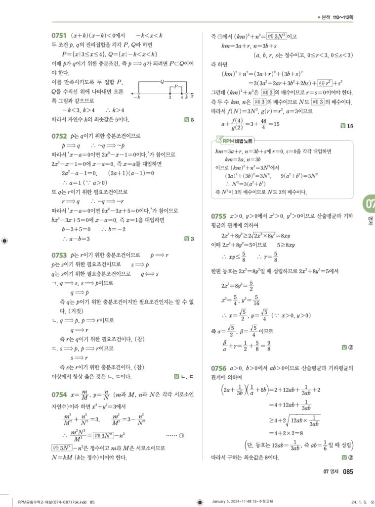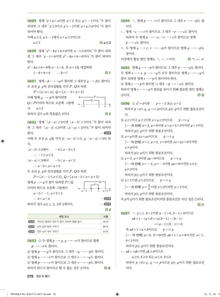 안녕하세요. **RPM 공통수학2** **07단원 명제** 정답 및 해설입니다.