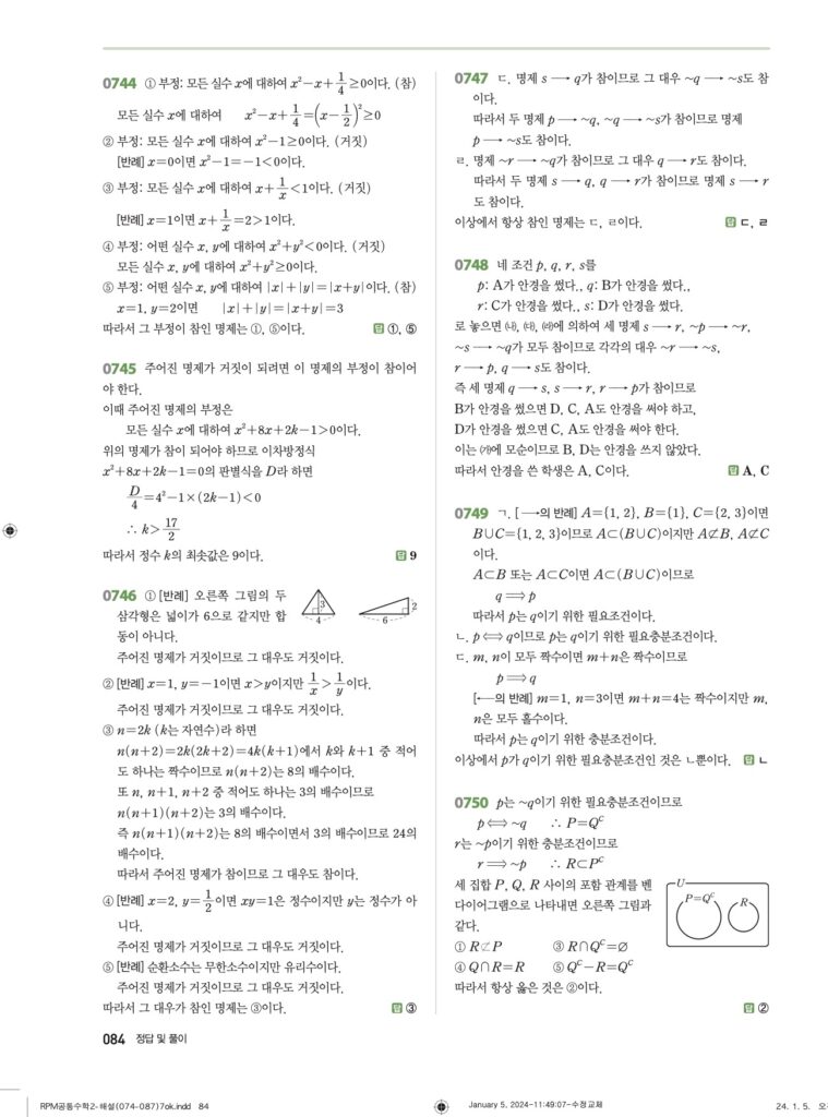 RPM 공통수학2 07. 명제 답지