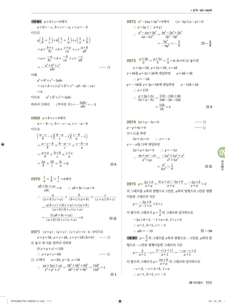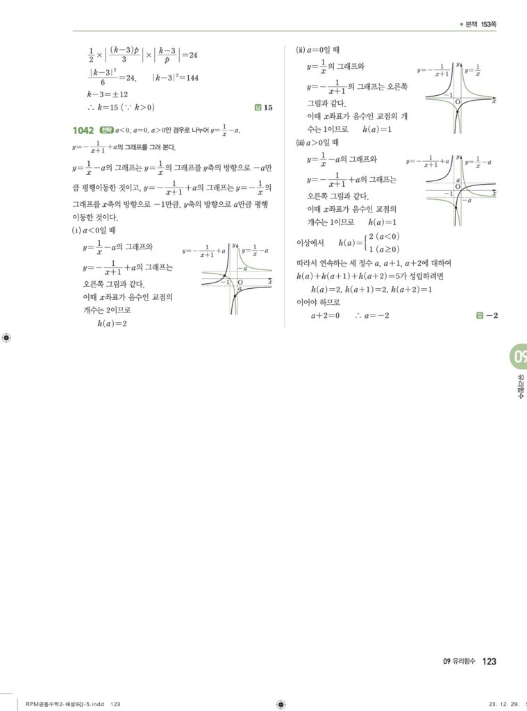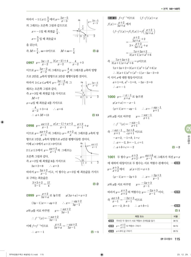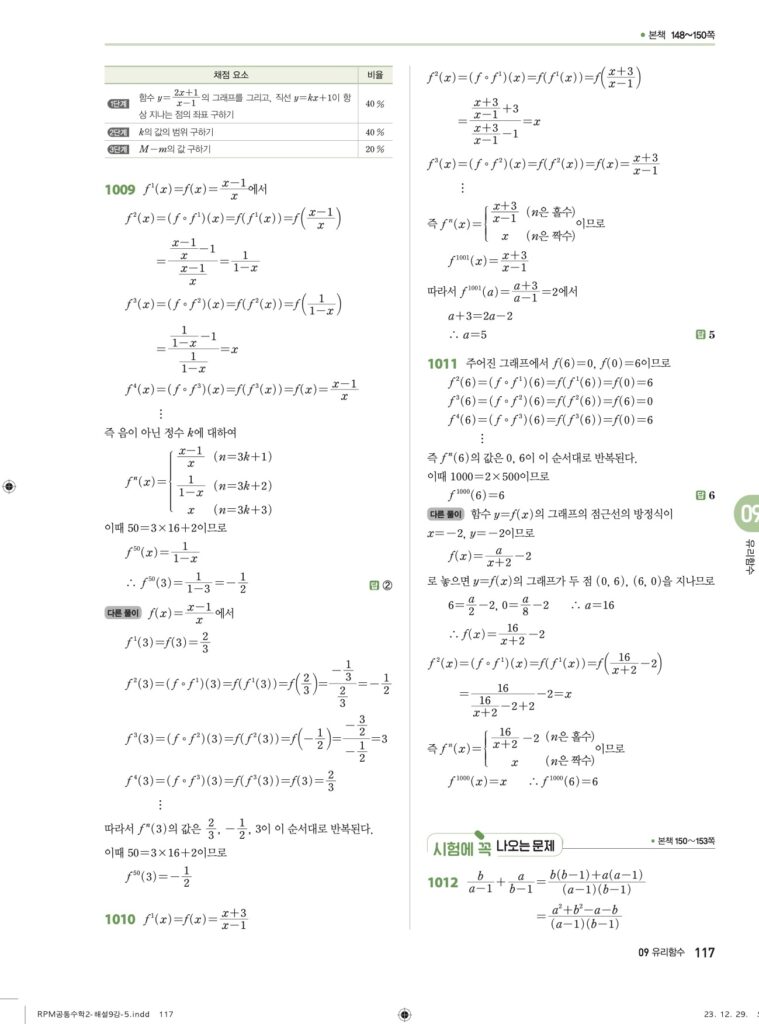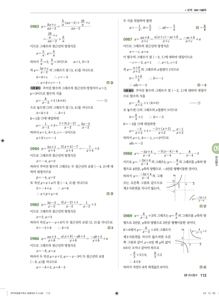 안녕하세요. **RPM 공통수학2** **09단원 유리함수** 정답 및 해설입니다.