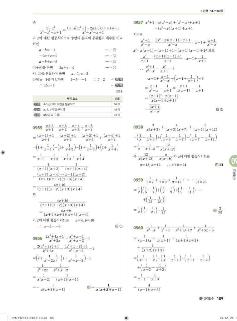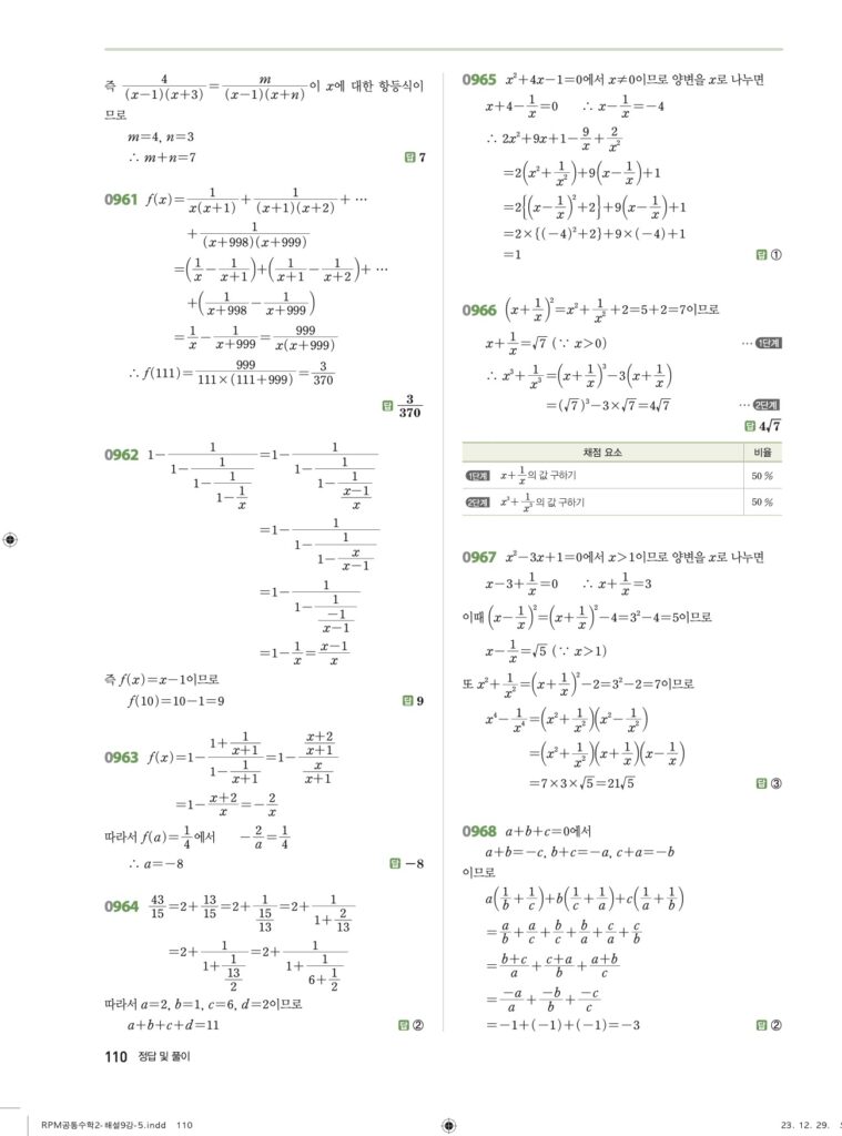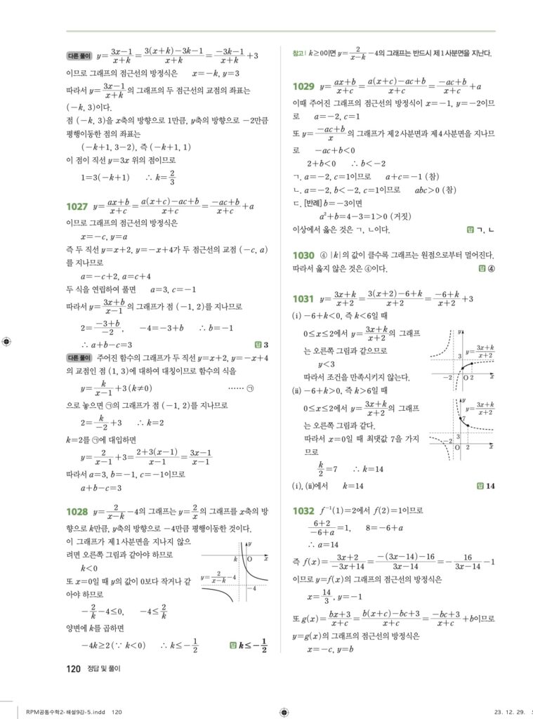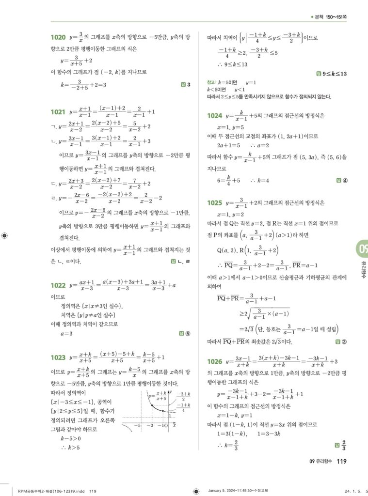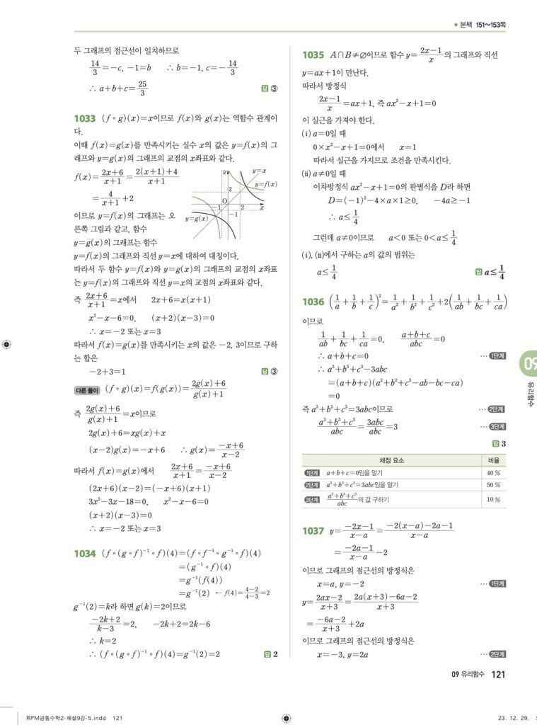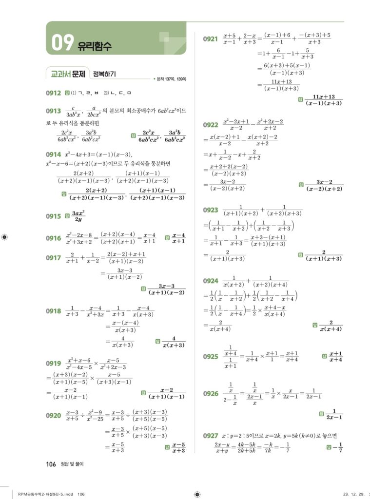 안녕하세요. **RPM 공통수학2** **09단원 유리함수** 정답 및 해설입니다.