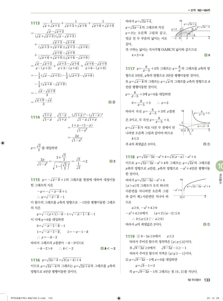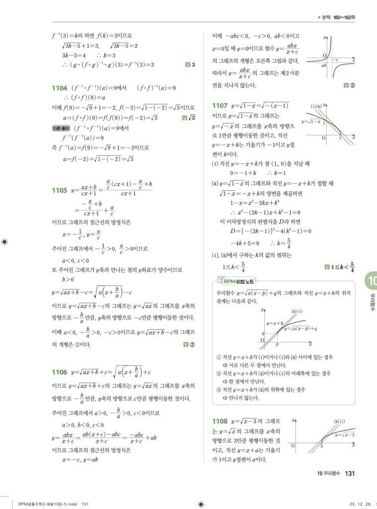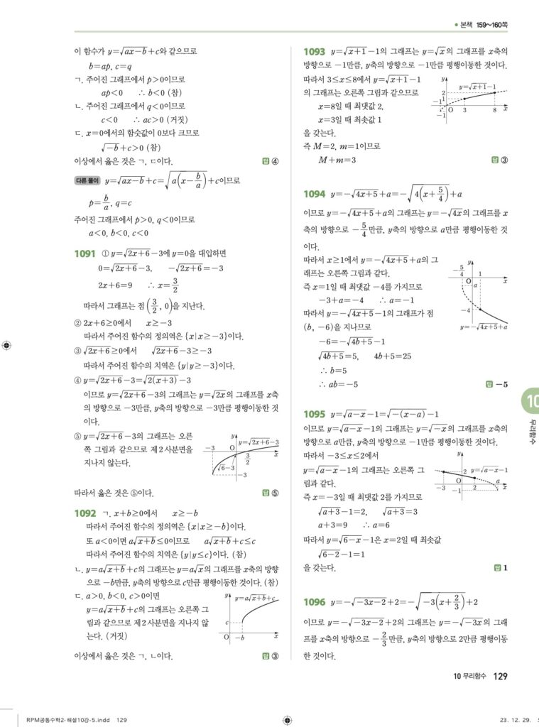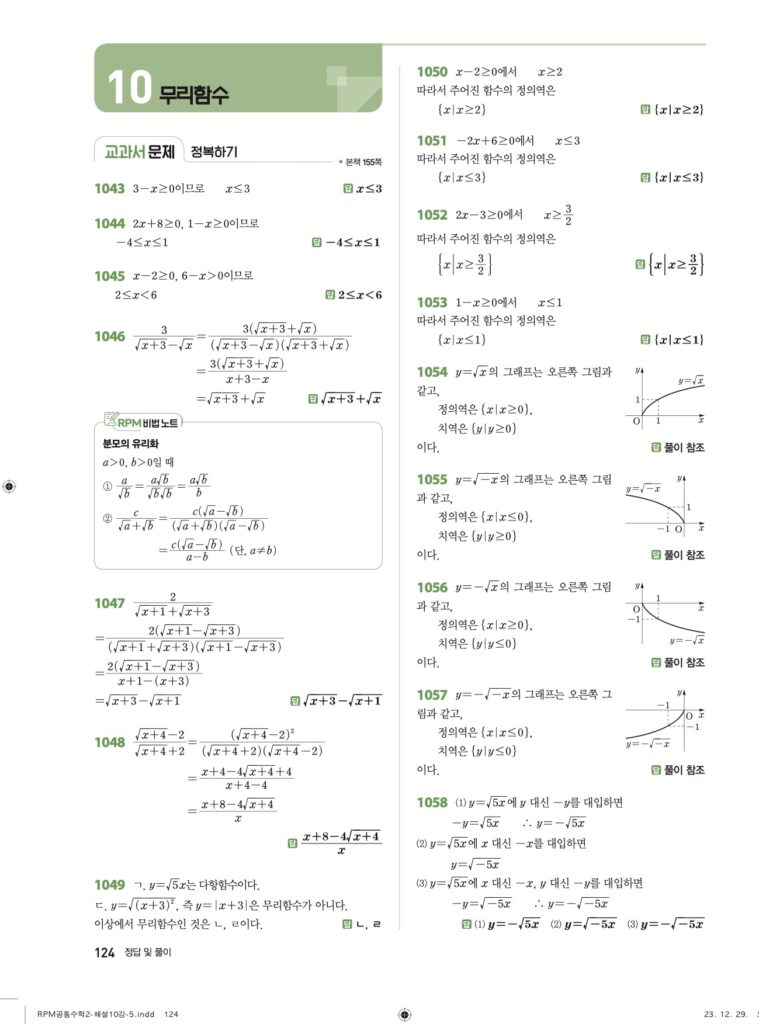 RPM 공통수학2 10. 무리함수 답지