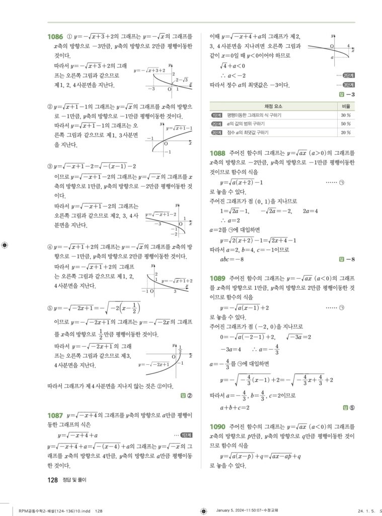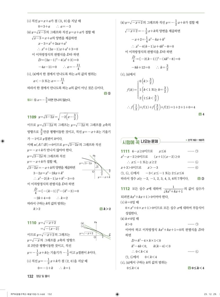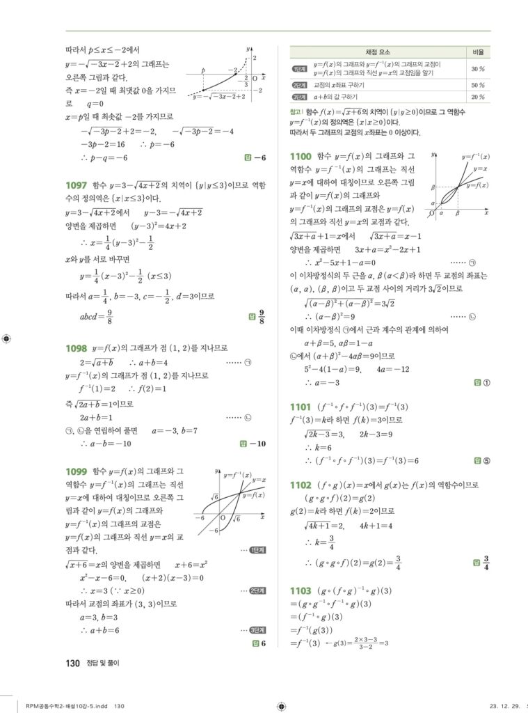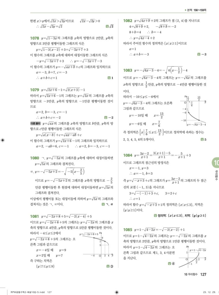 RPM 공통수학2 10. 무리함수 답지