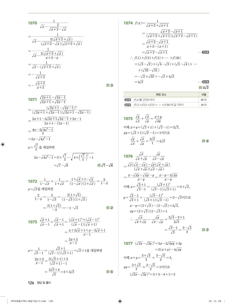 📂 RPM 공통수학2 답지 전체 모음 & 무리함수 심화 강의 (클릭)