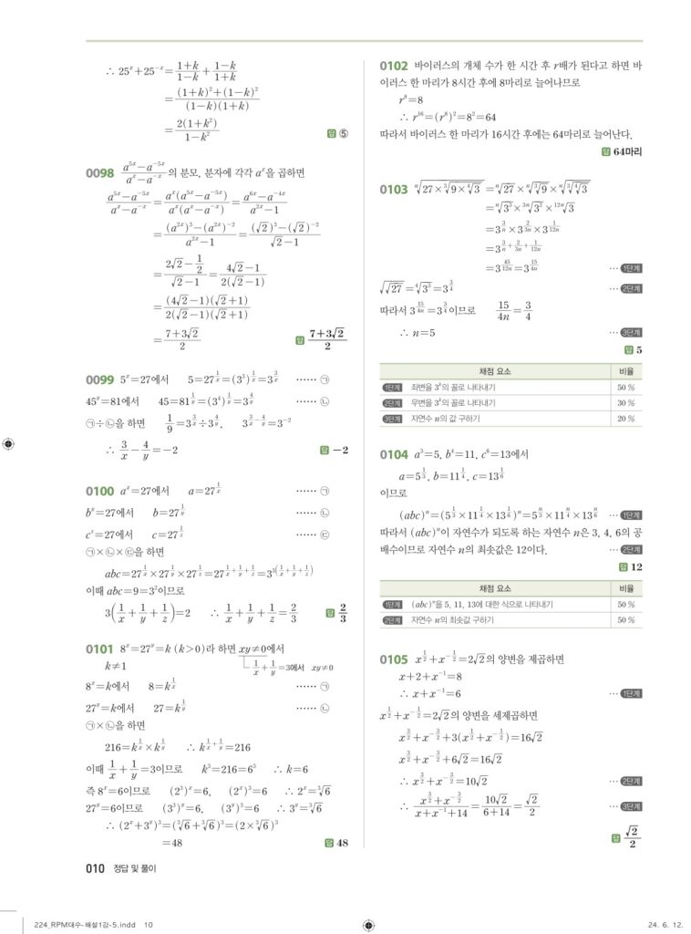 📂 RPM 대수 답지 전체 모음 & 지수 개념 강의 (클릭)