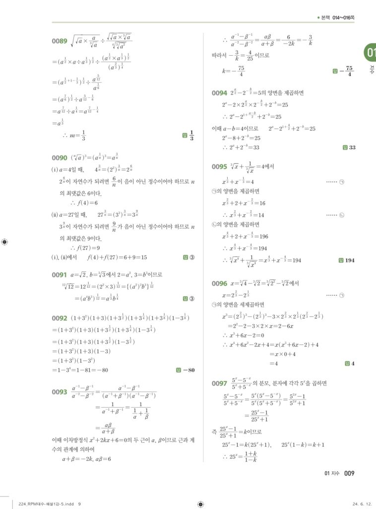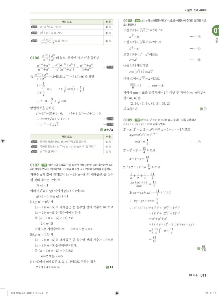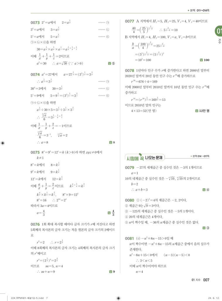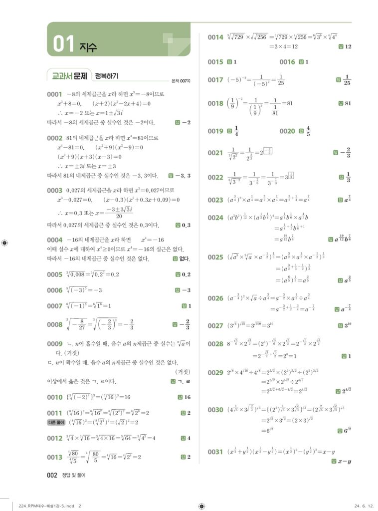 안녕하세요. **RPM 대수** **01단원 지수** 정답 및 해설입니다.