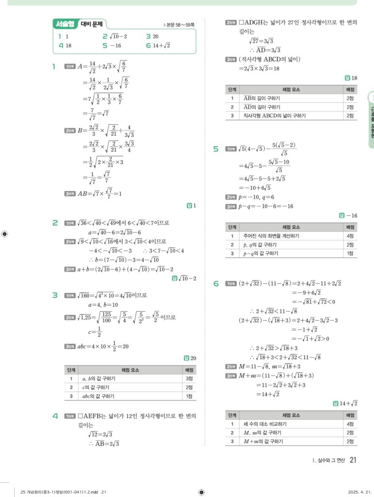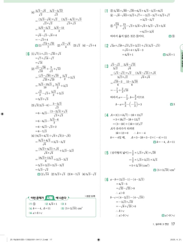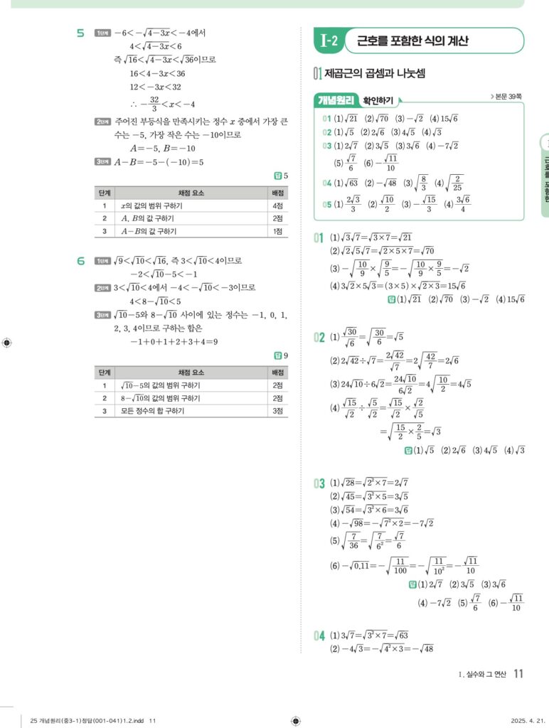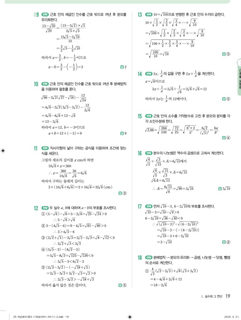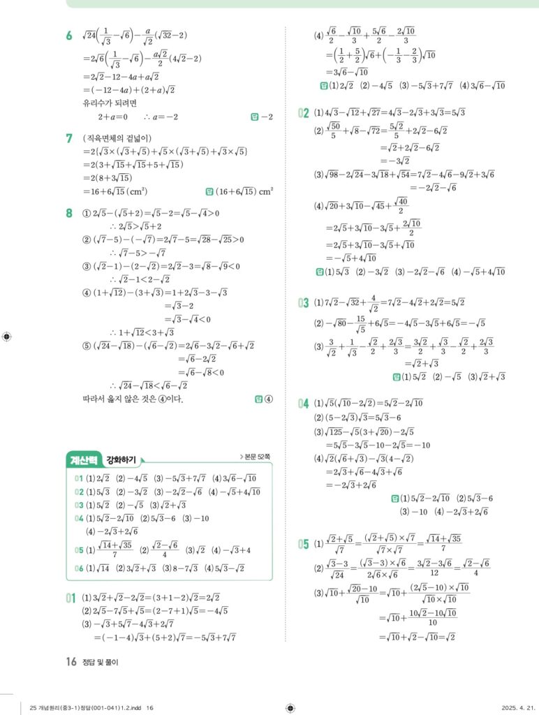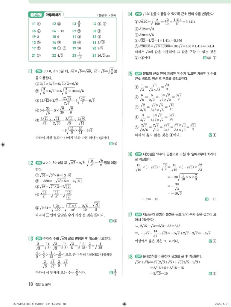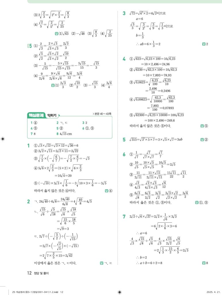 📖 근호를 포함한 식의 계산 정답 및 해설