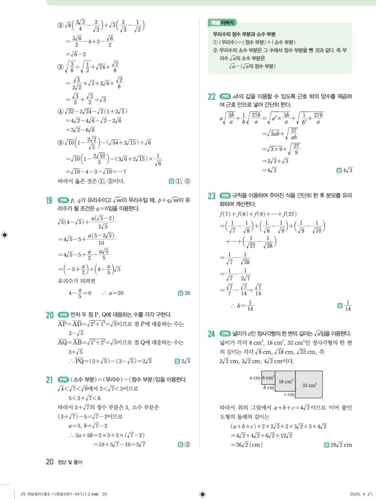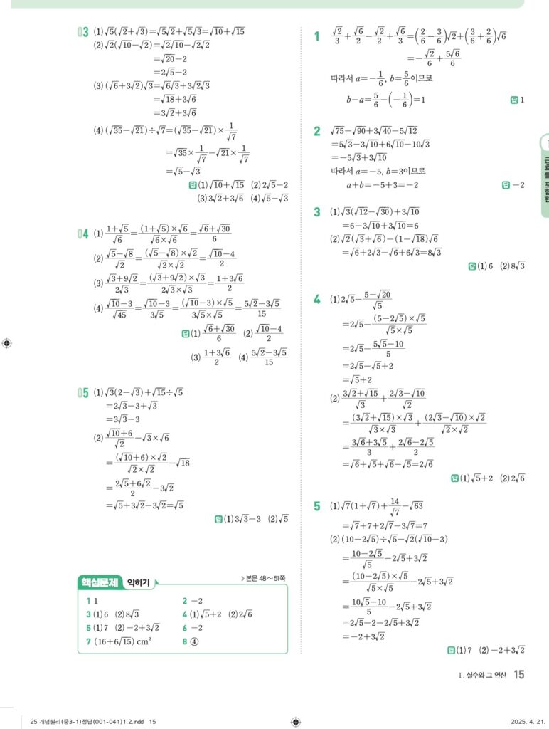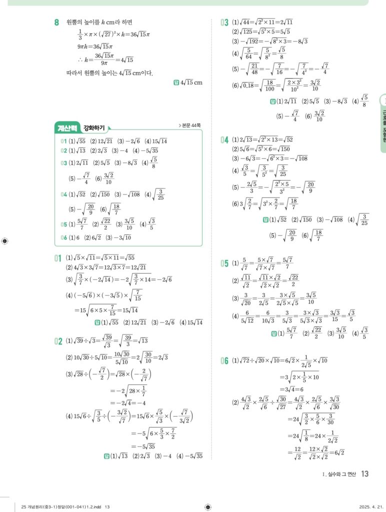 개념원리 중3-1 02. 근호를 포함한 식의 계산 답지