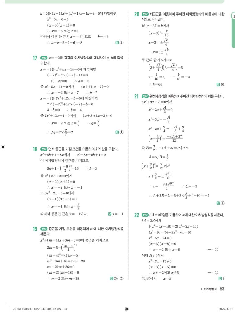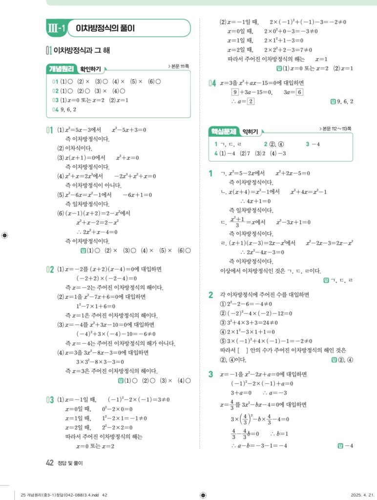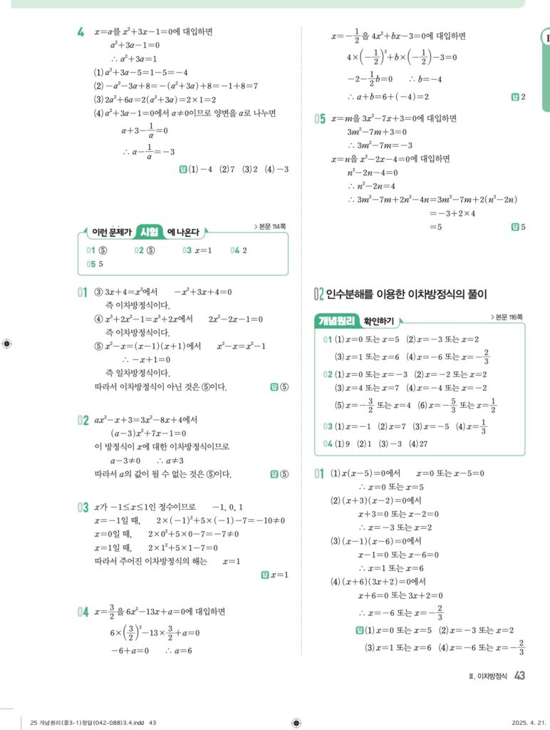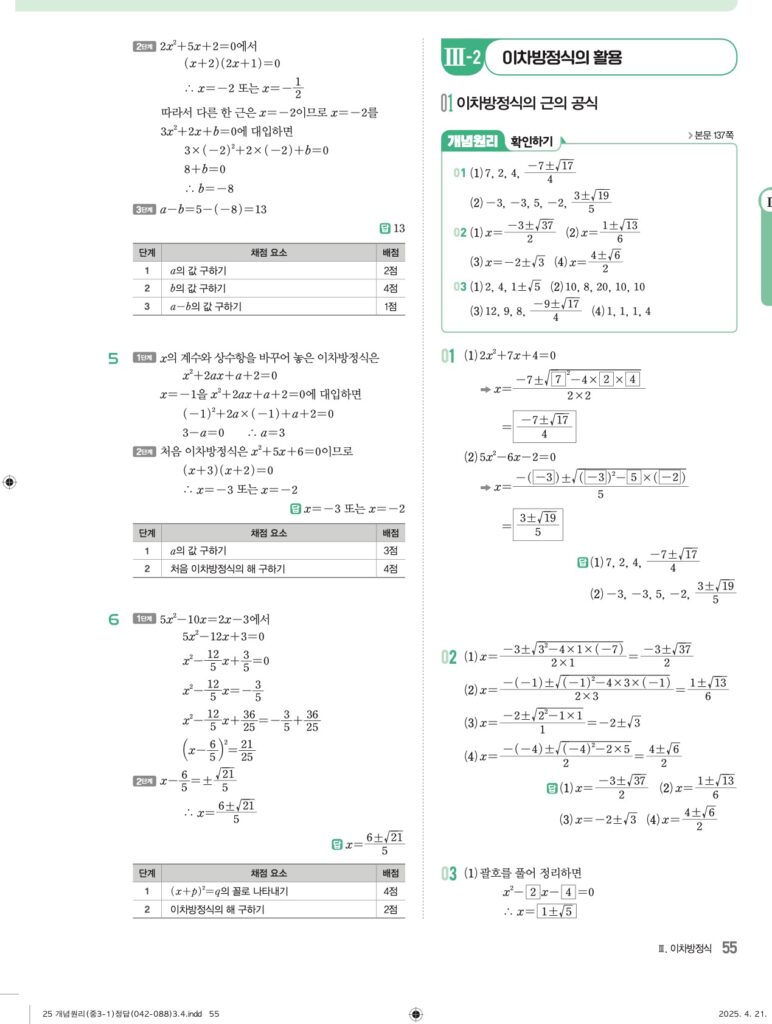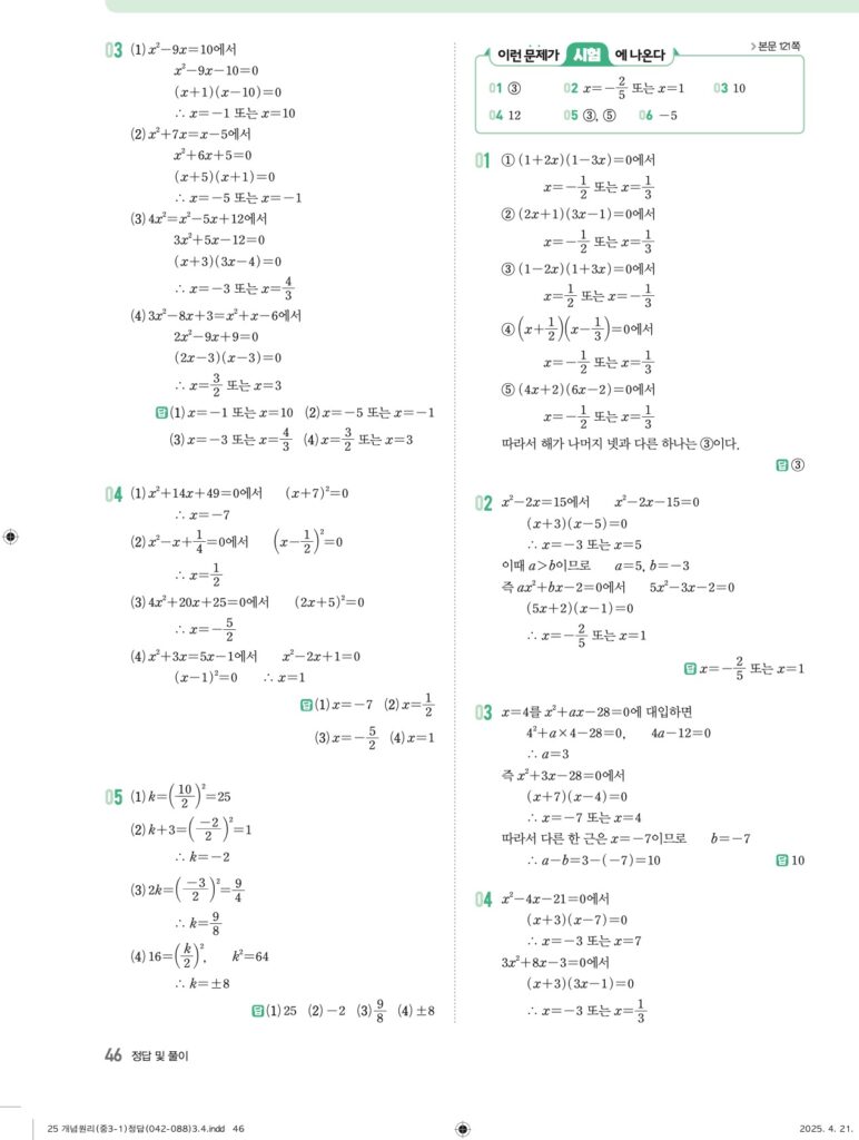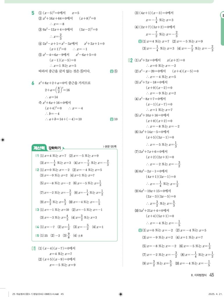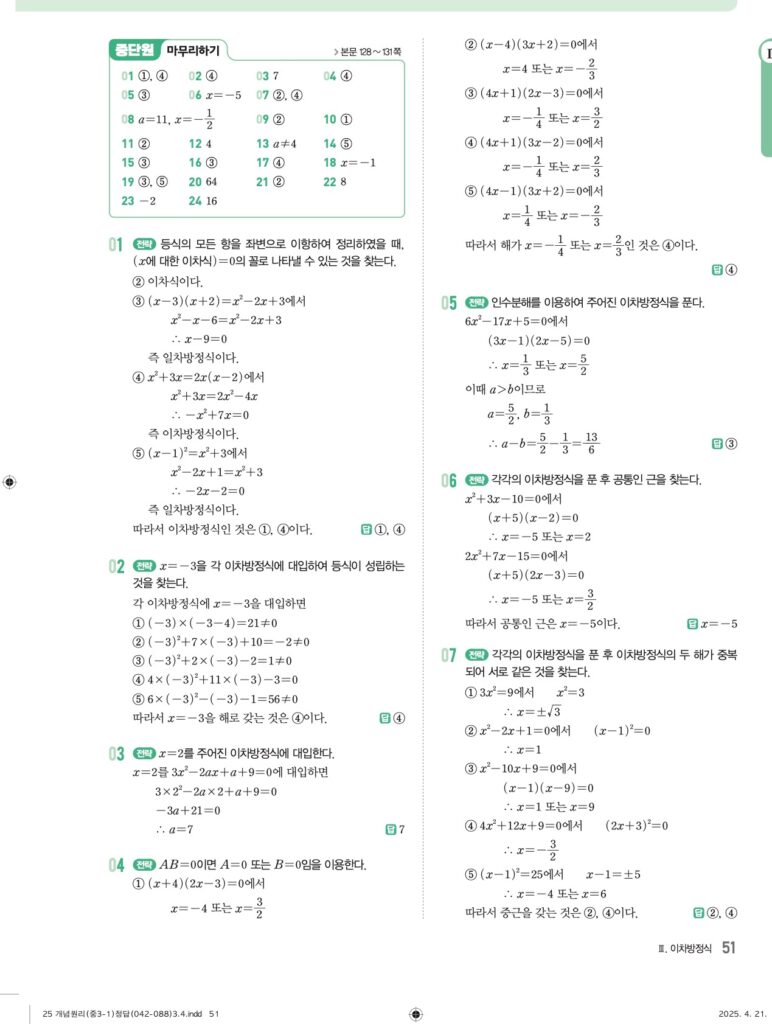 개념원리 중3-1 05. 이차방정식의 풀이 답지
