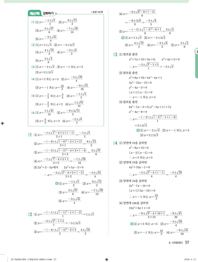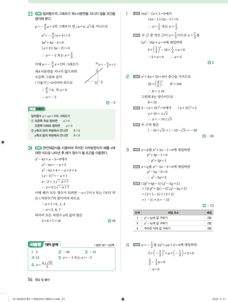 📂 개념원리 중3-1 답지 전체 모음 & 근의 공식 특강 (클릭)