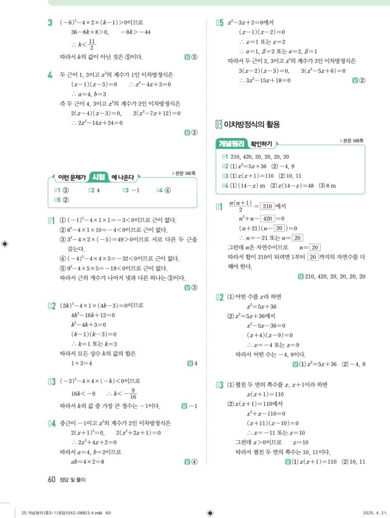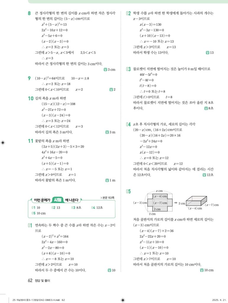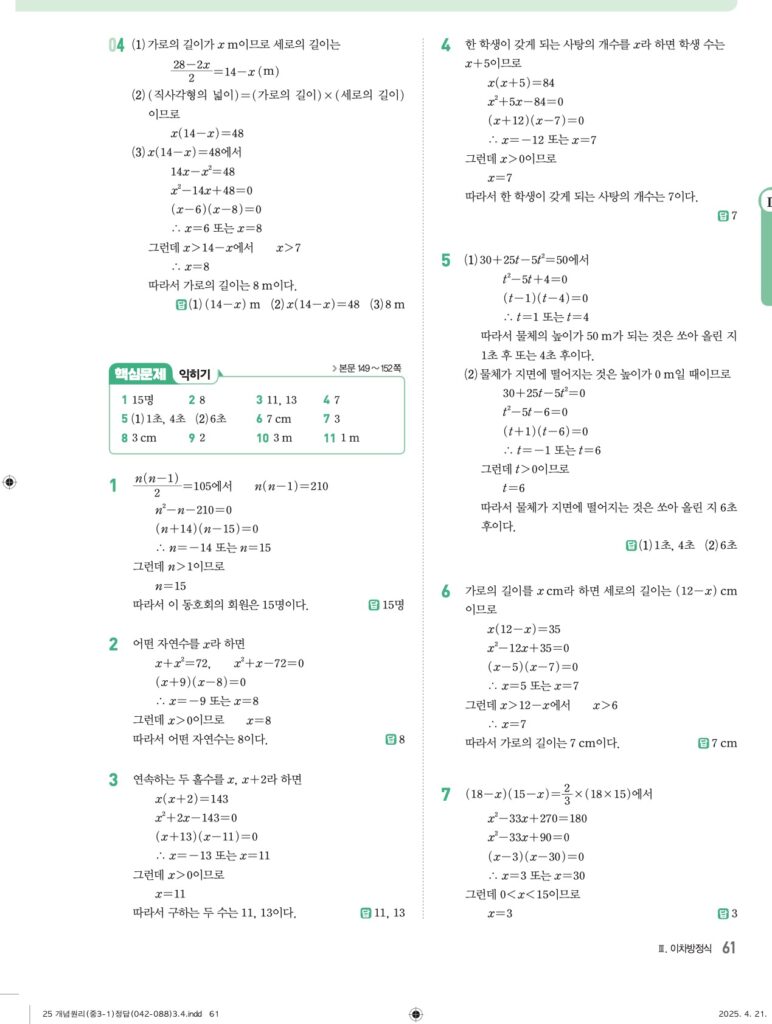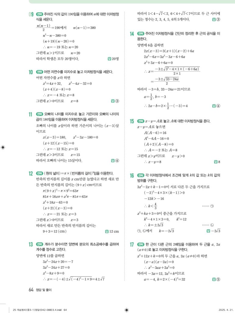 개념원리 중3-1 06. 이차방정식의 활용 답지