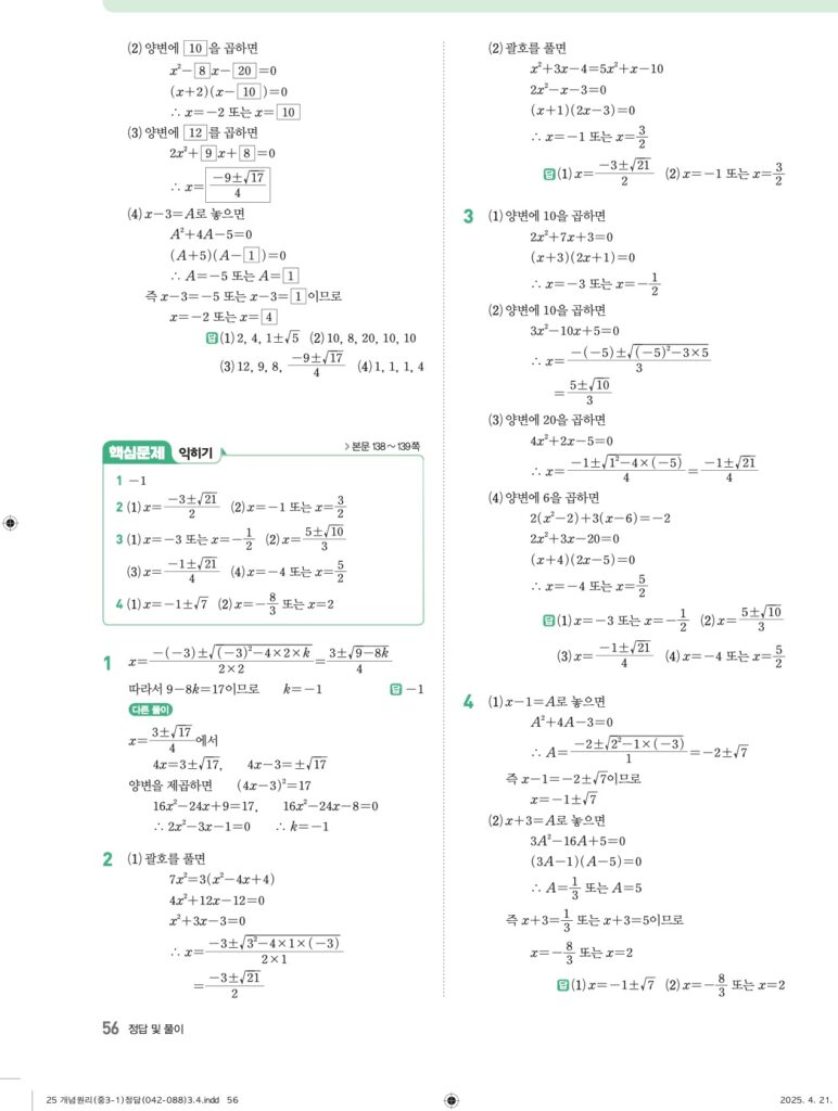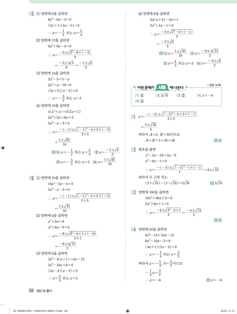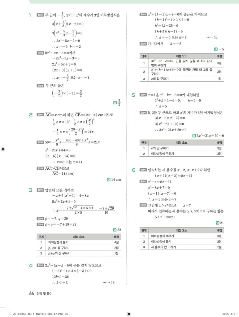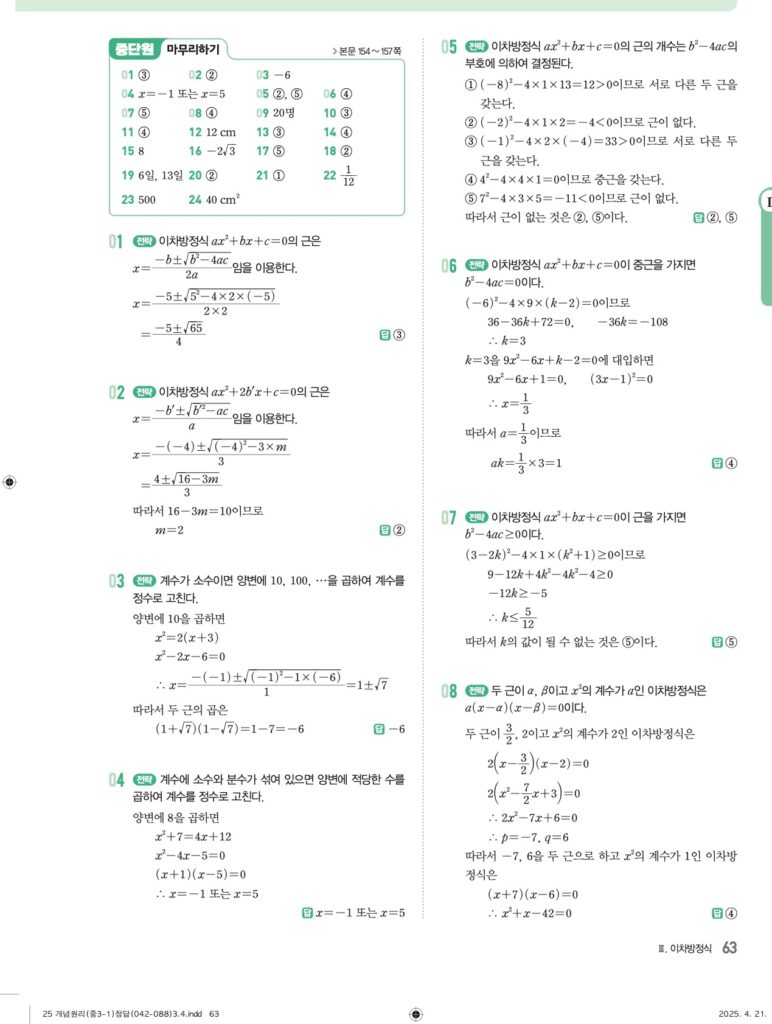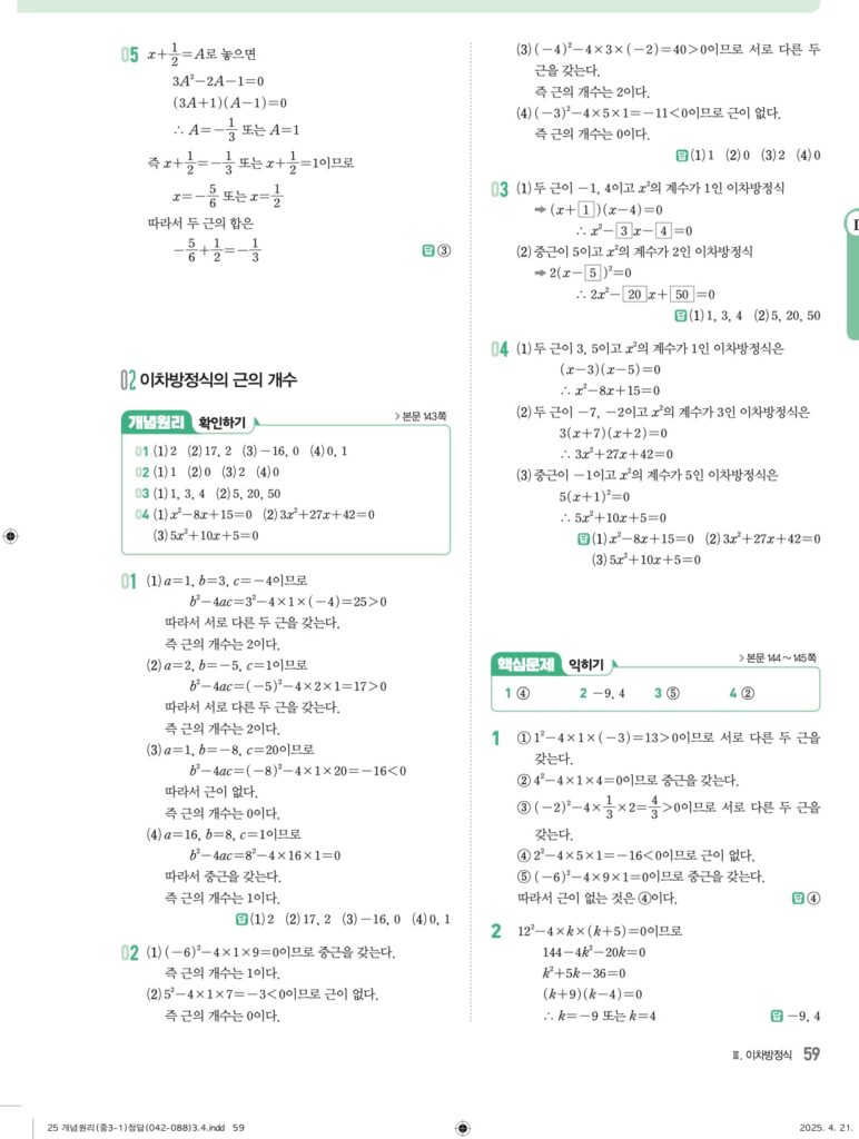 개념원리 중3-1 06. 이차방정식의 활용 답지