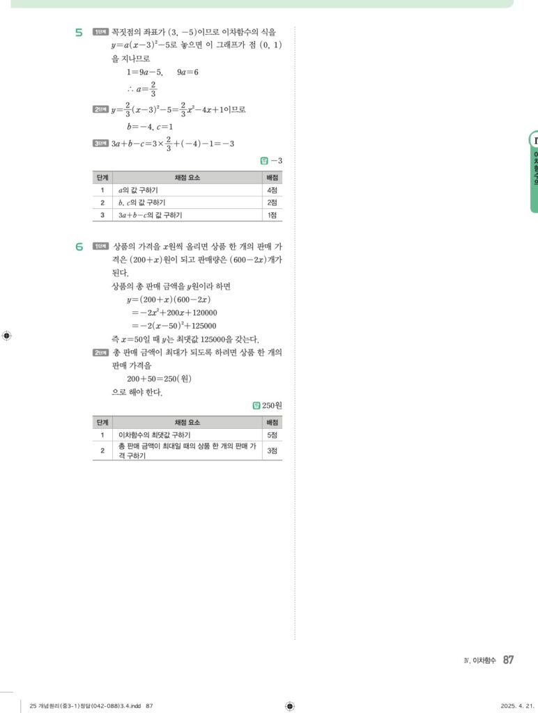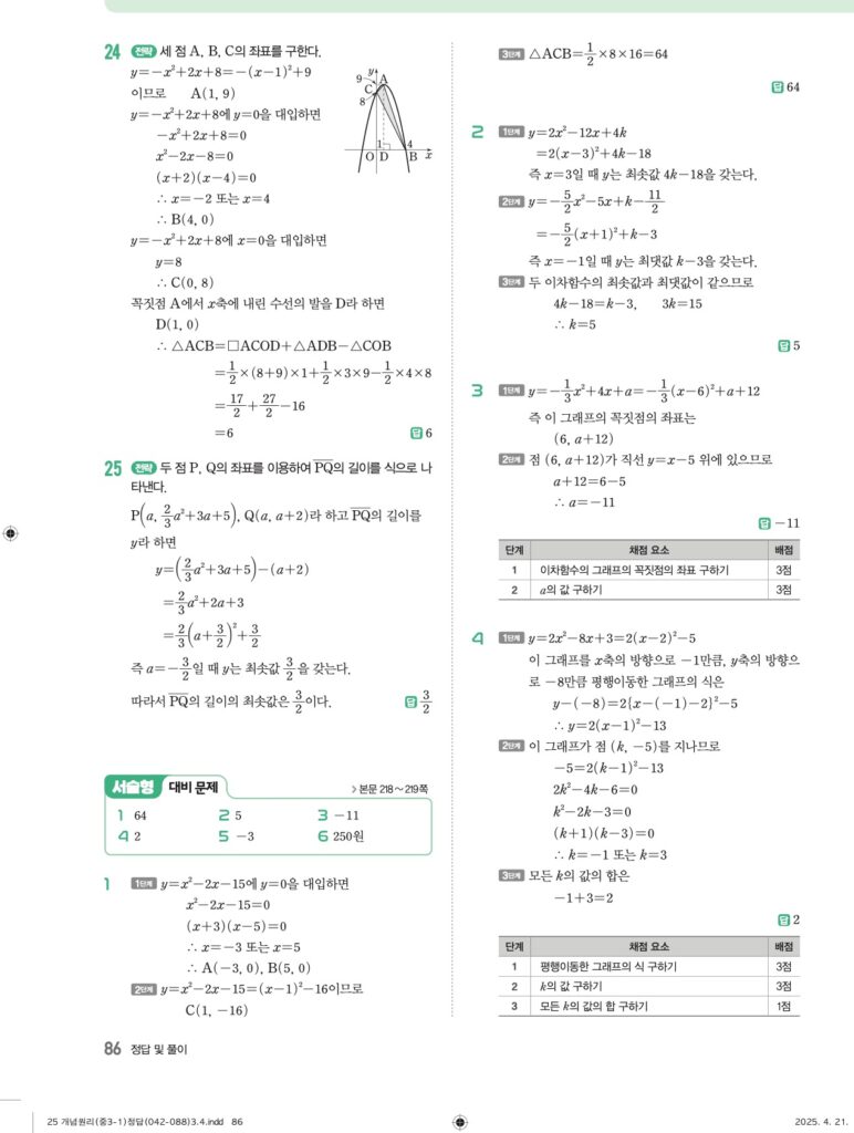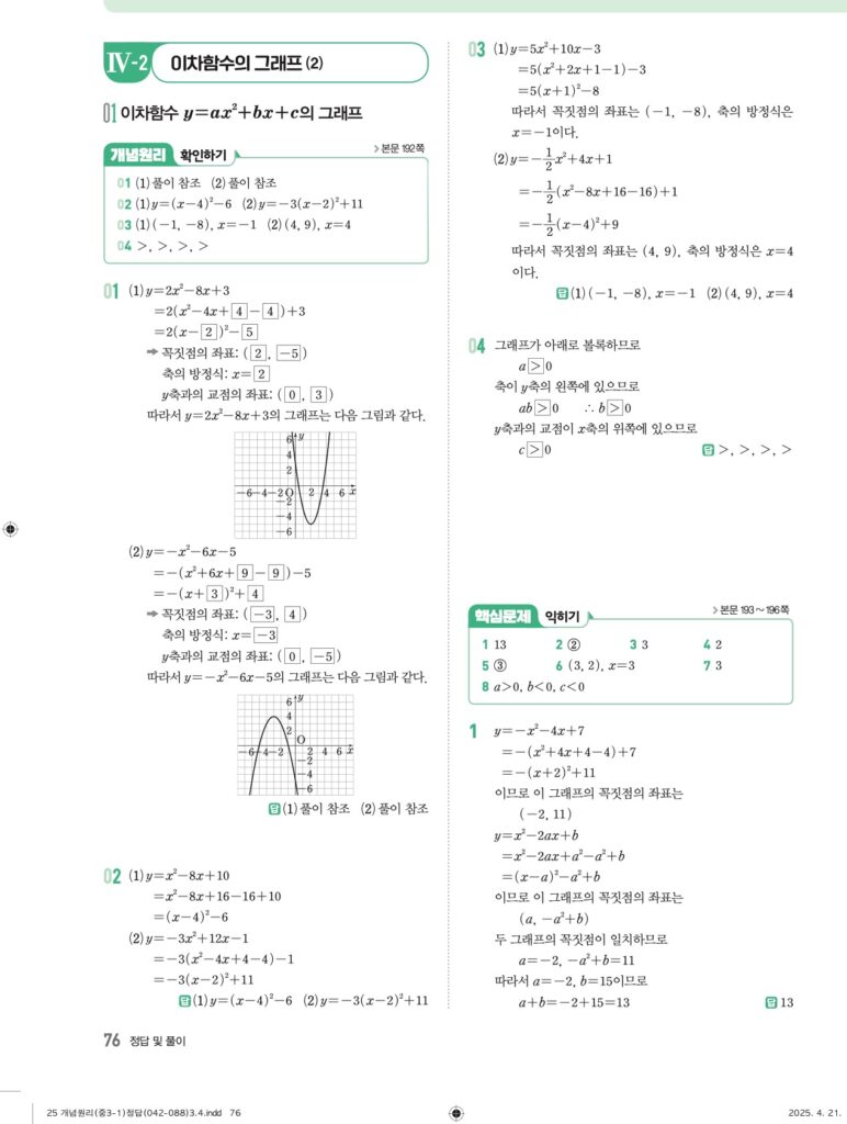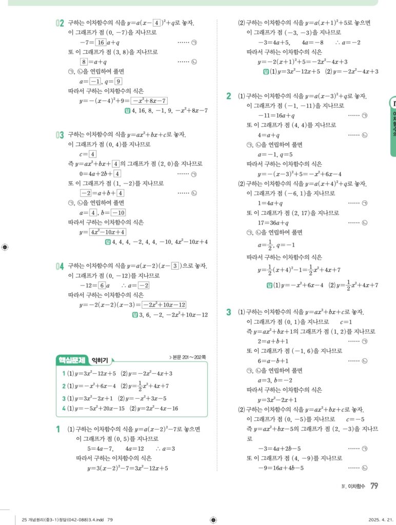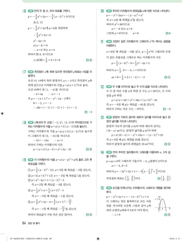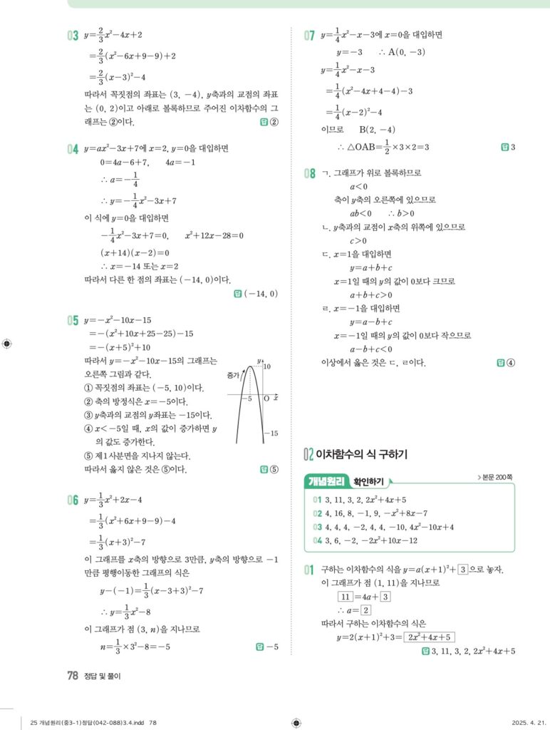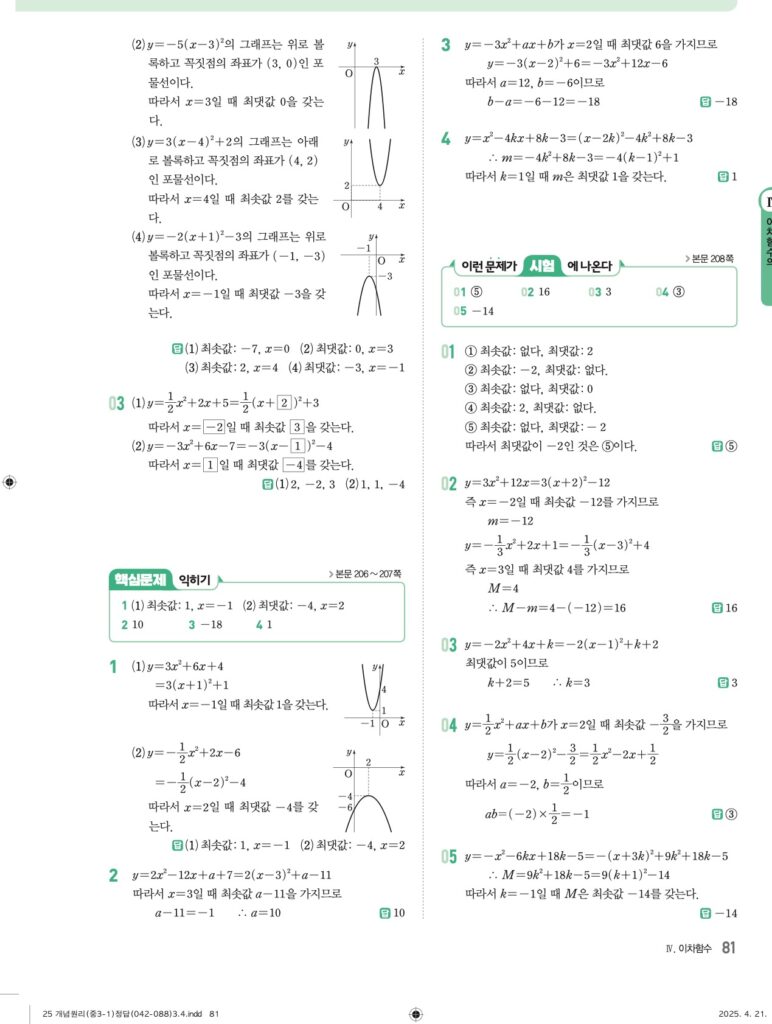 개념원리 중3-1 08. 이차함수의 그래프 (2) 답지