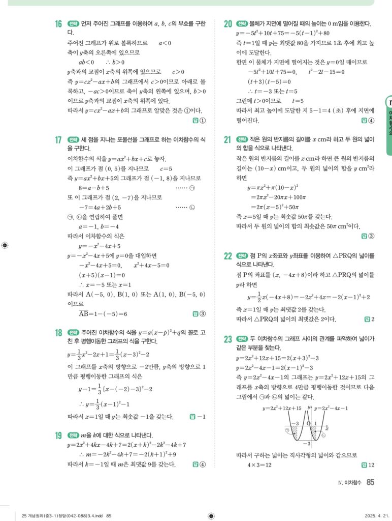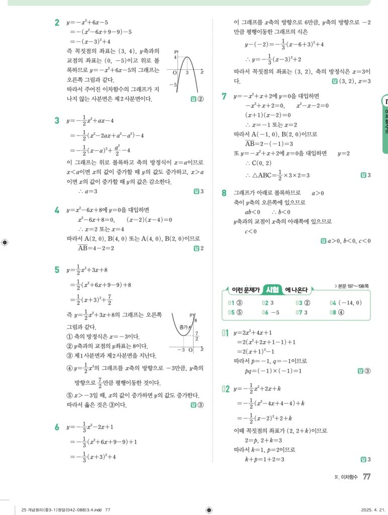 📖 이차함수의 그래프 (2) 정답 및 해설