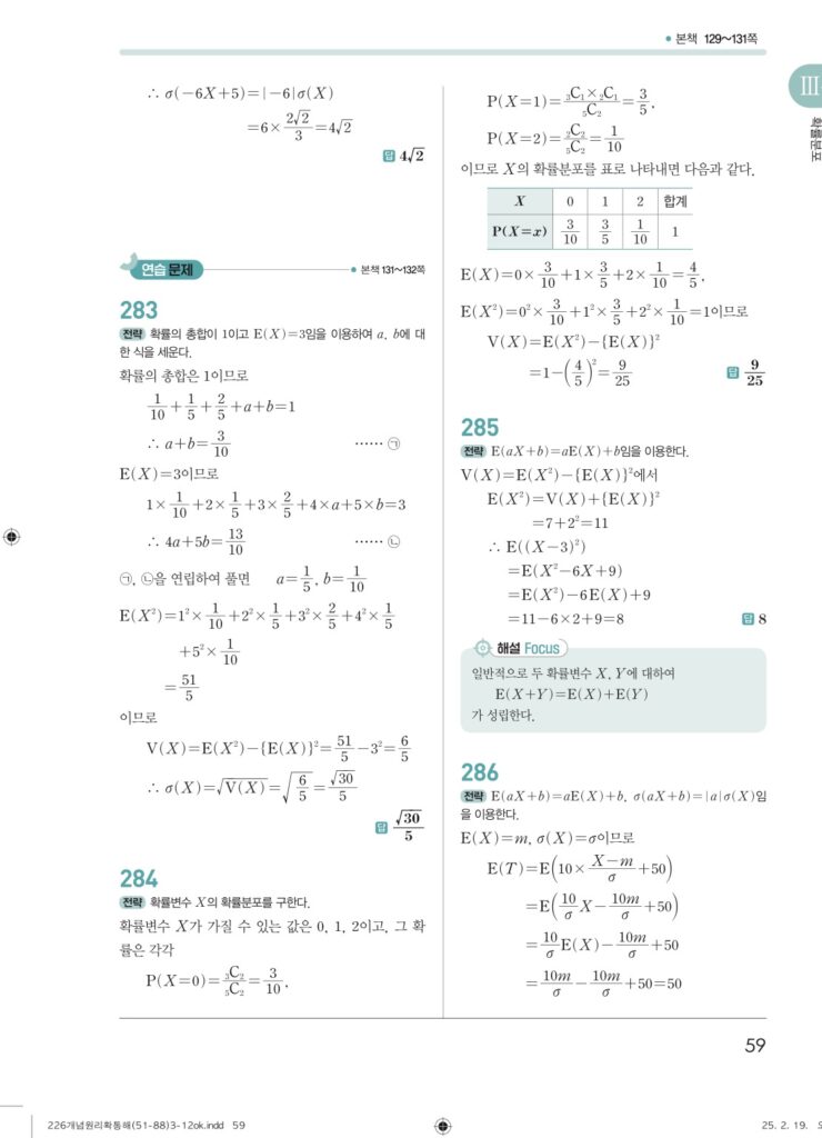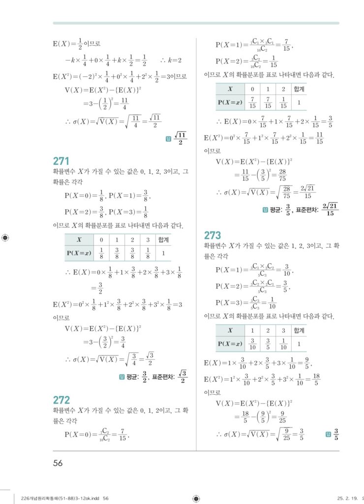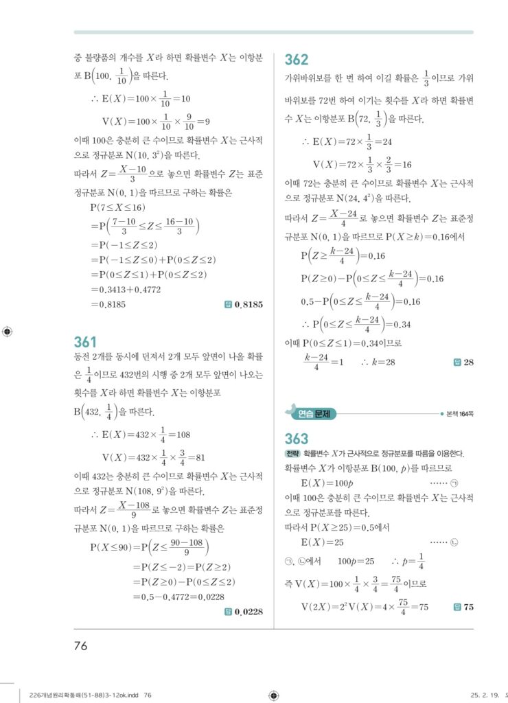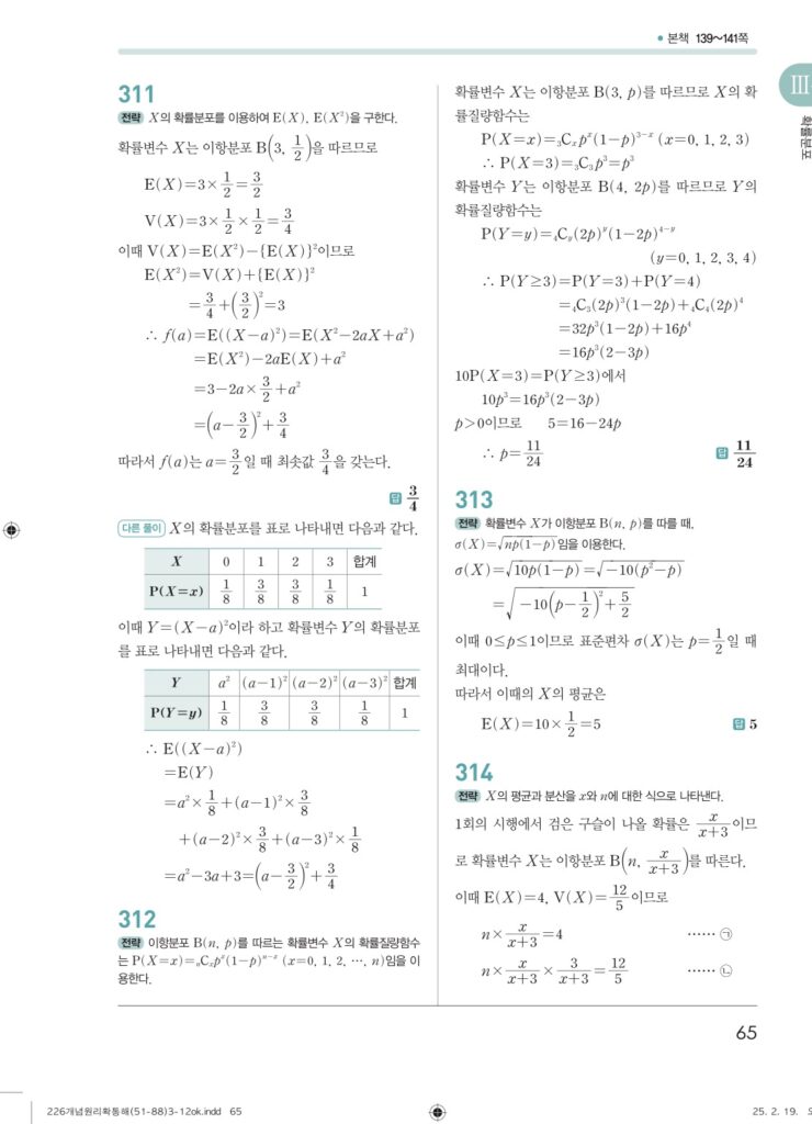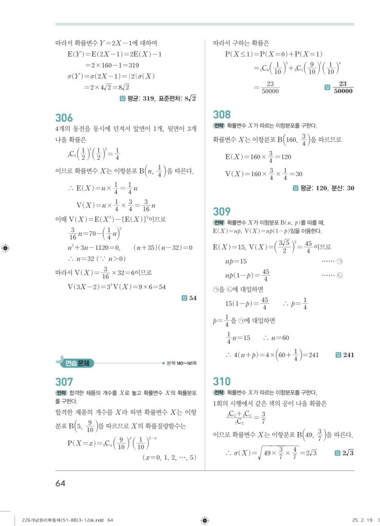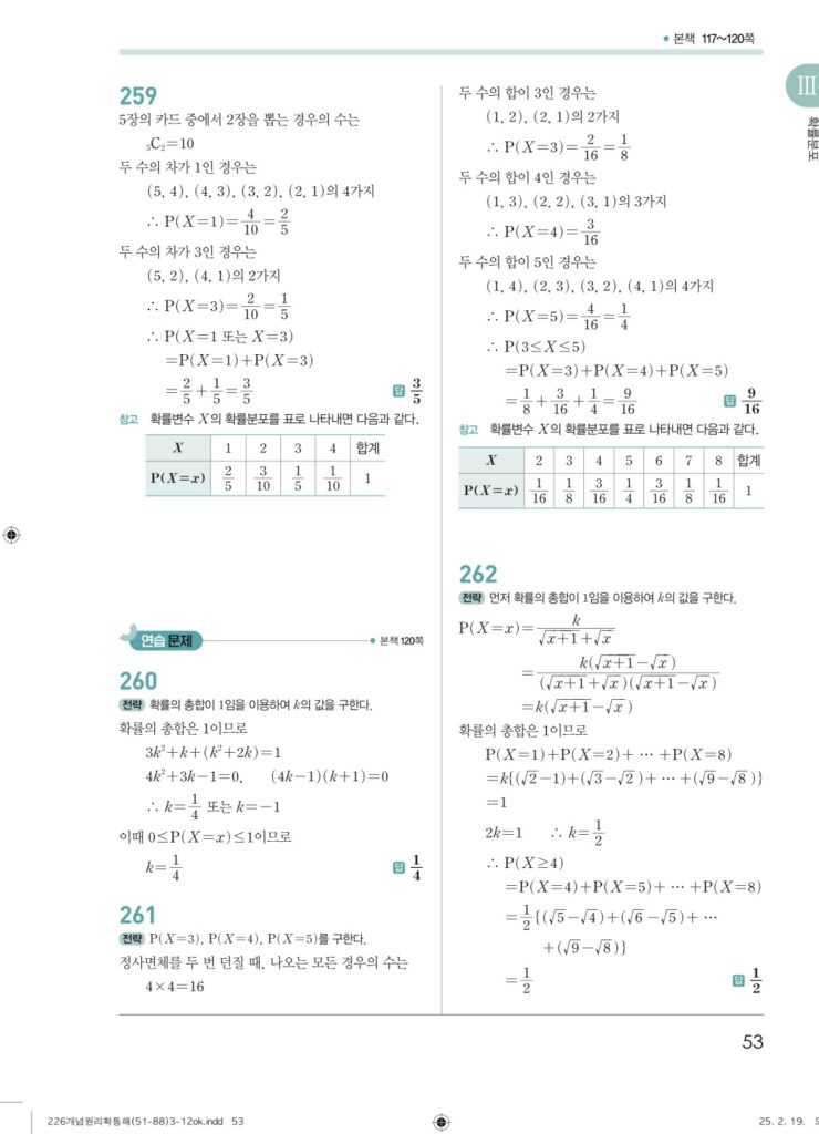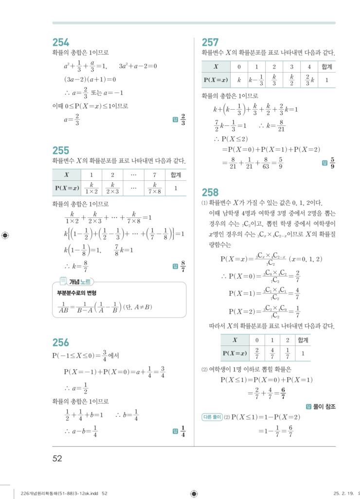 안녕하세요. **개념원리 확률과 통계** **05단원 확률변수와 확률분포** 정답 및 해설입니다.