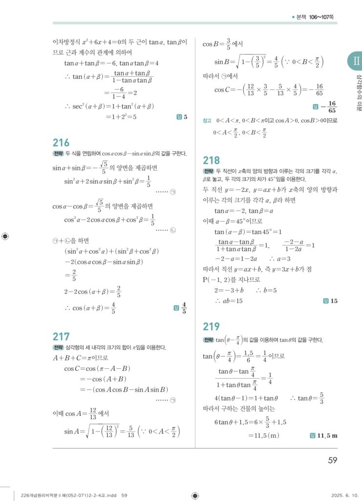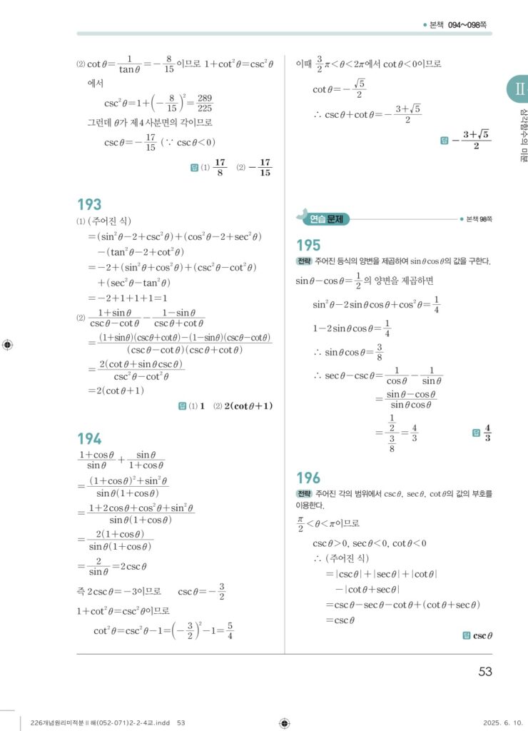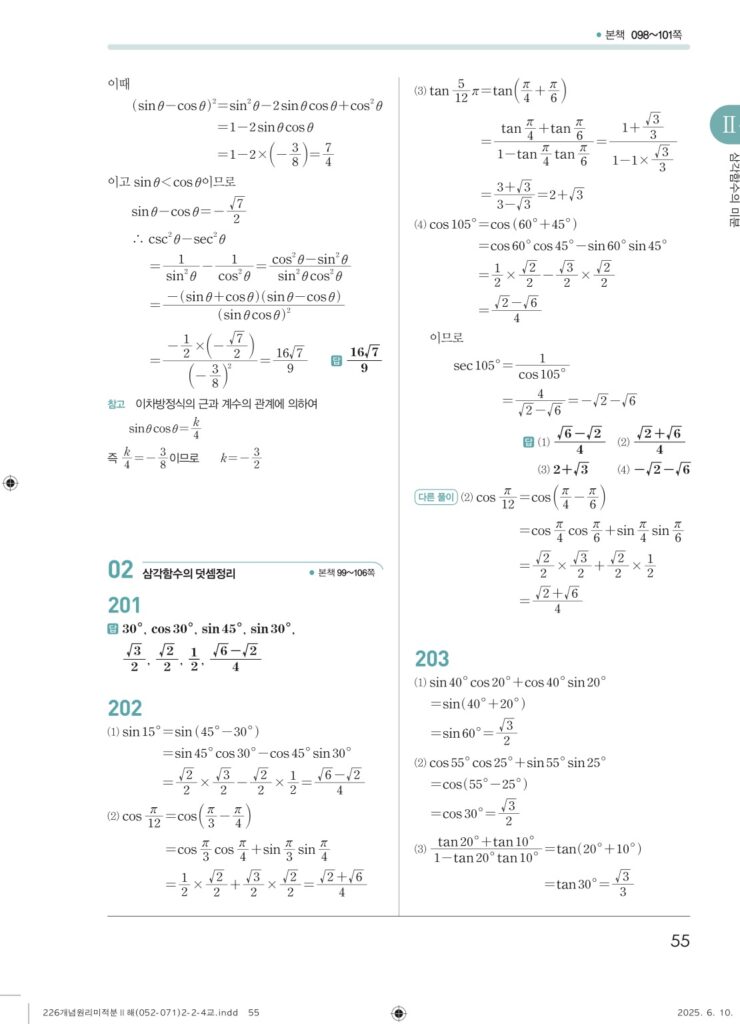 📂 개념원리 미적분2 답지 전체 모음 & 덧셈정리 특강 (클릭)