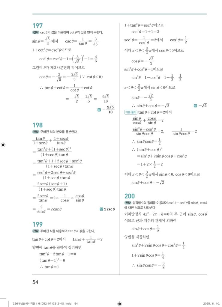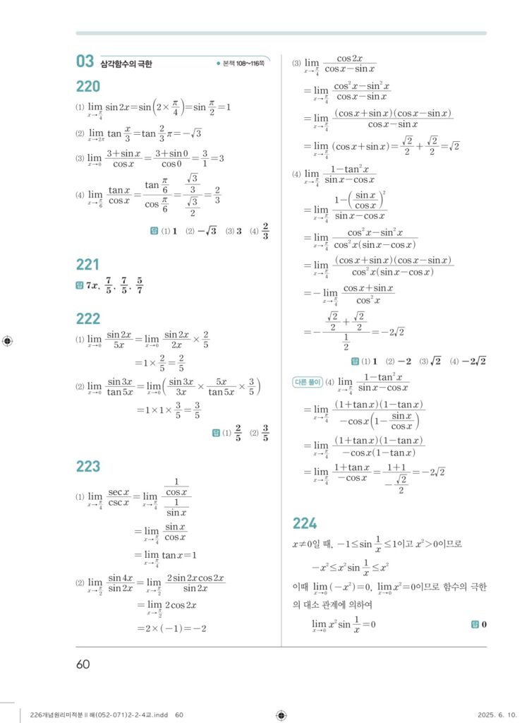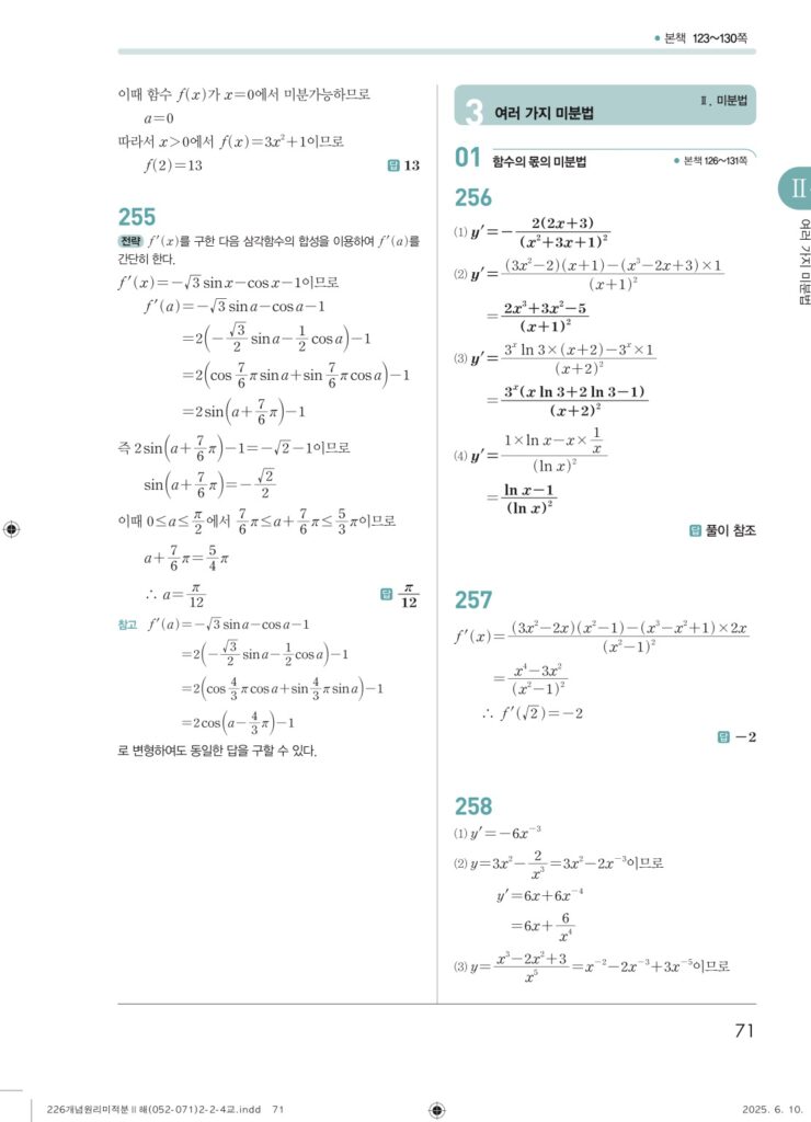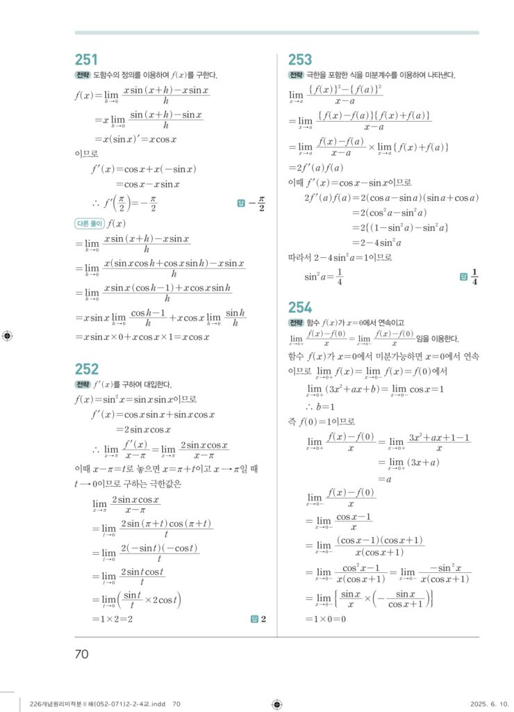개념원리 미적분2 04. 삼각함수의 미분 답지